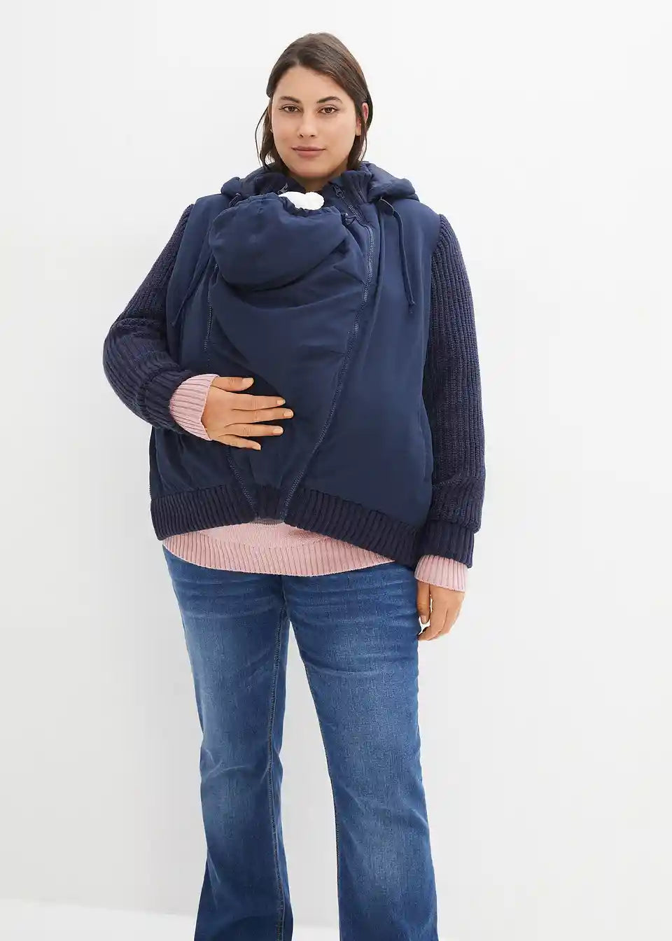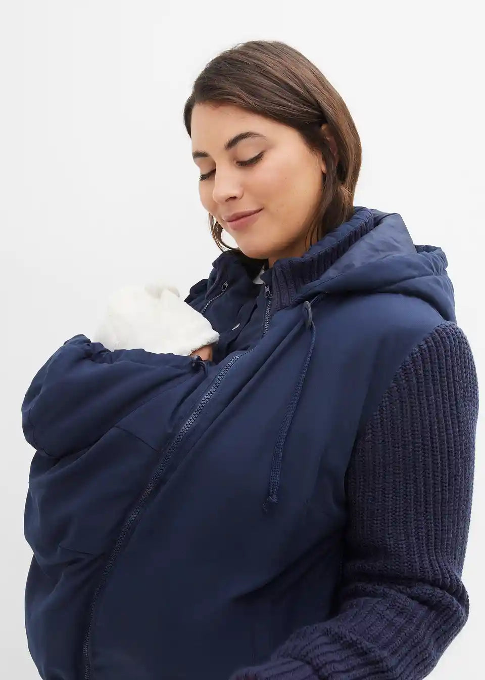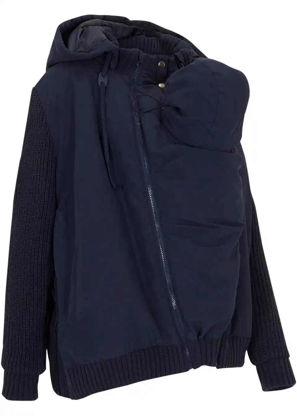 Umstands- und Tragejacke mit Strickärmeln und Kapuze