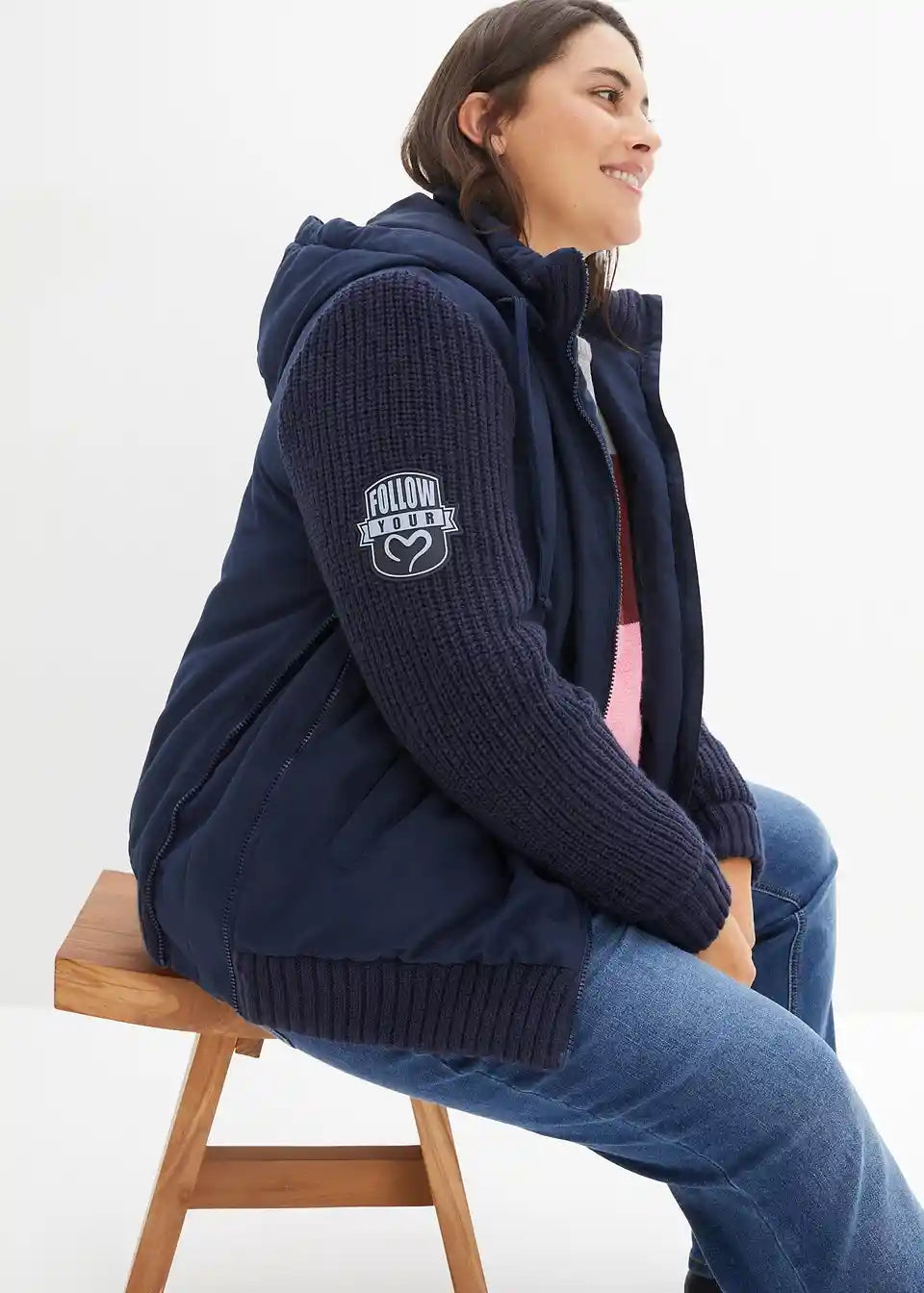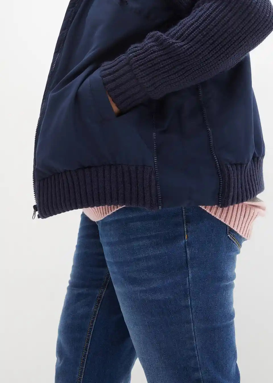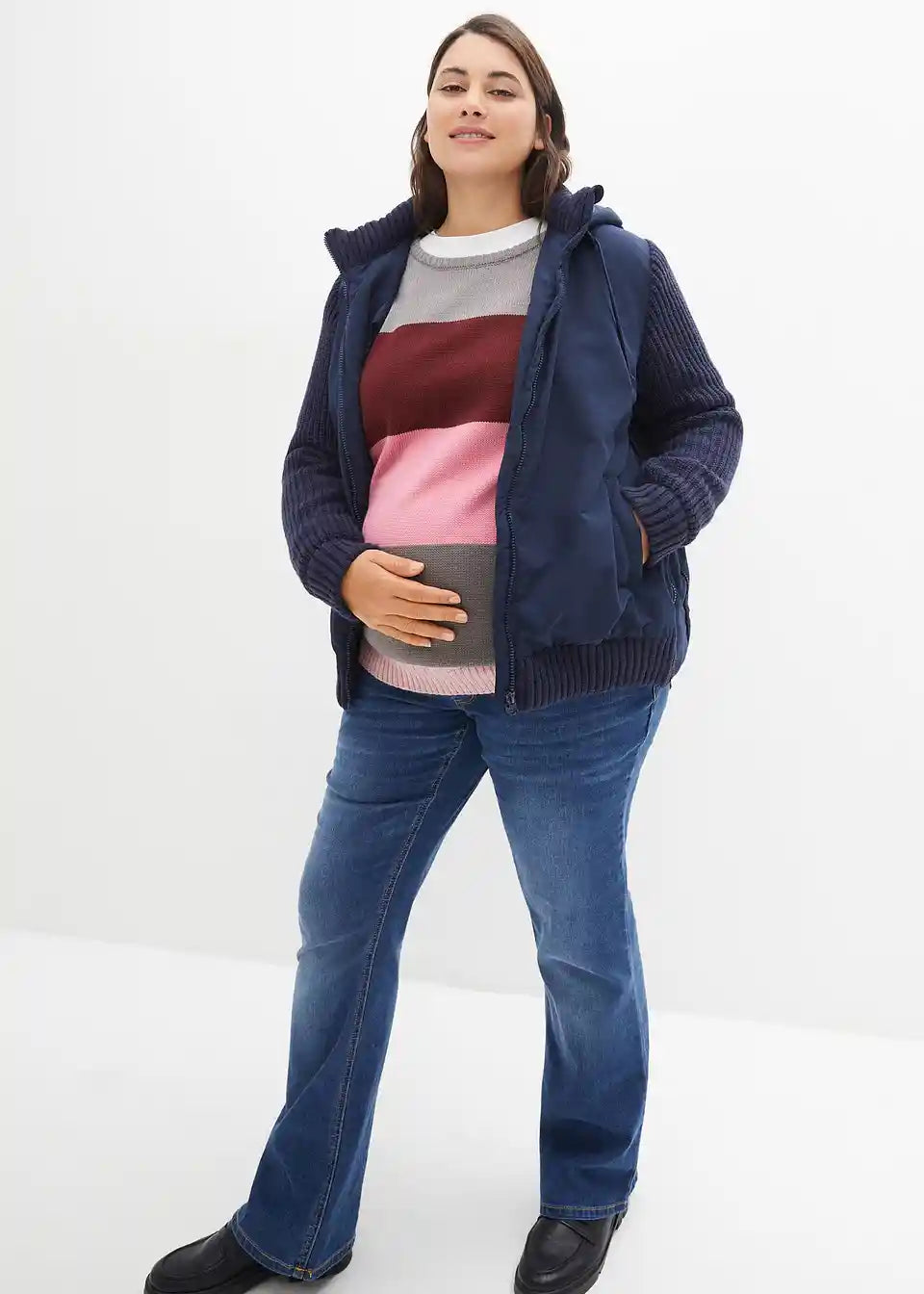 Umstands- und Tragejacke mit Strickärmeln und Kapuze