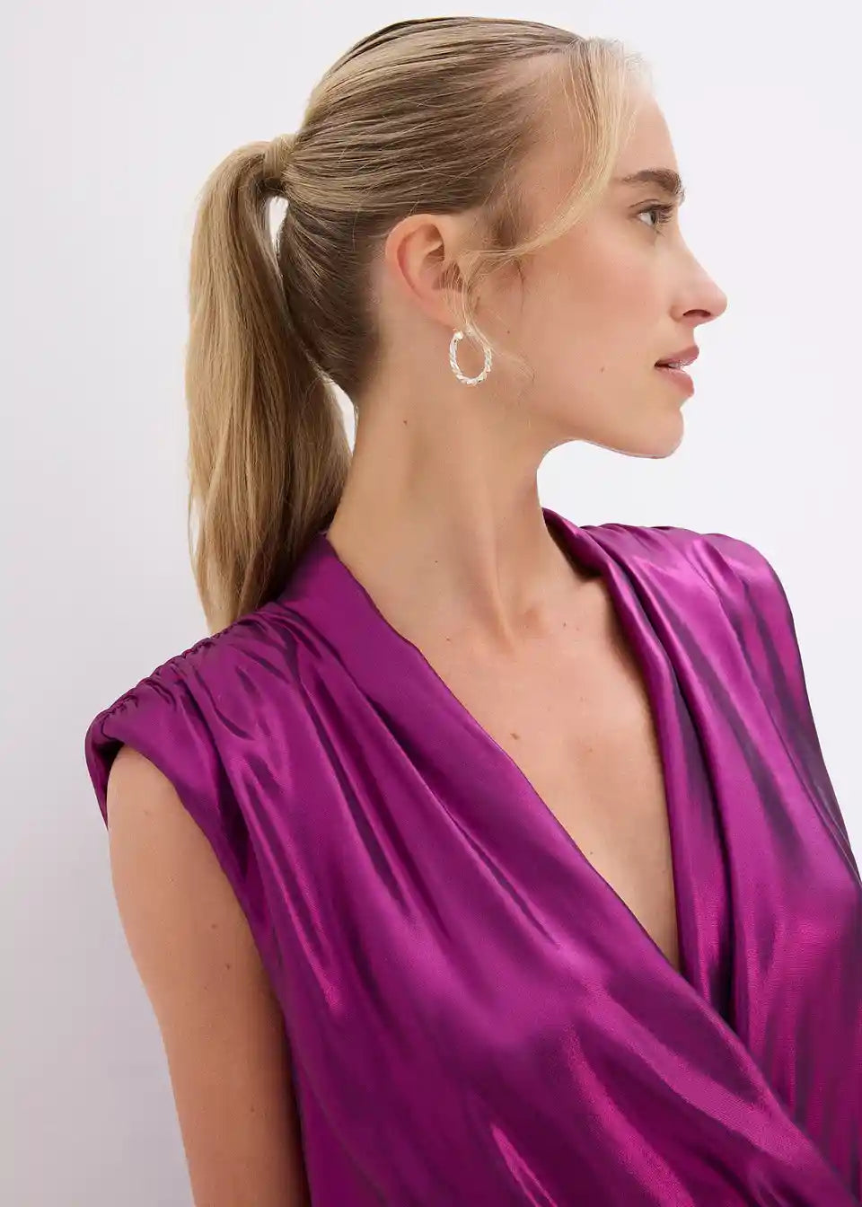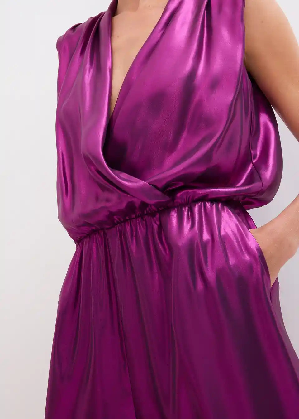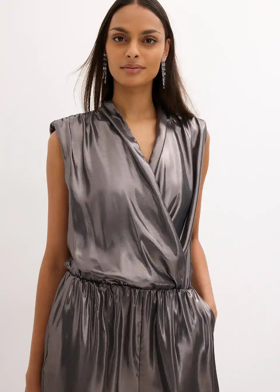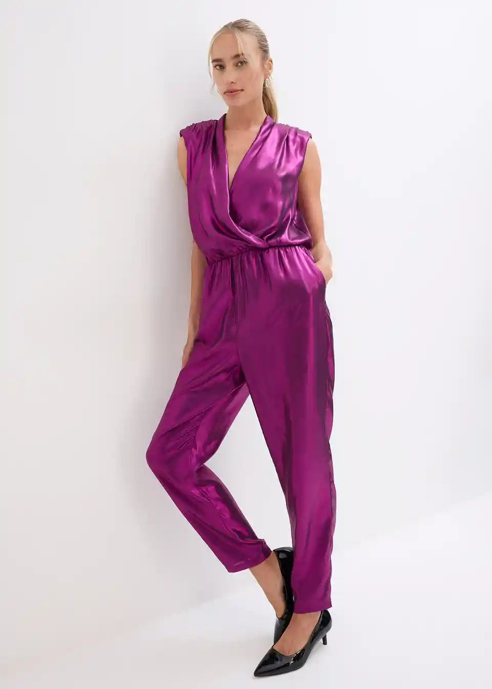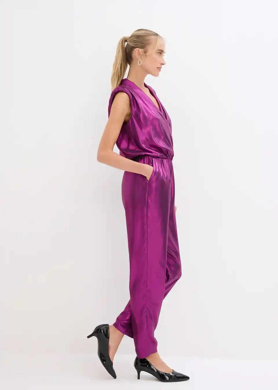 festliches Highlight: ärmelloser Overall mit elegantem Glanzdruck und moderner Schulterbetonung