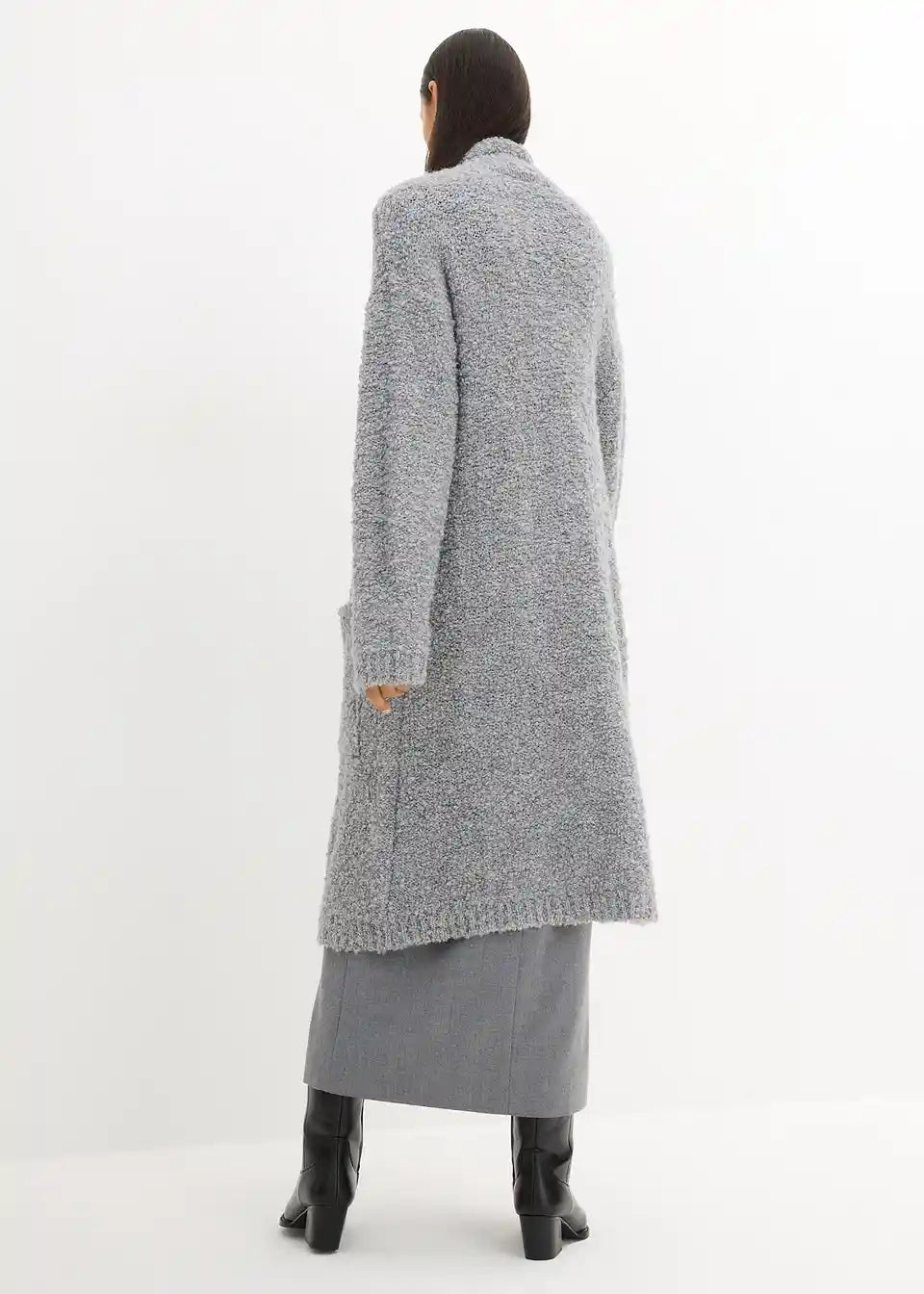 lange Strickjacke mit Reverskragen aus flauschigen Wollmix, mit aufgesetzten Taschen