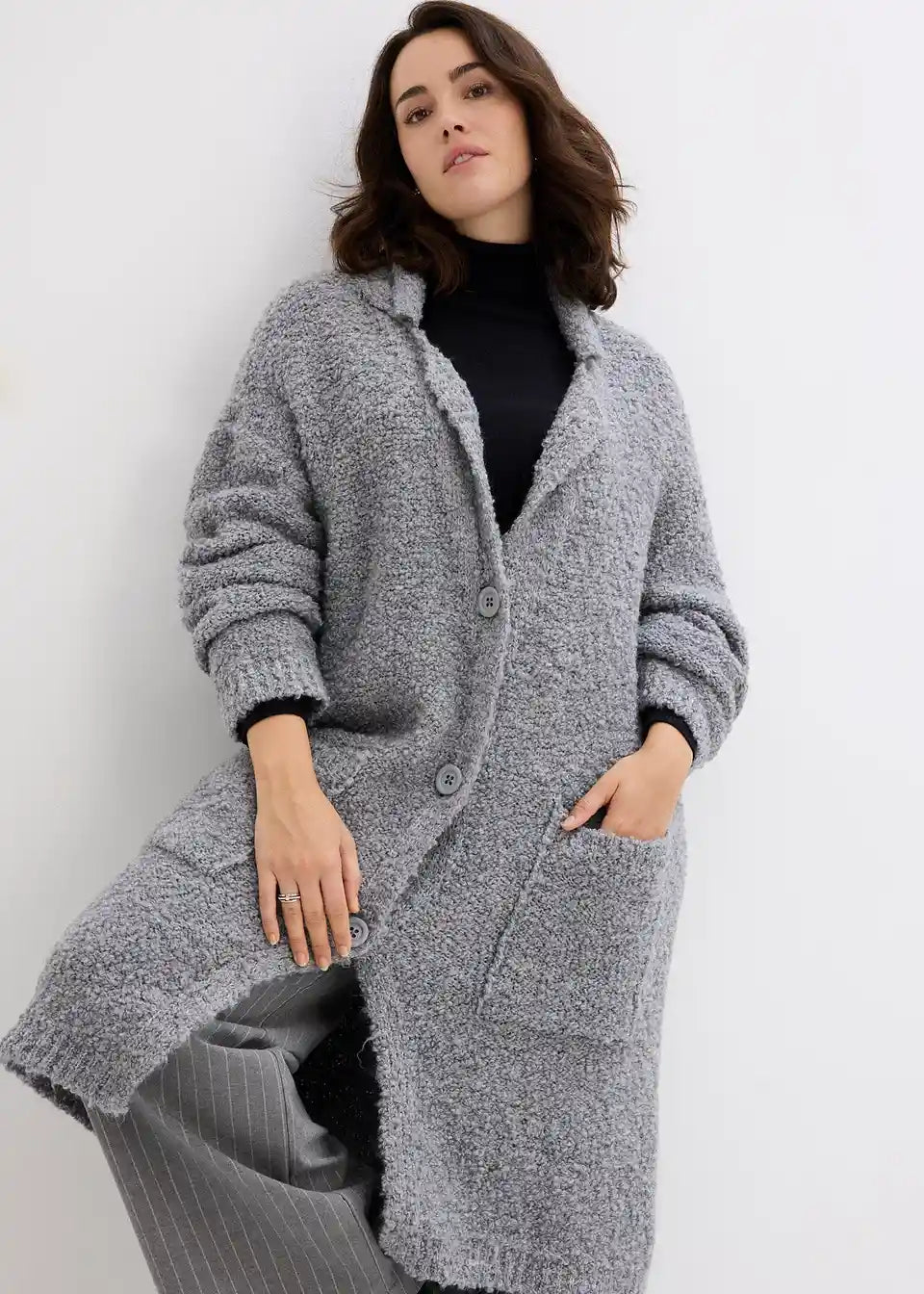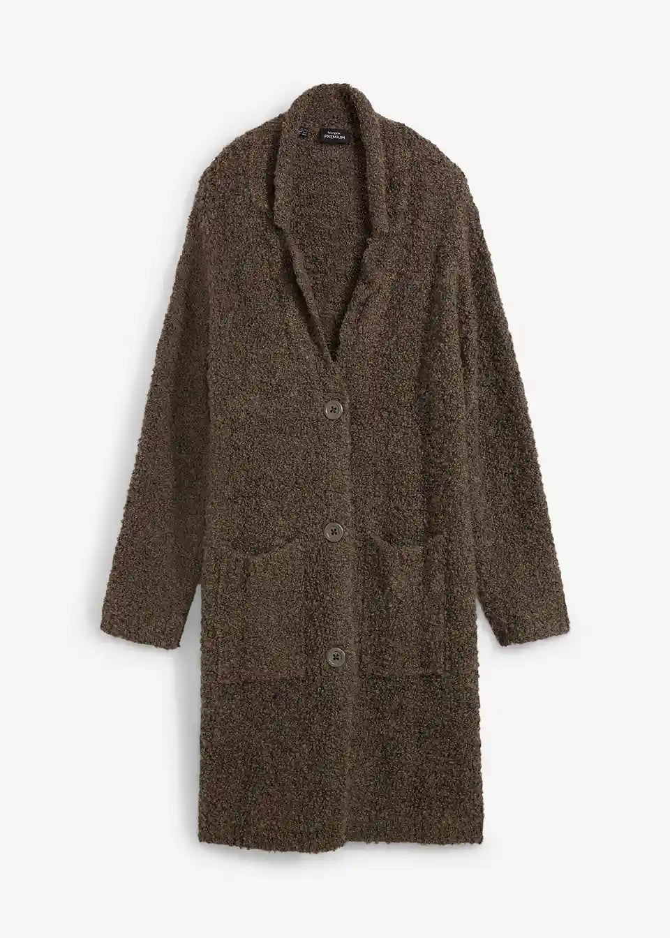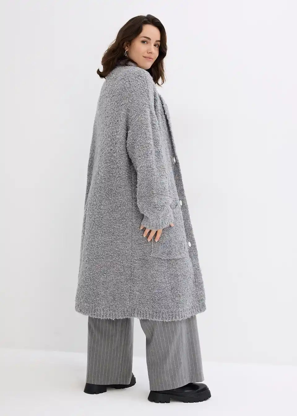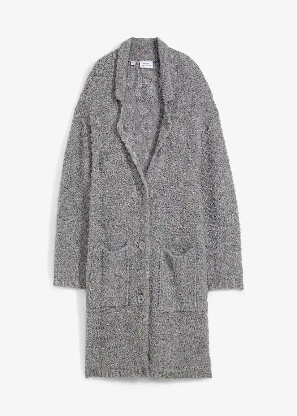 lange Strickjacke mit Reverskragen aus flauschigen Wollmix, mit aufgesetzten Taschen