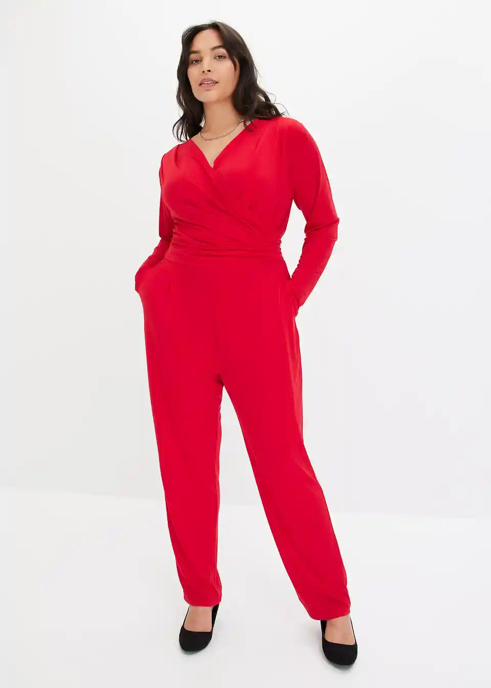Sexy Overall mit Ausschnitt in Wickeloptik und Bindegürtel