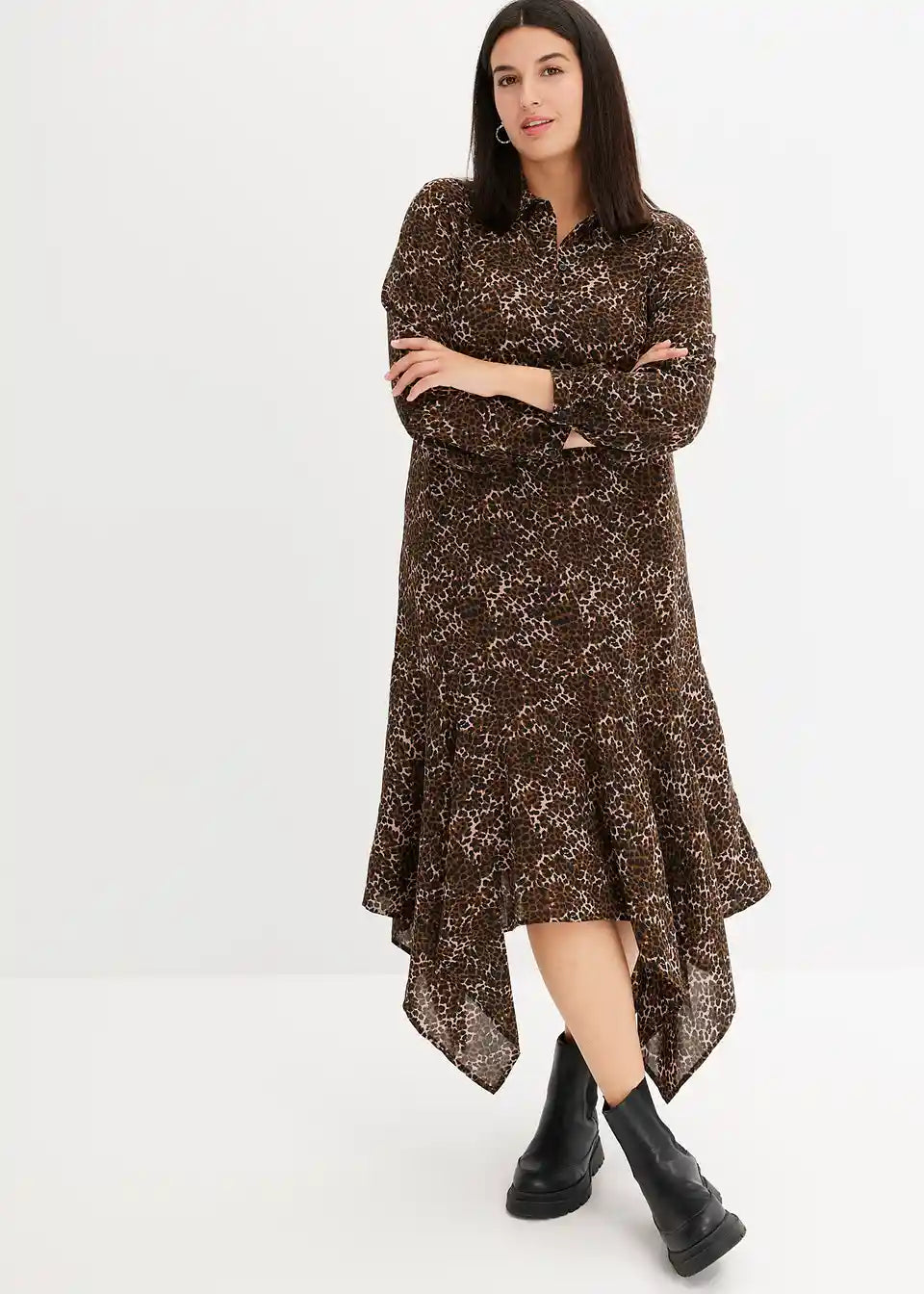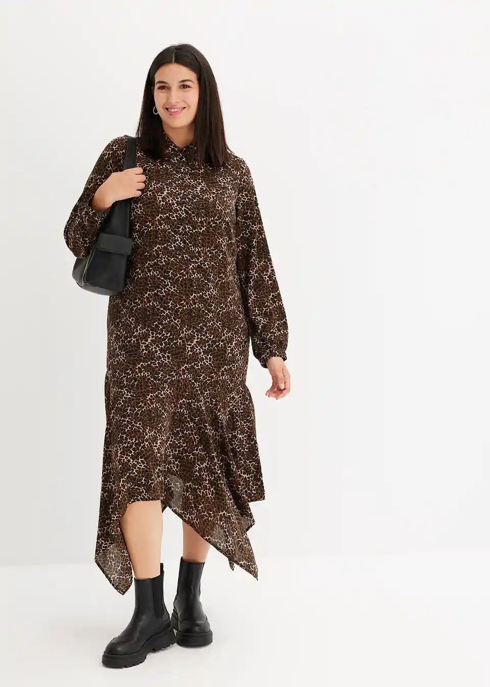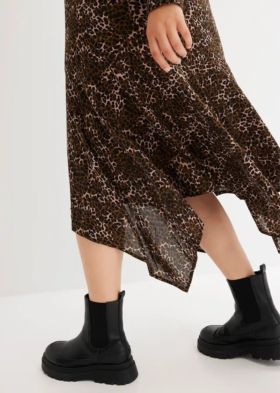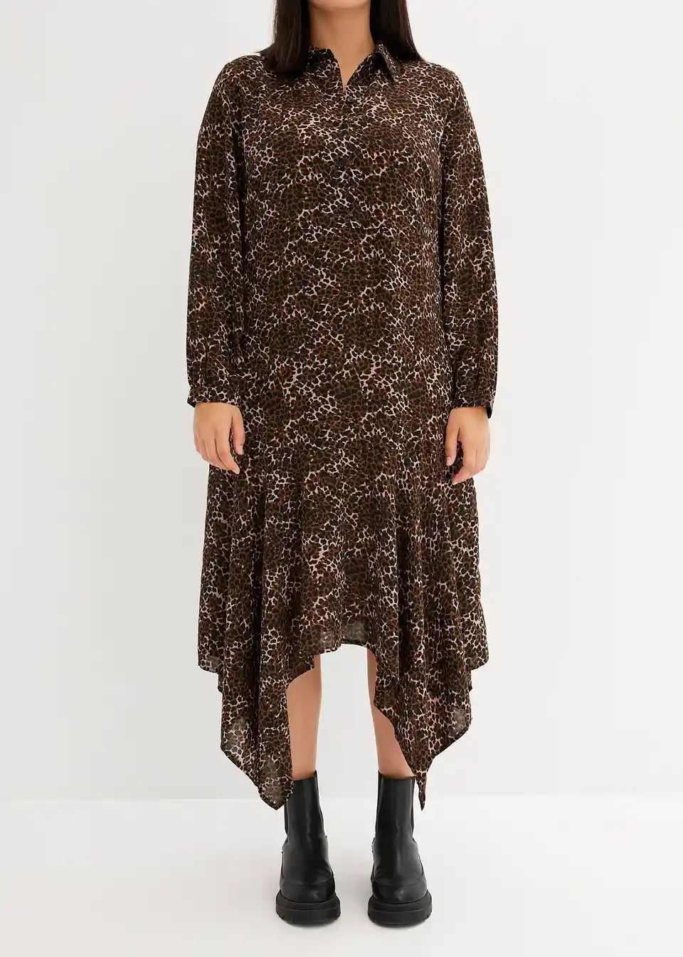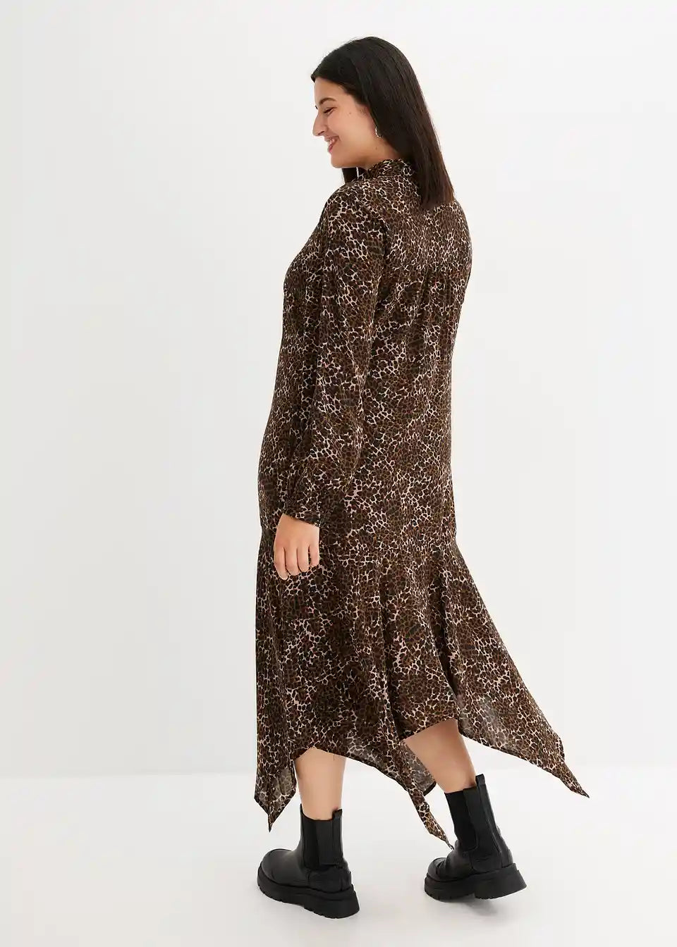 Kleid mit Zipfelsaum und Leo-Druck