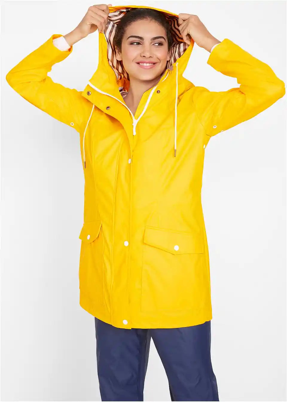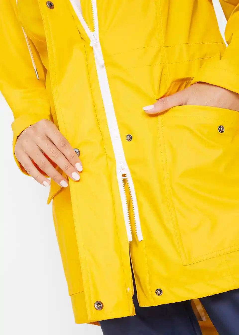 Lange Regenjacke mit Kapuze, wasserabweisend