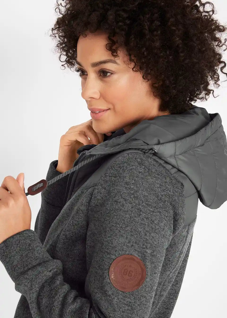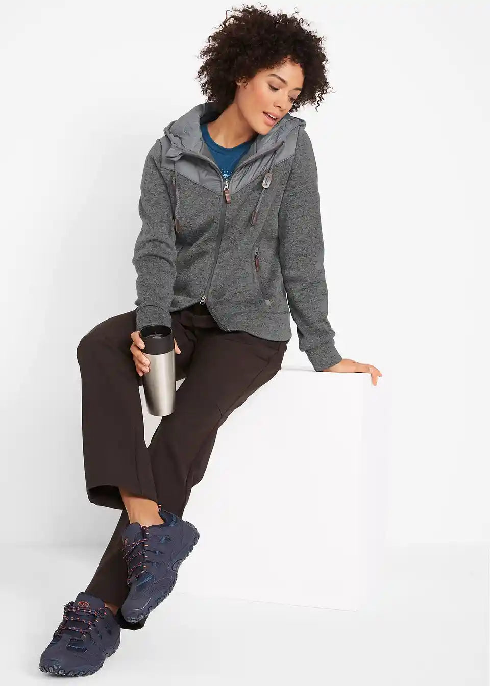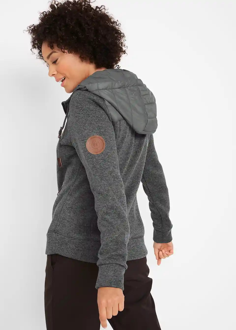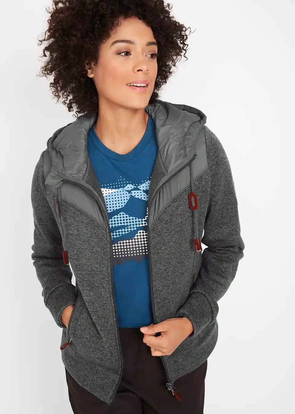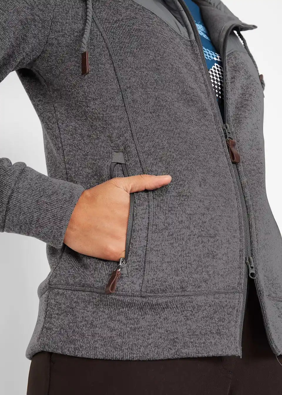 Kuschelige Strickfleecejacke mit Kapuze und verschließbaren Eingrifftaschen