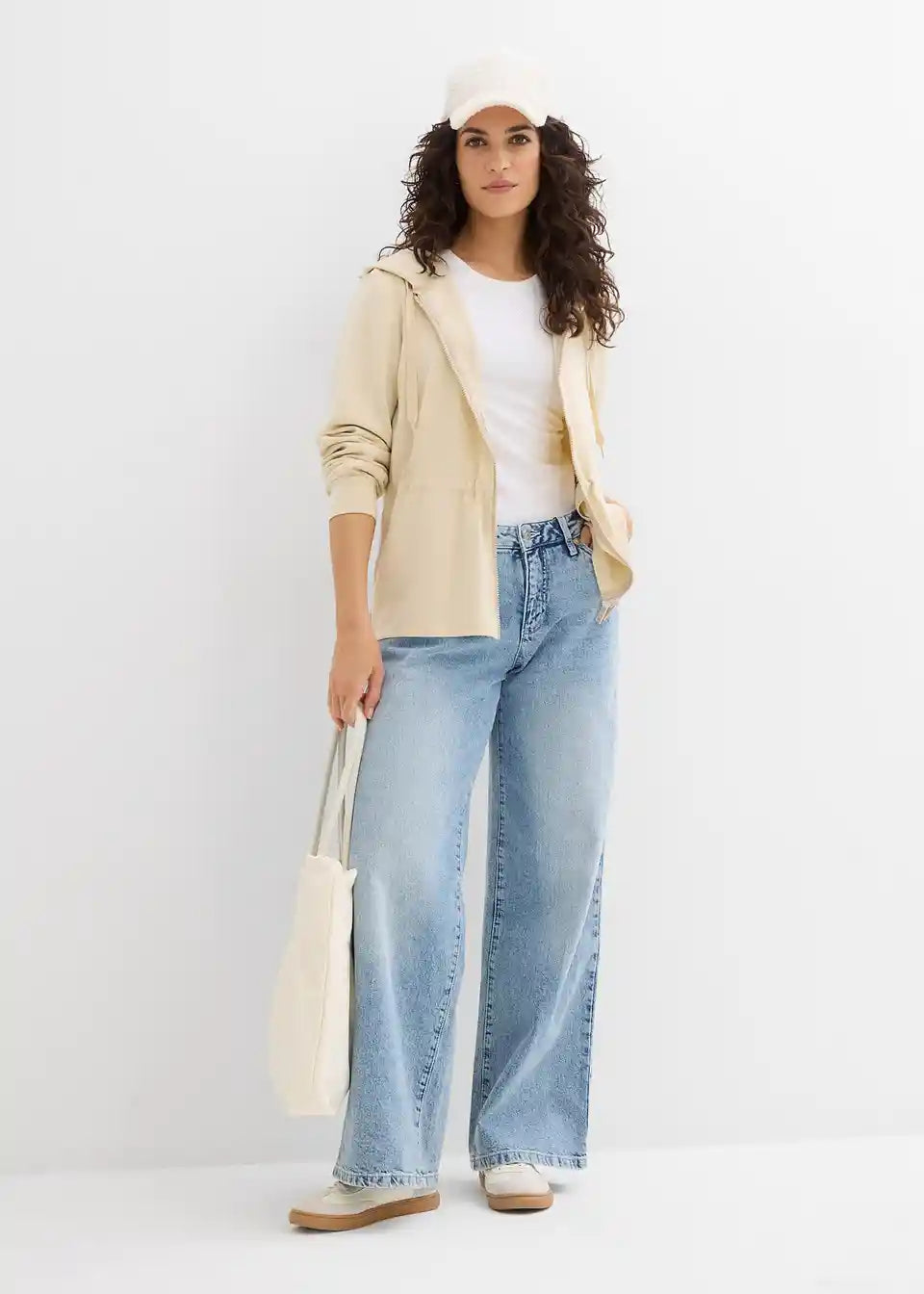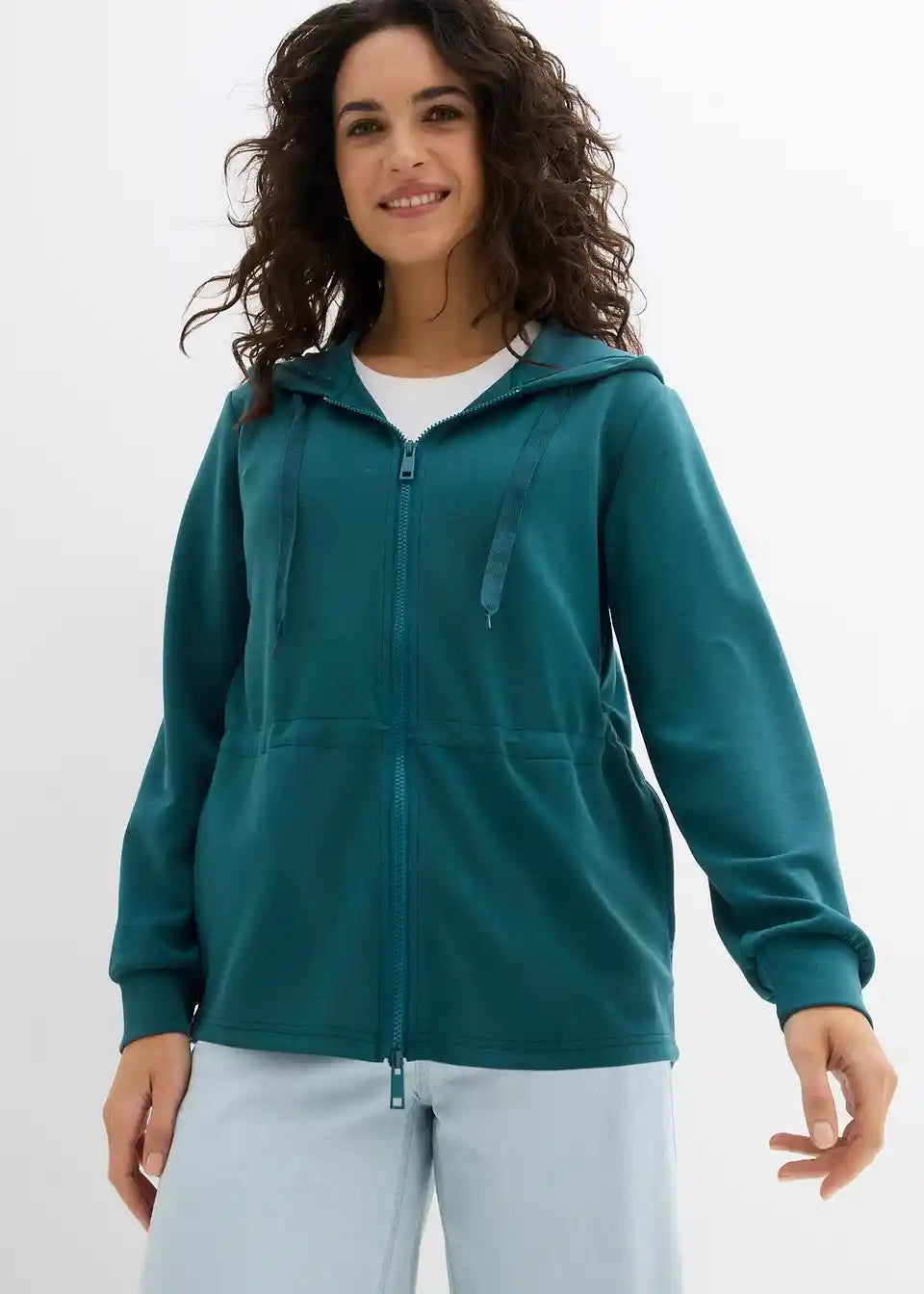 Sweatjacke aus Scuba mit 2-Wege-Reißverschluss und hinten verlängertem Saum