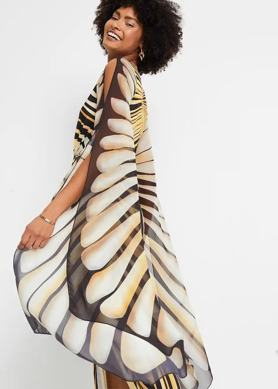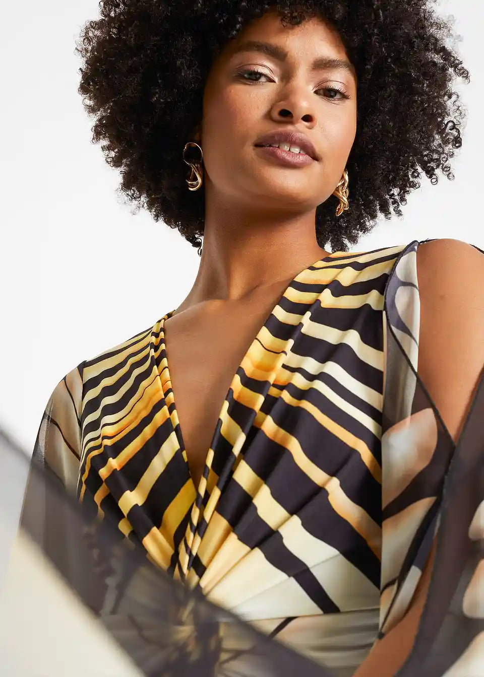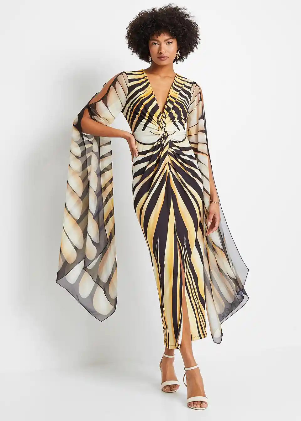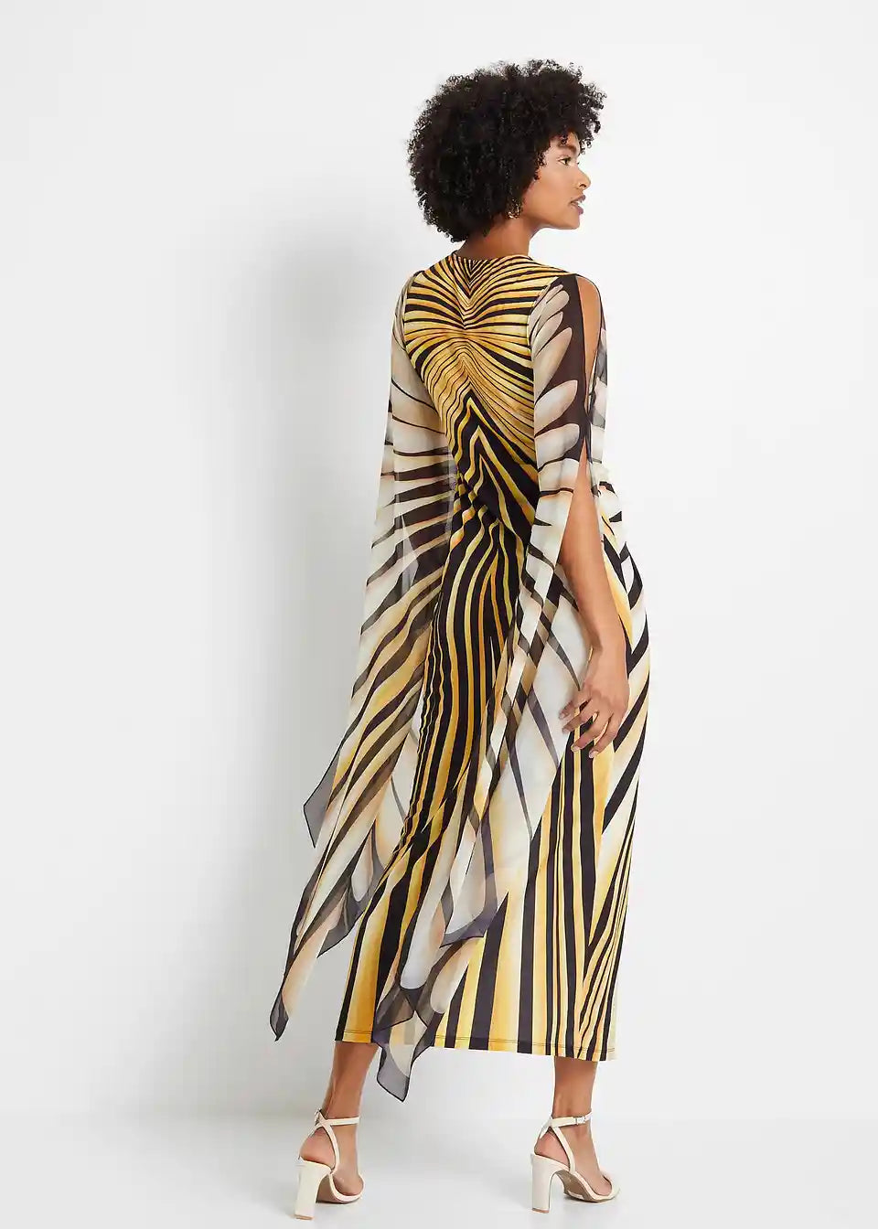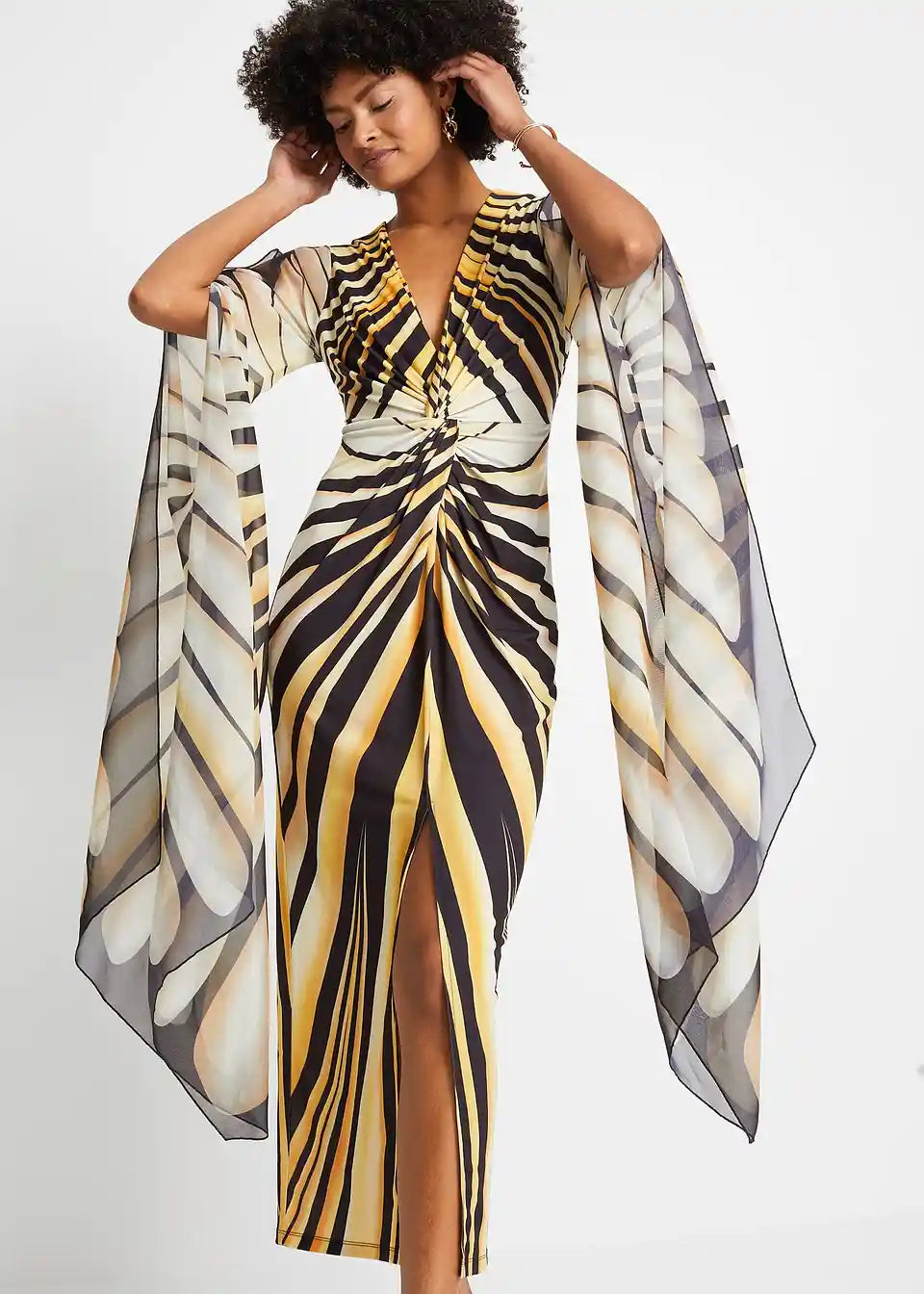 Elegant und Modern Jerseykleid mit schönem Druck und langen Volant-Ärmel