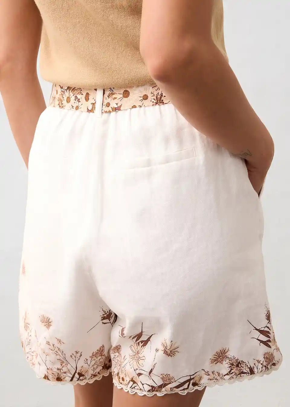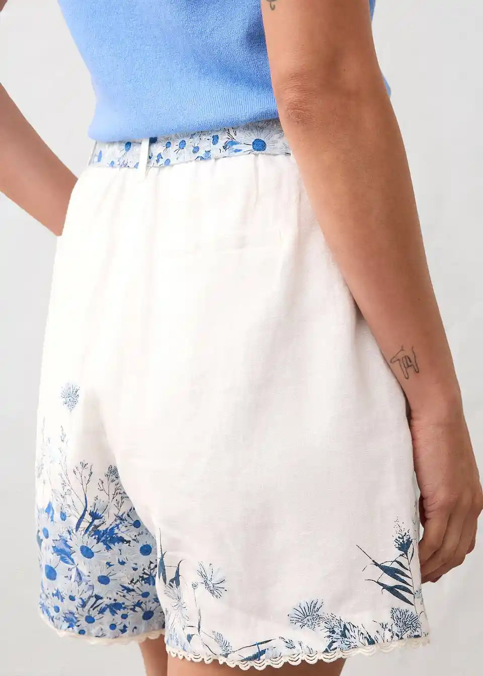Shorts aus reinem Leinen mit floralem Druck