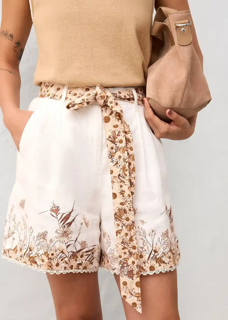 Premium Shorts mit charmanten Druck und aus reinem Leinen