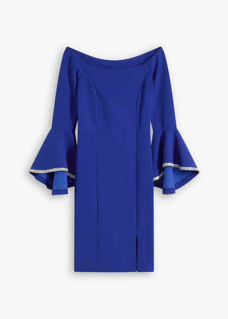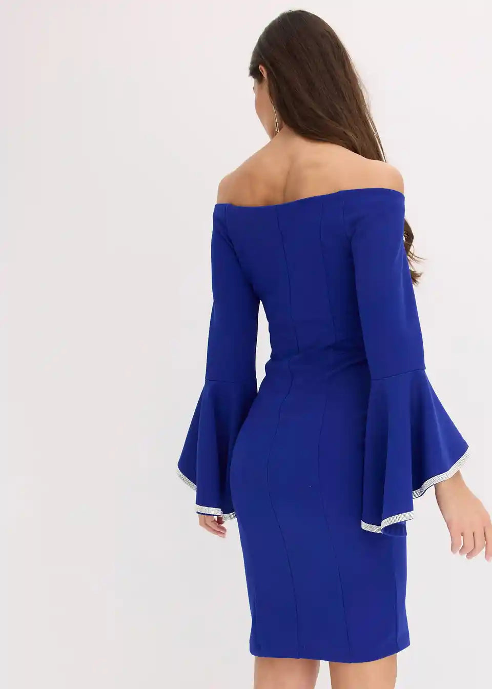 Bezaubernd feminin: Jersey-Kleid mit Carmenaussschnitt und weiten Volant-Ärmeln