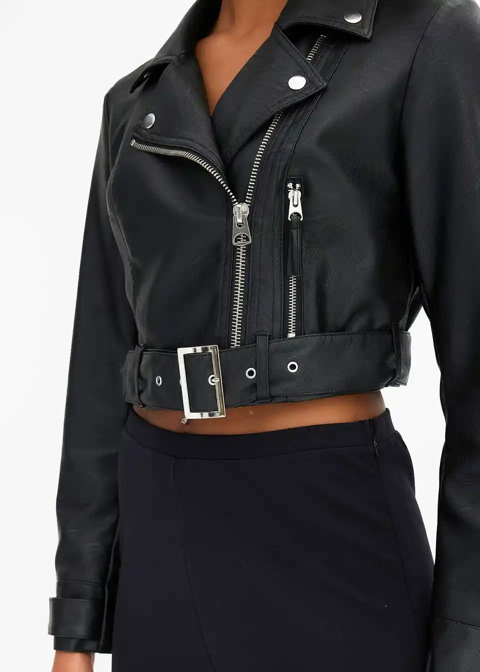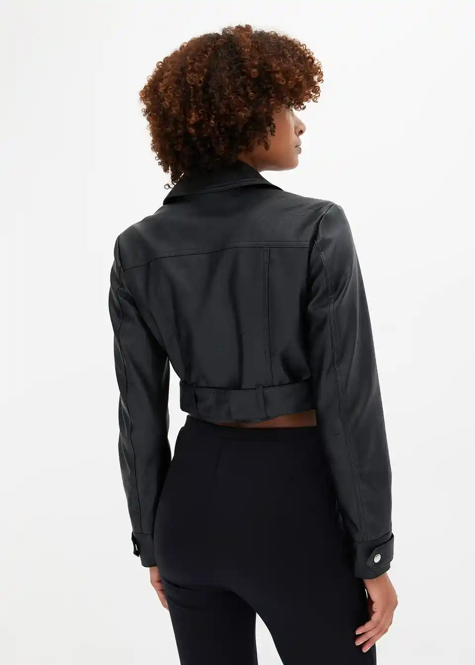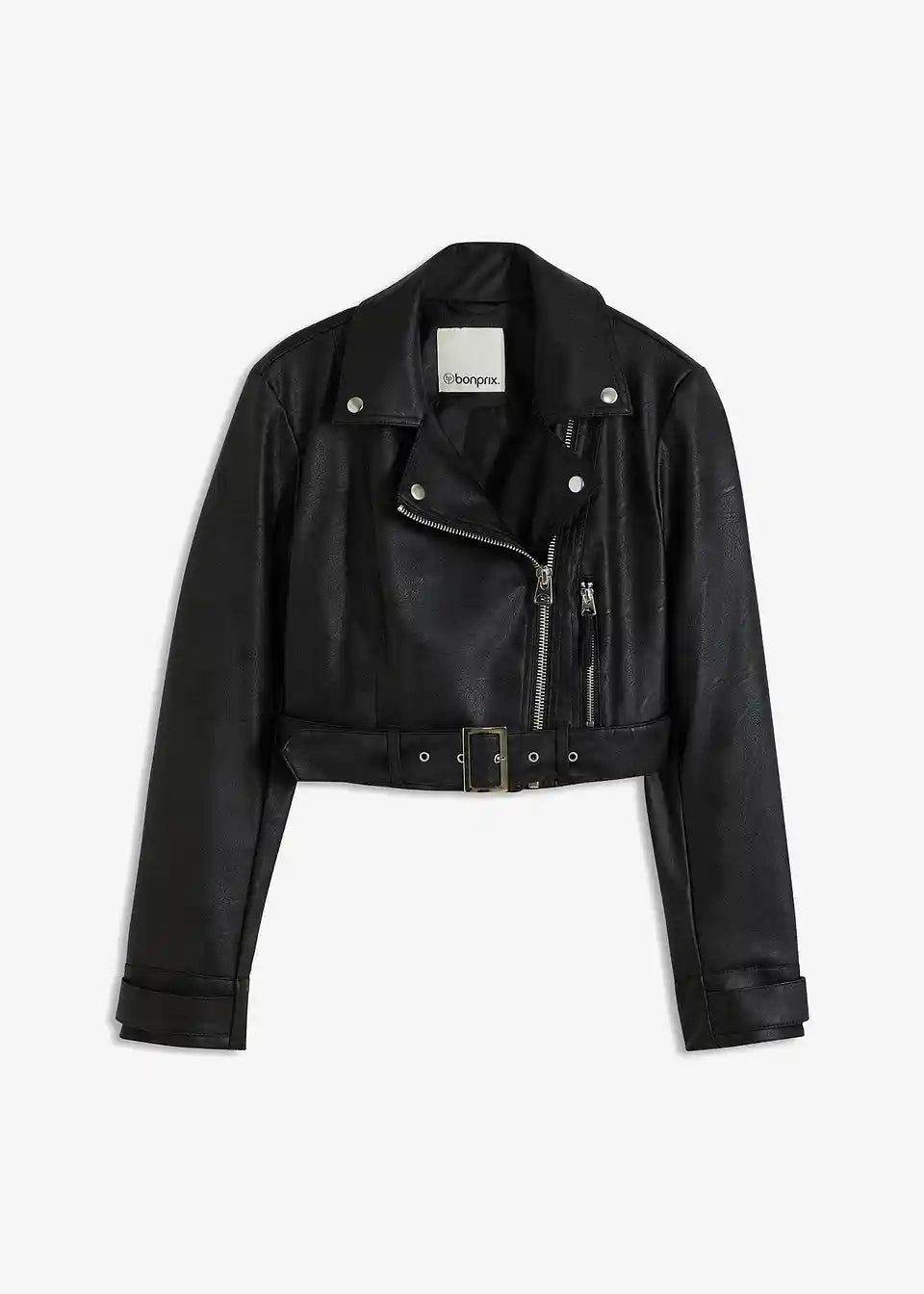 Stylische Bikerjacke mit toller Passform und dekorativem Reißverschluss in Lederoptik