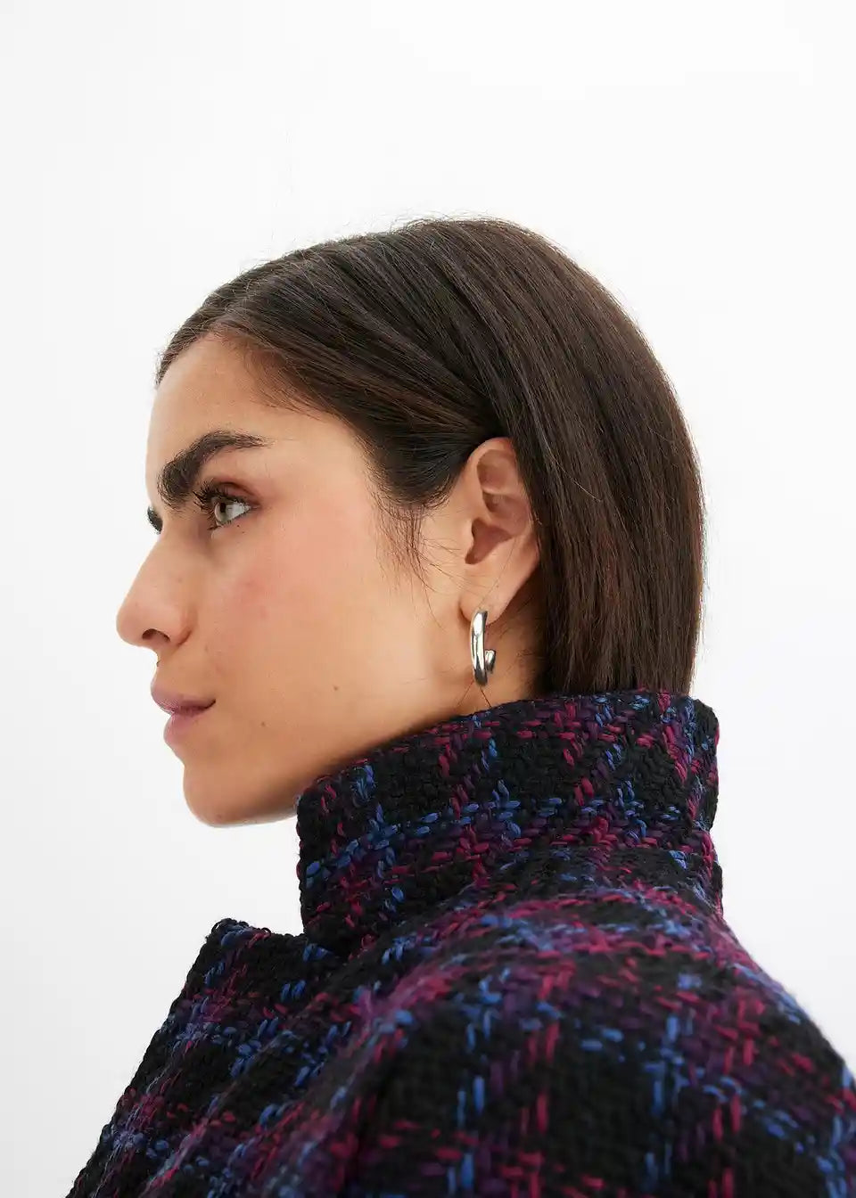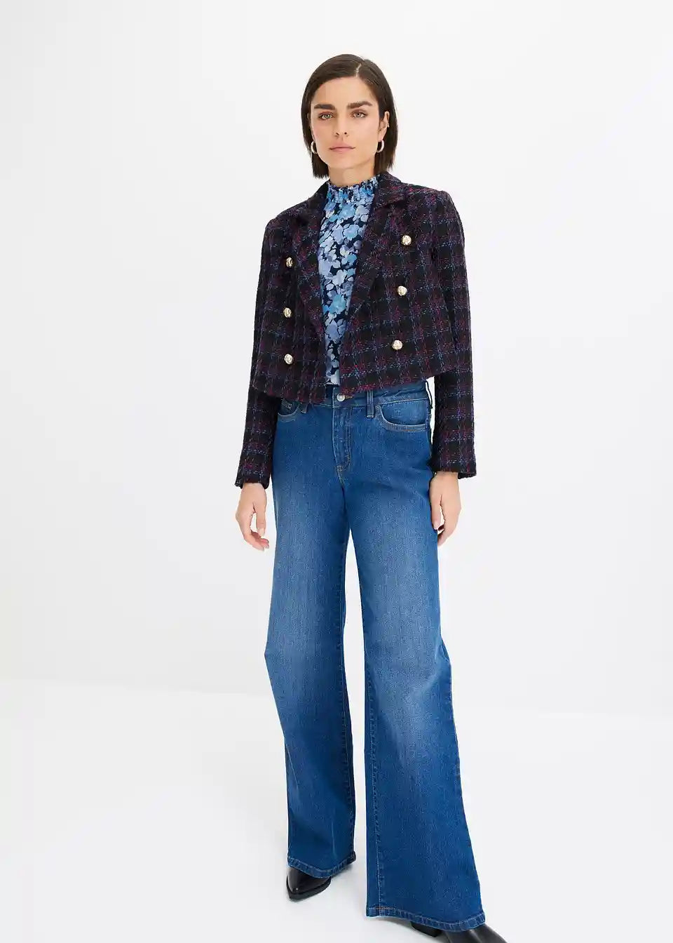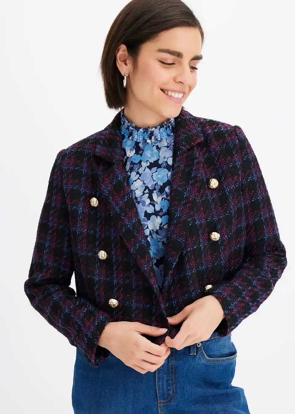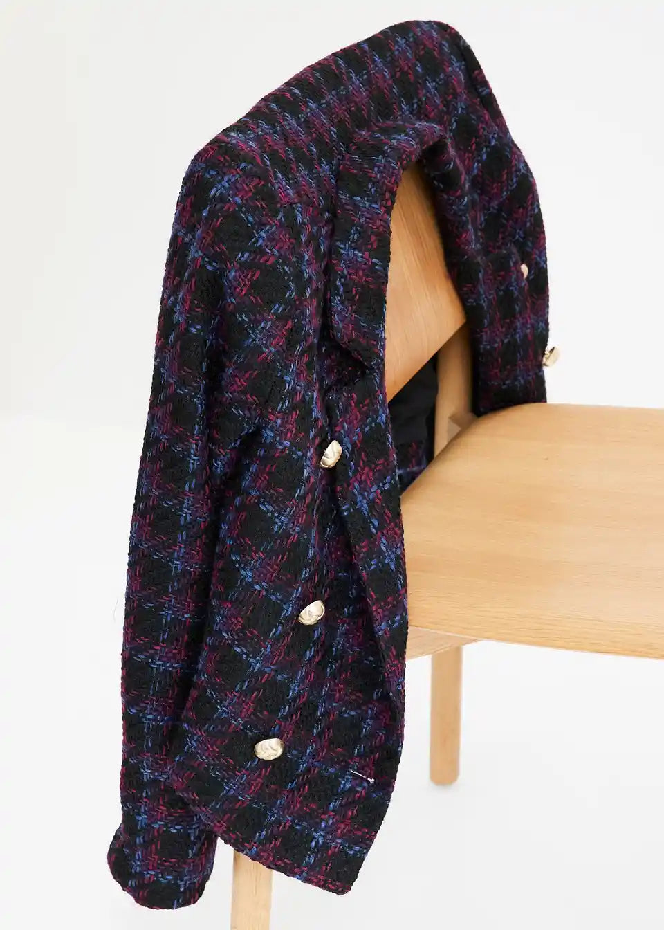 verkürzter Bouclé-Blazer mit Karo-Muster und dekorativen Knöpfen