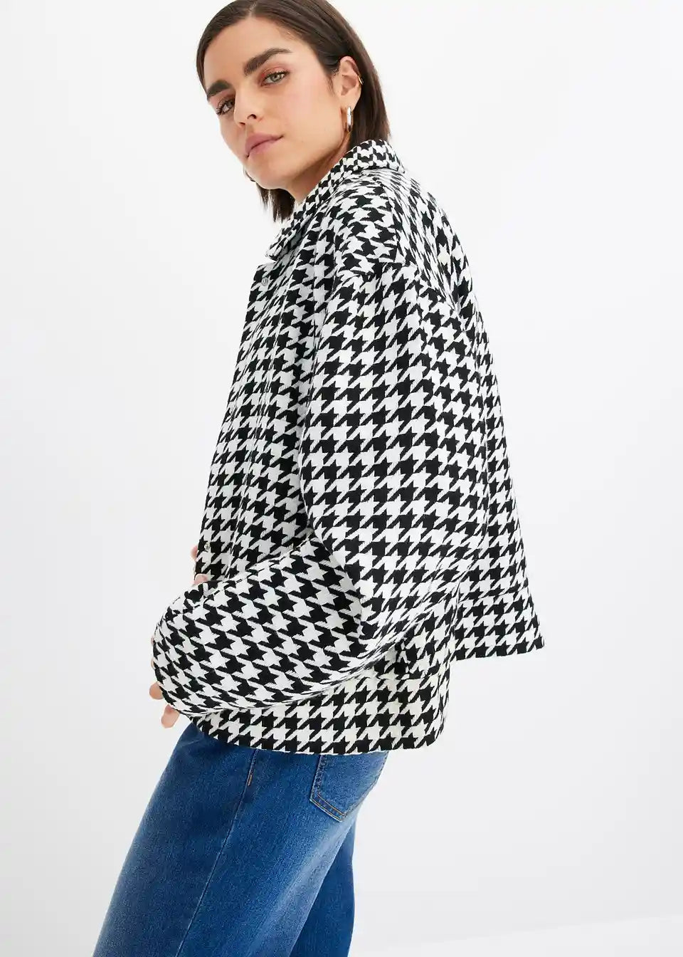 modische Jacke im Blouson-Stil mit Hahnentritt-Muster
