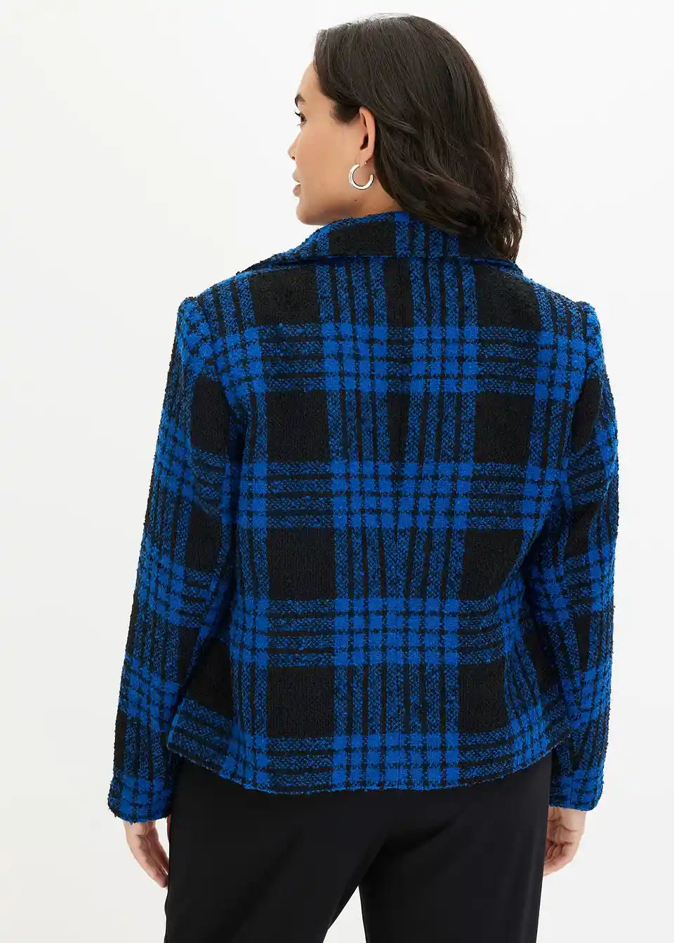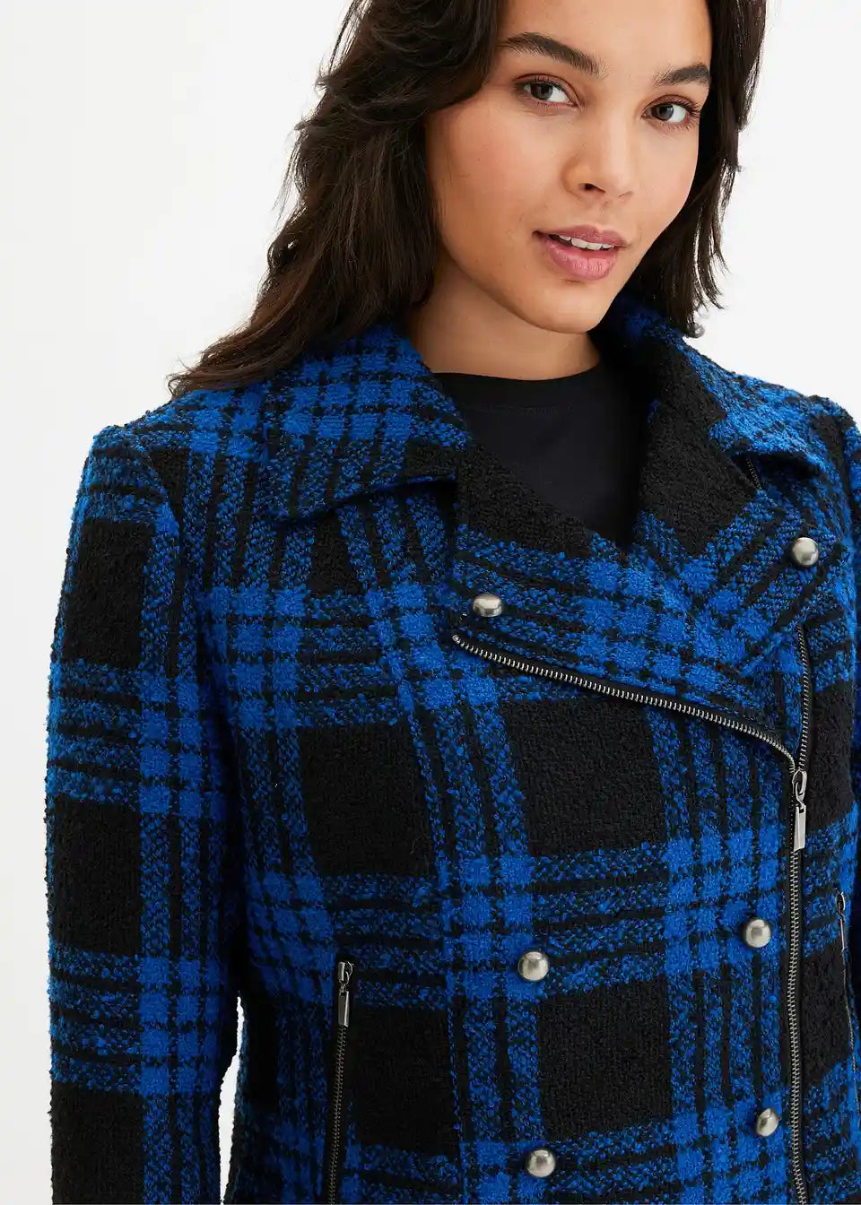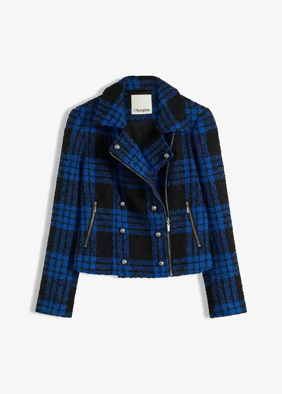 modische Jacke im Biker-Stil mit Karo-Muster und dekorativen Knöpfen
