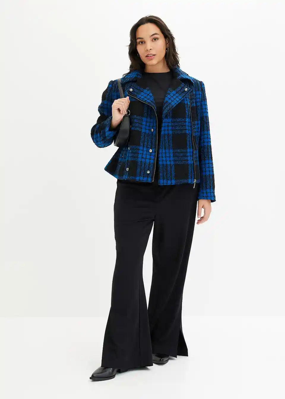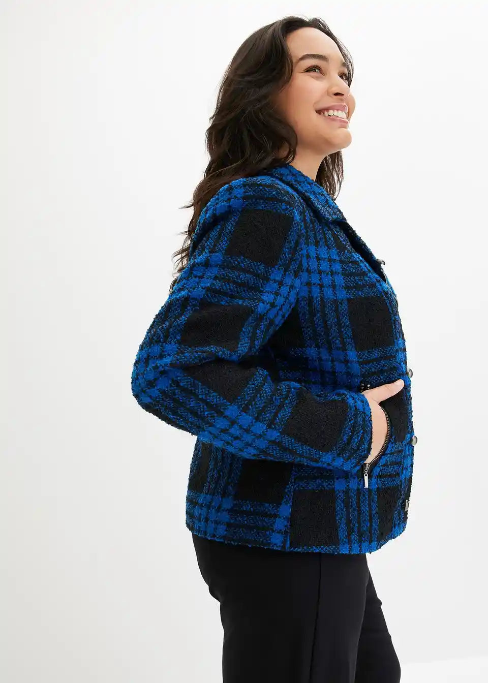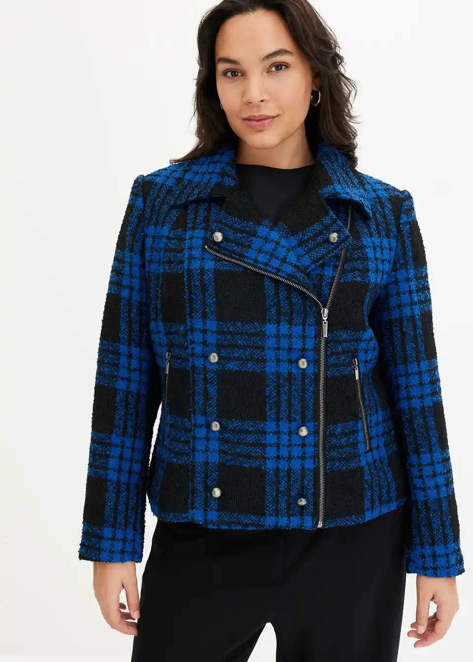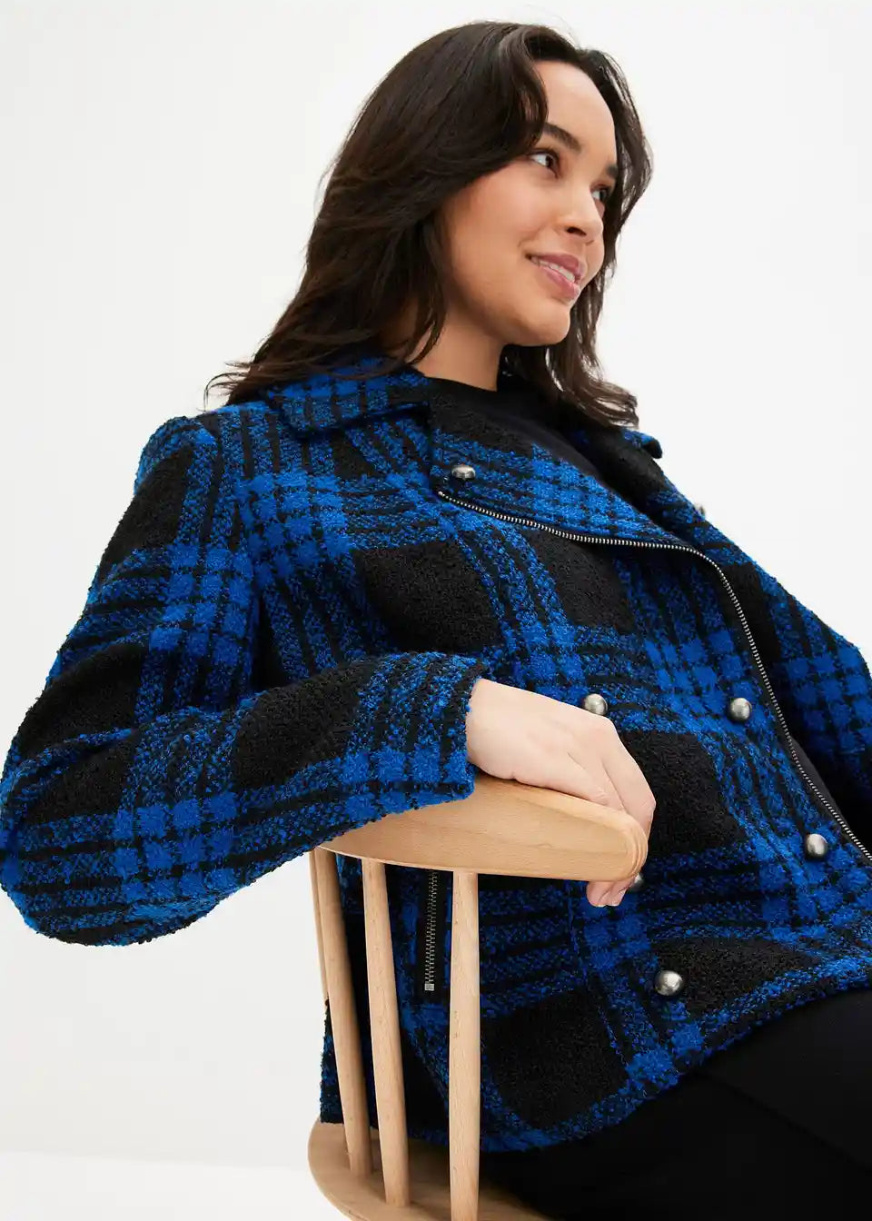 modische Jacke im Biker-Stil mit Karo-Muster und dekorativen Knöpfen