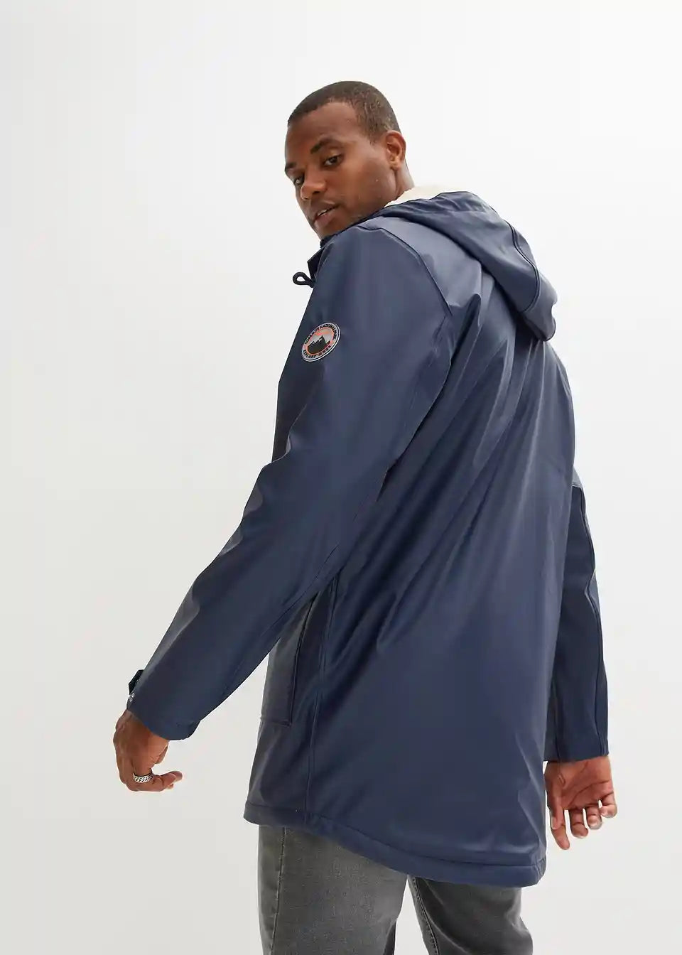 Schöne funktionale Regenjacke mit Teddyfutter im inneren der Jacke.