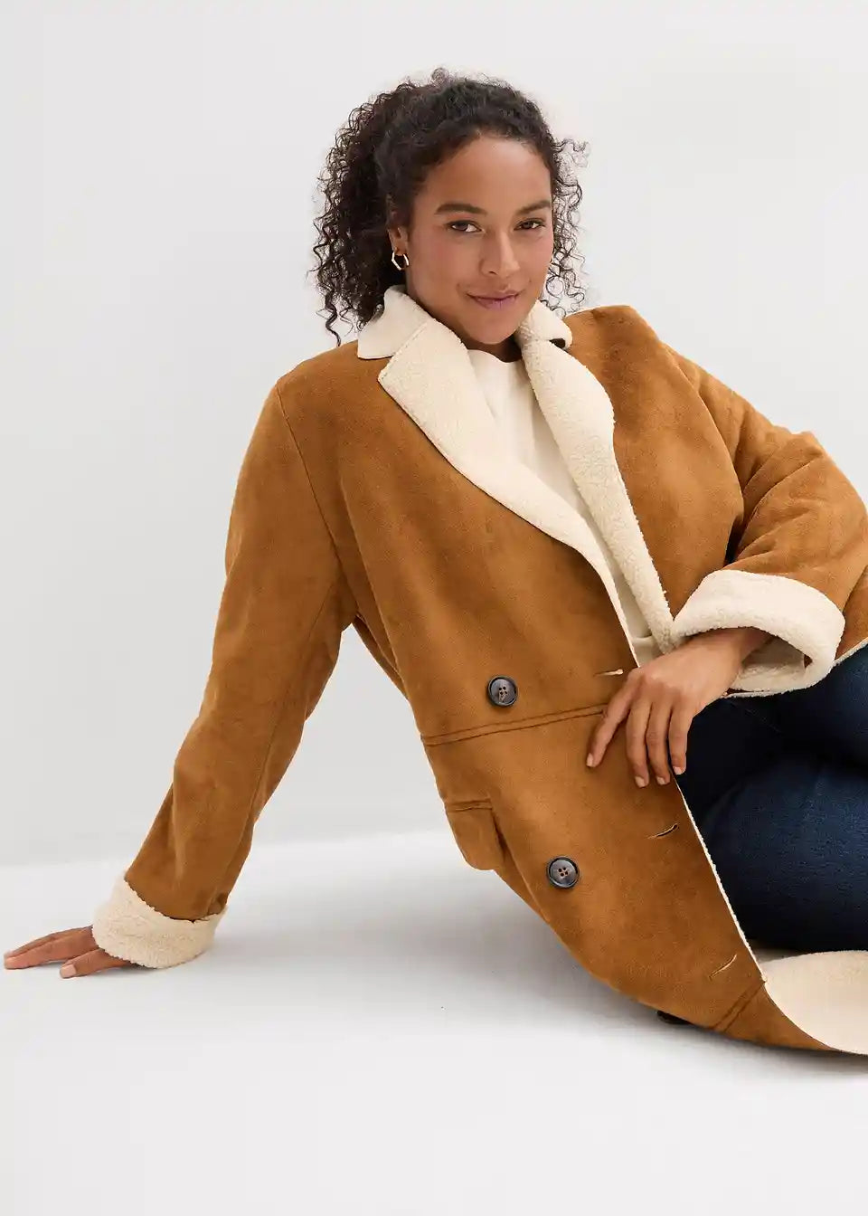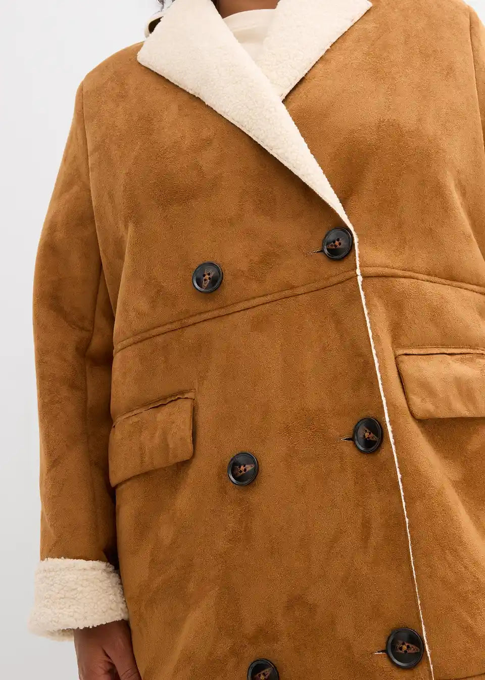 Lederimitat-Mantel mit Teddy warm gefüttert