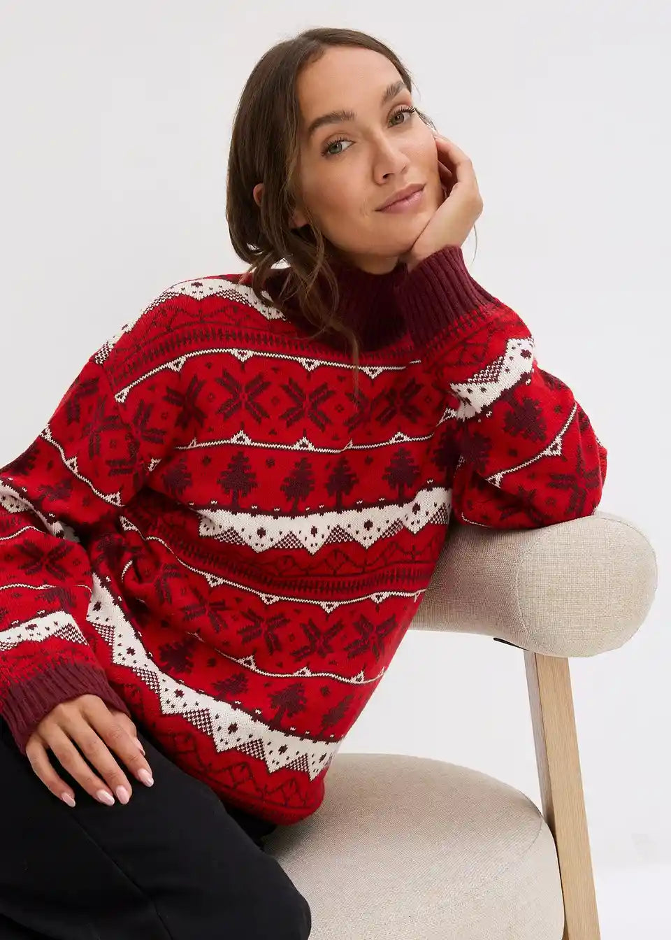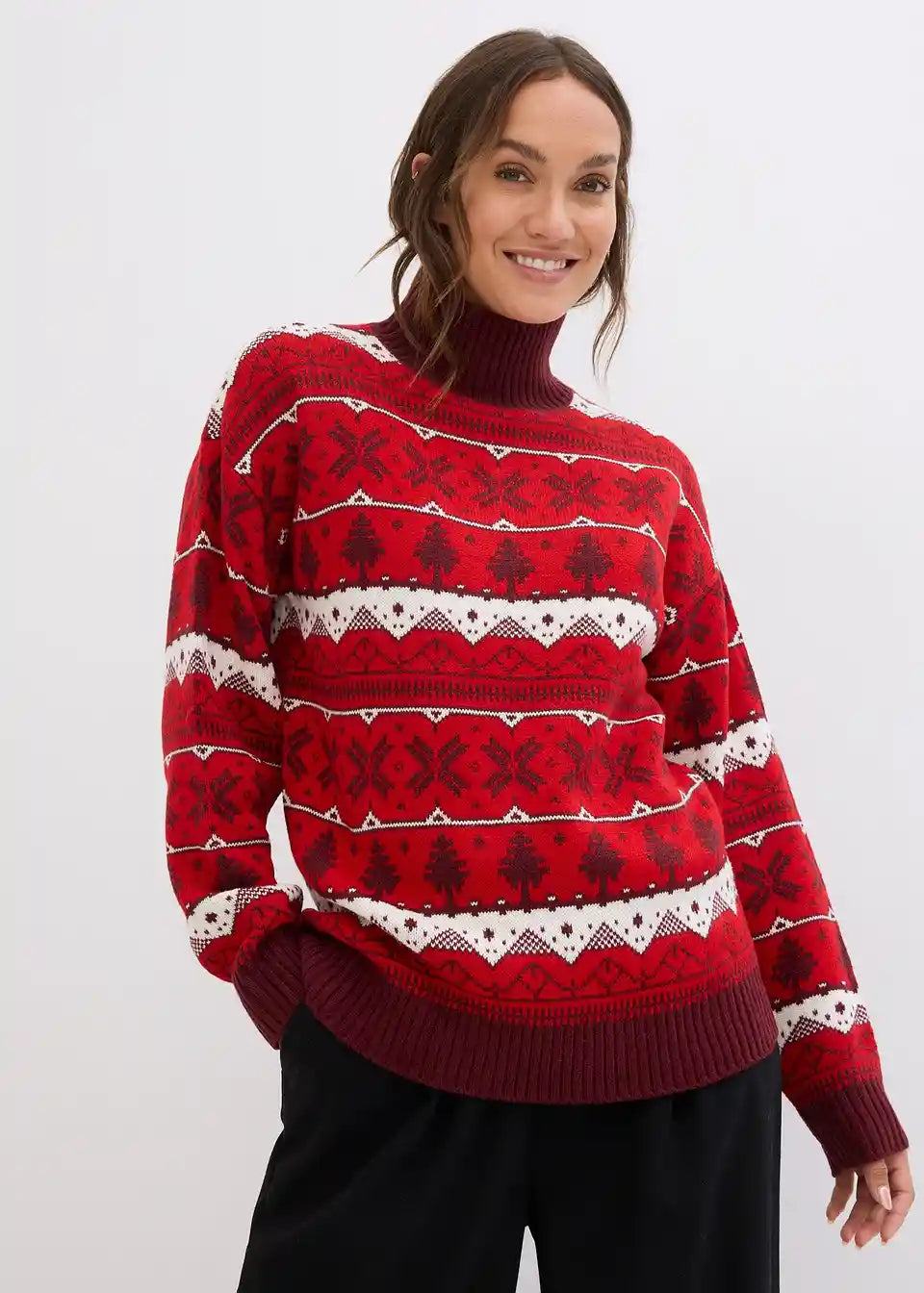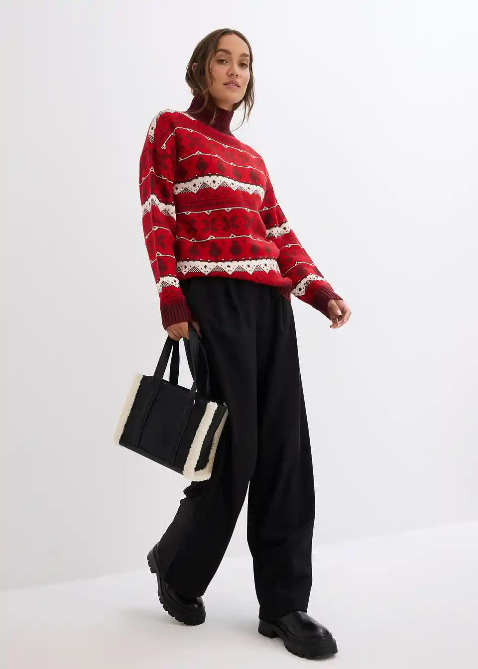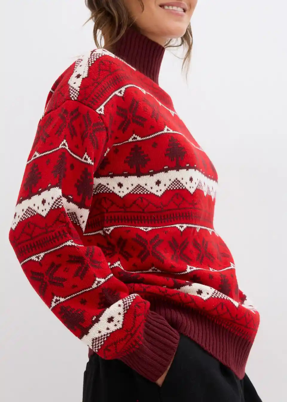 Stehkragen-Pullover mit weihnachtlichem Motiv