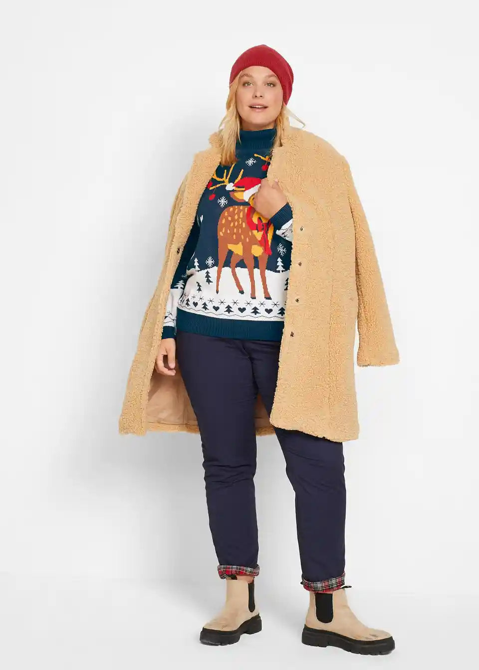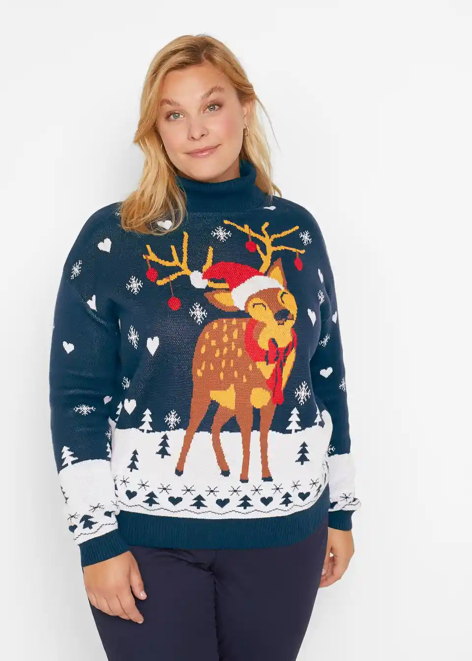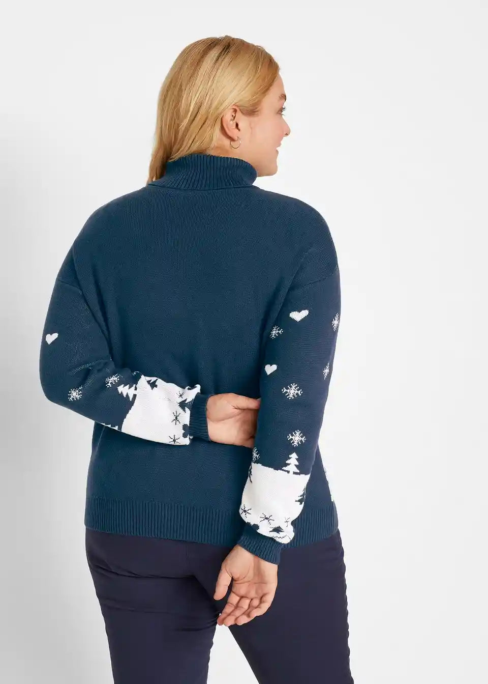 Weihnachtlicher Strick-Pullover mit Rollkragen und Motiv