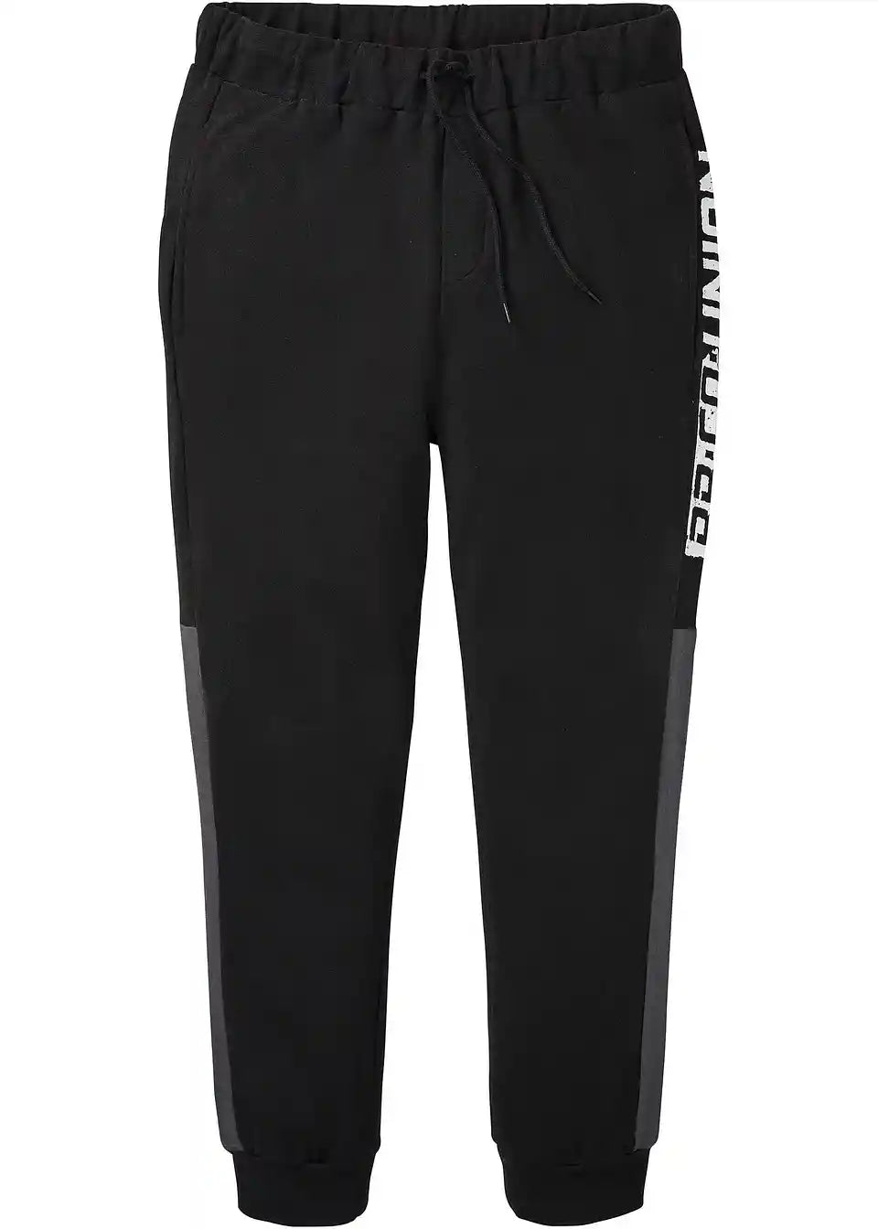 Moderne Jogginghose mit Schriftzug und Kontrasteinsatz am Bein, innen weich angeraut