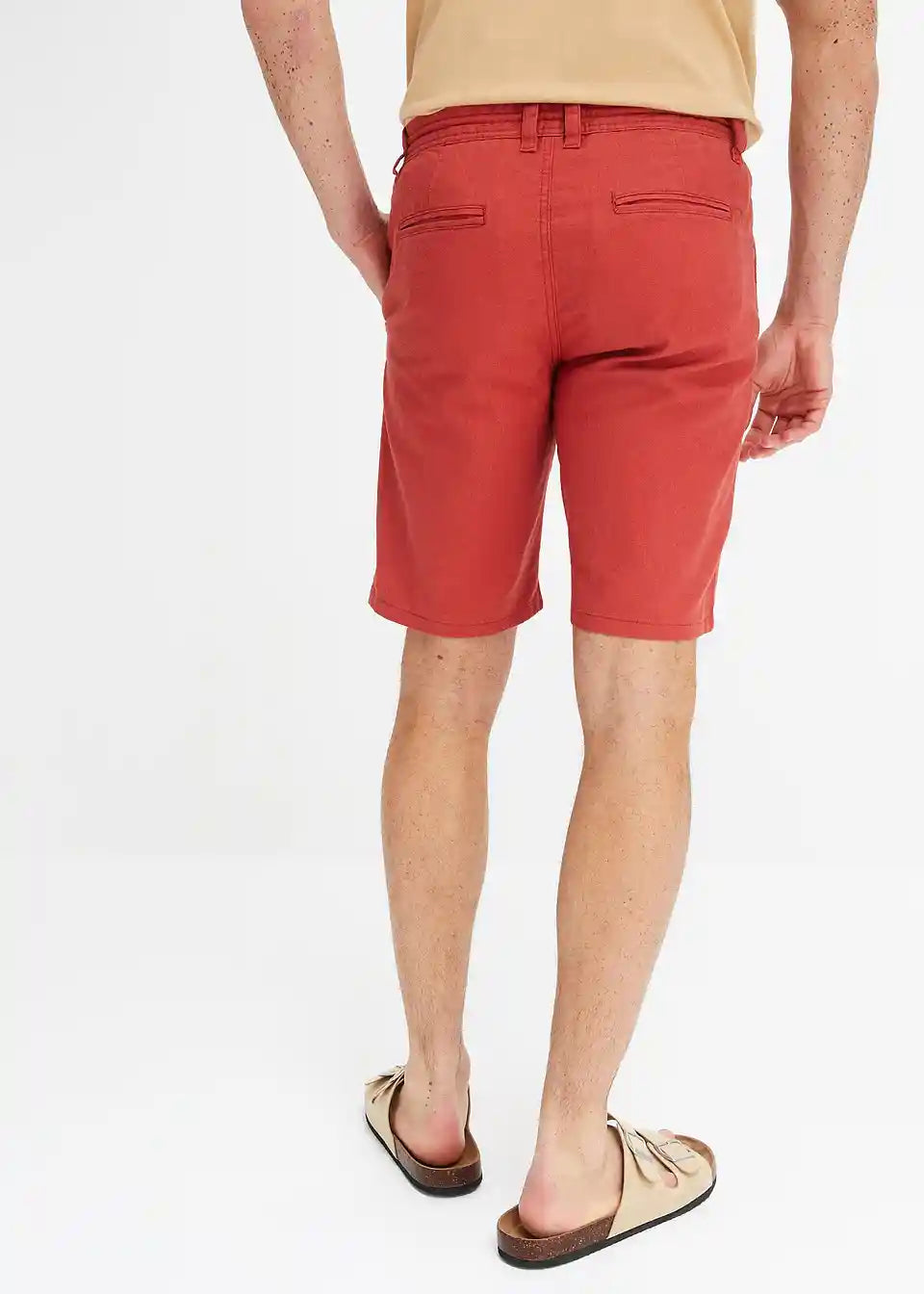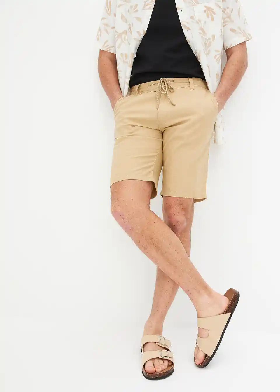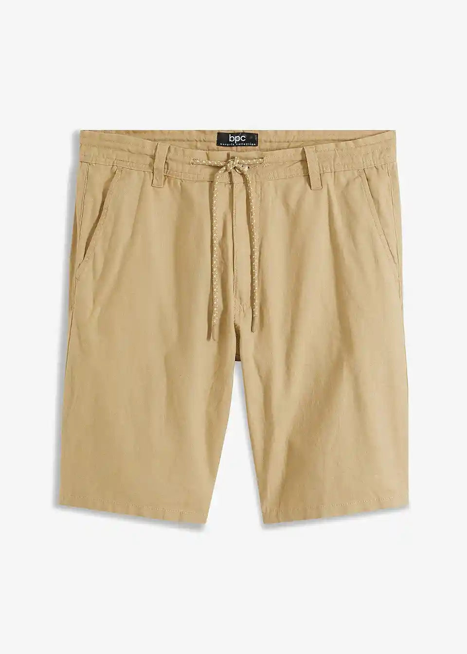 Chino-Bermuda mit Leinenanteil und Bindeband, Regular Fit