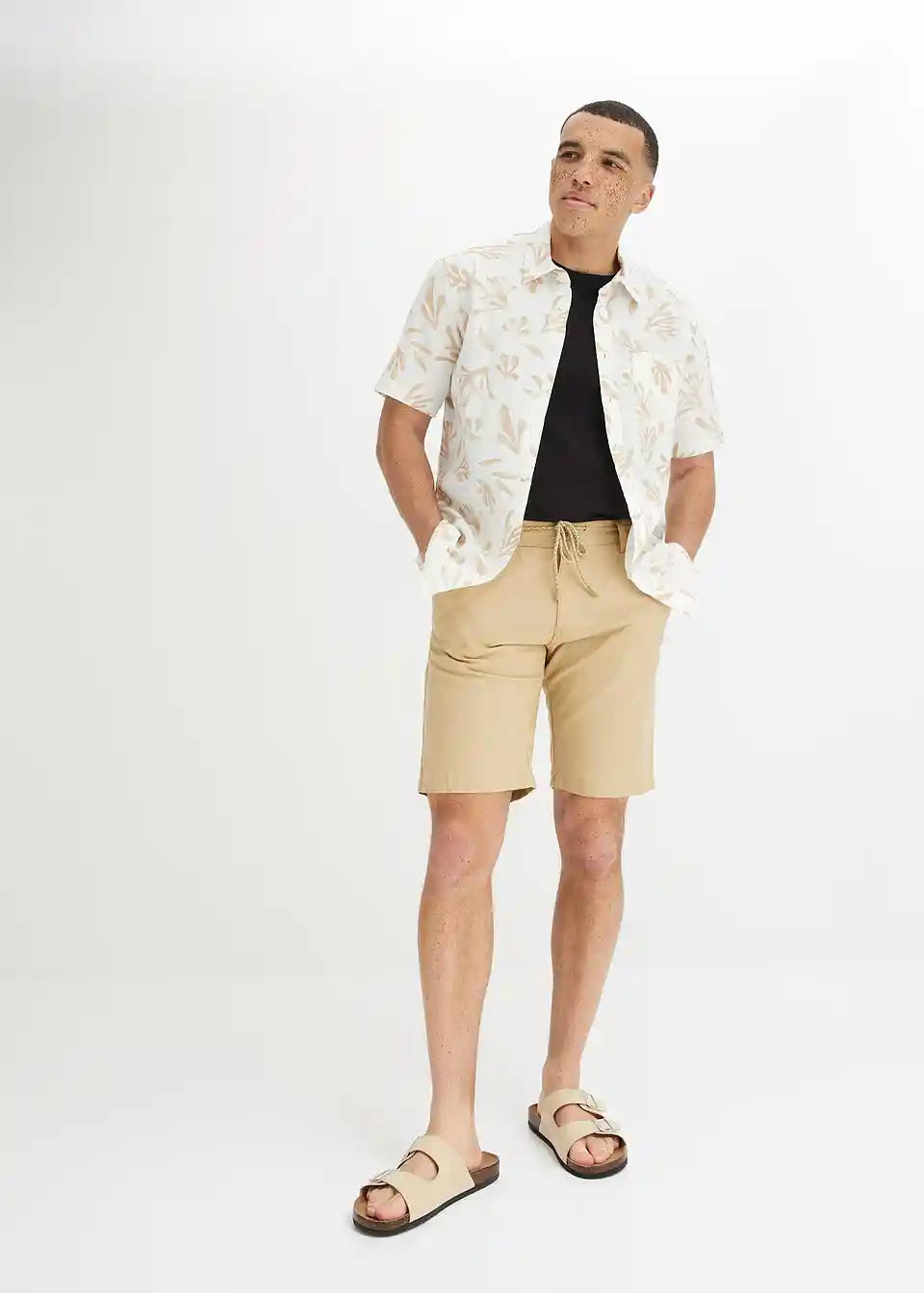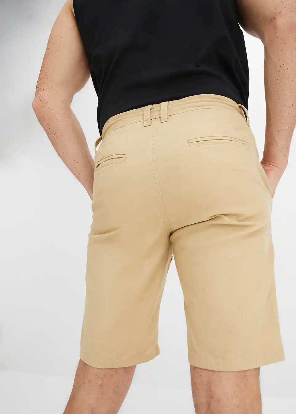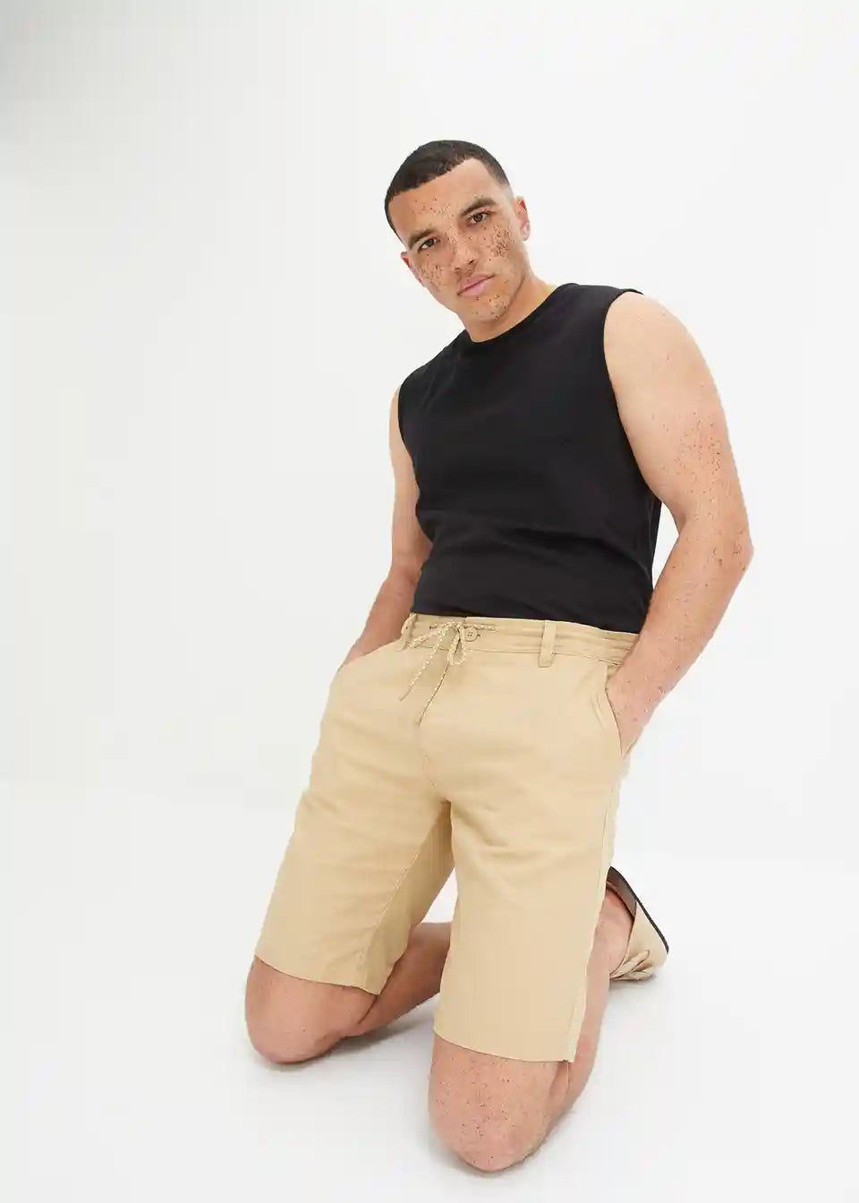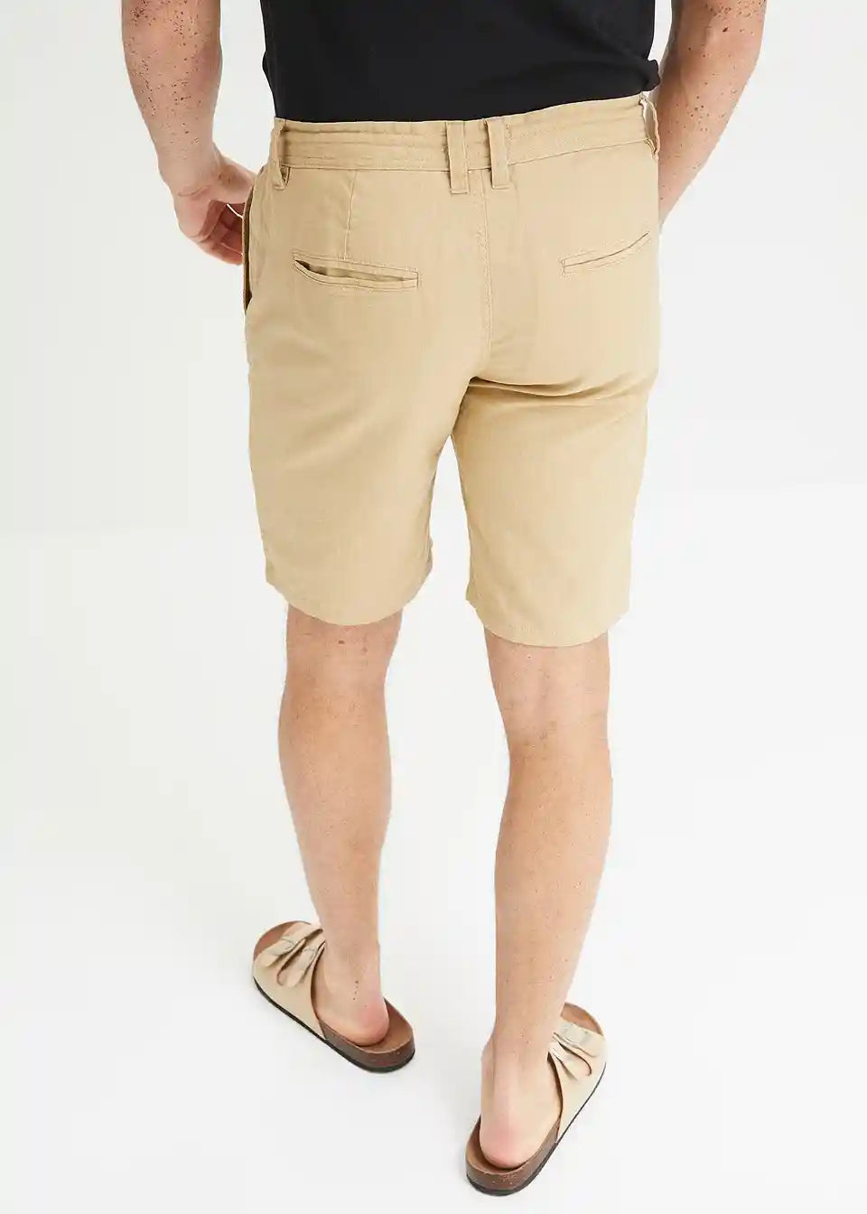 Chino-Bermuda mit Leinenanteil und Bindeband, Regular Fit