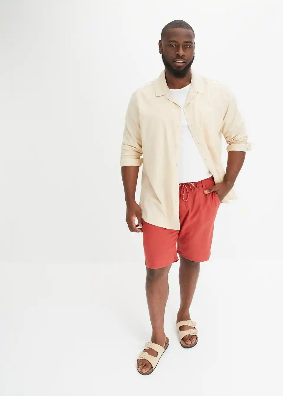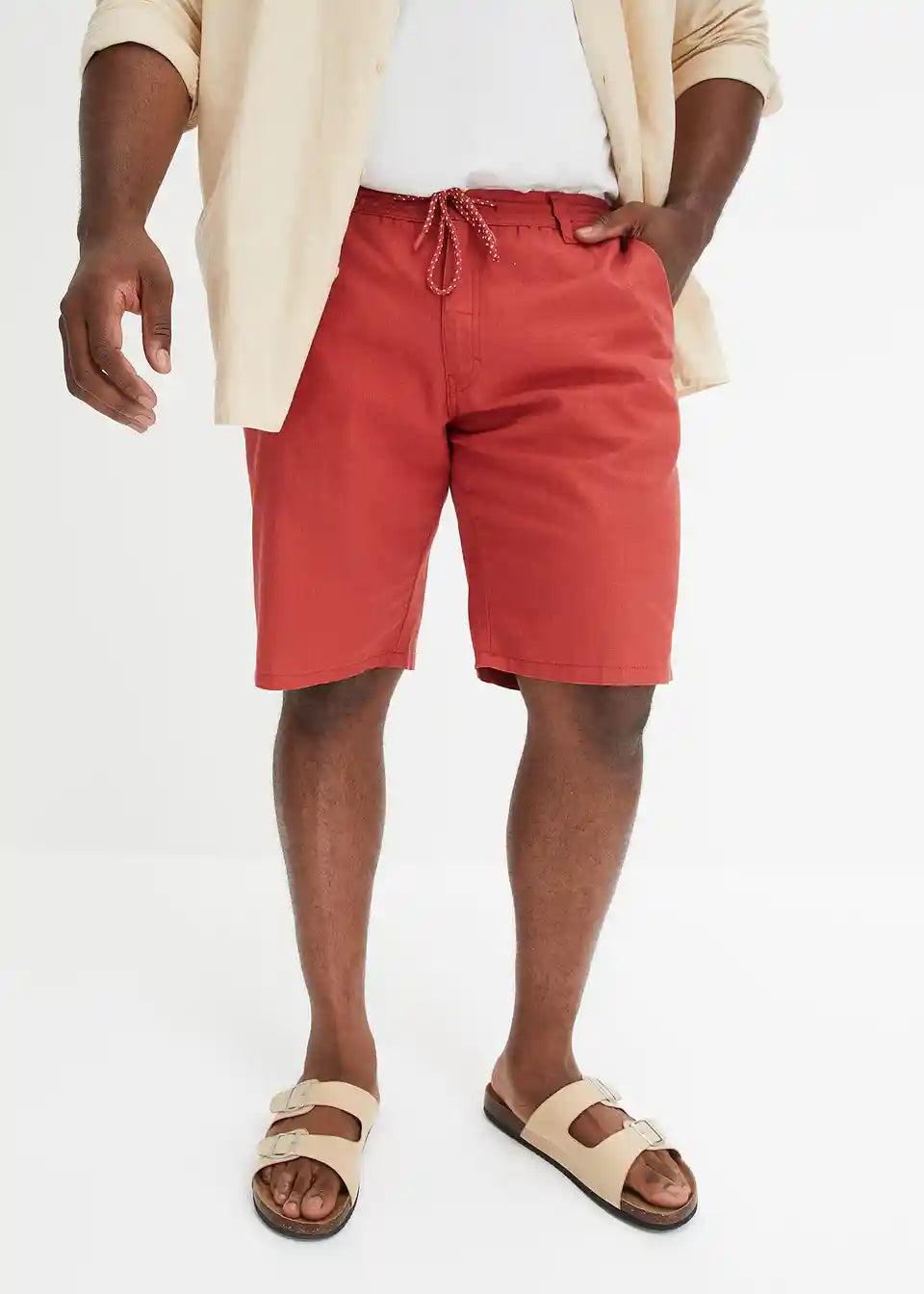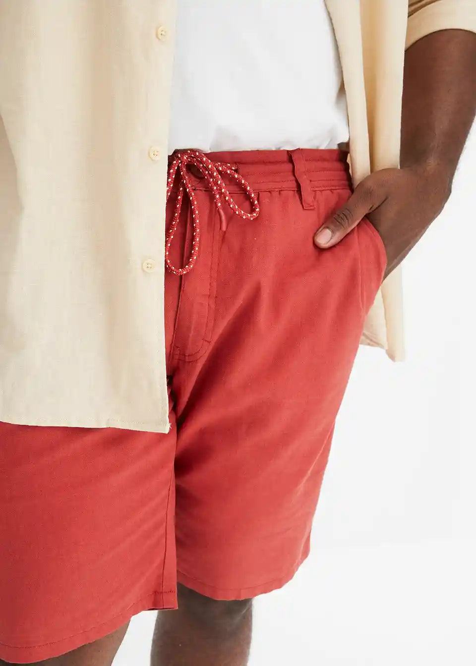 Chino-Bermuda mit Leinenanteil und Bindeband, Regular Fit