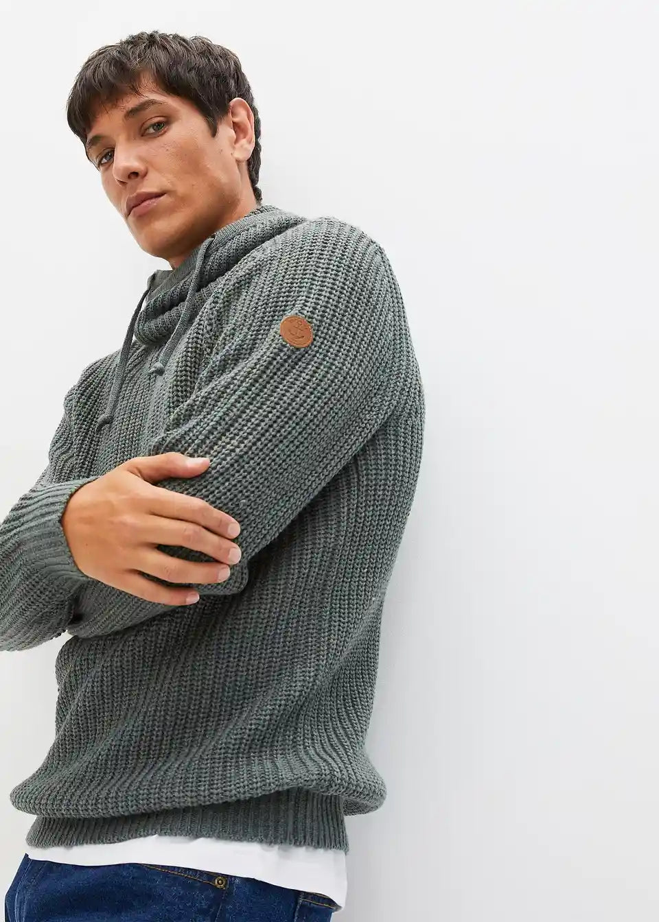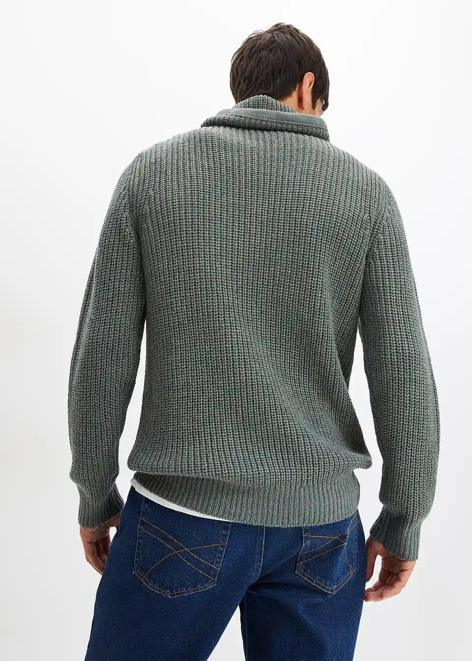 Pullover mit Schalkragen und schönen Lederimitat-Details
