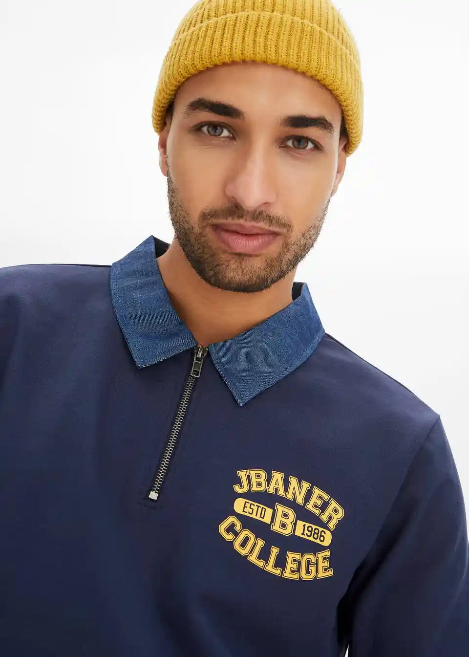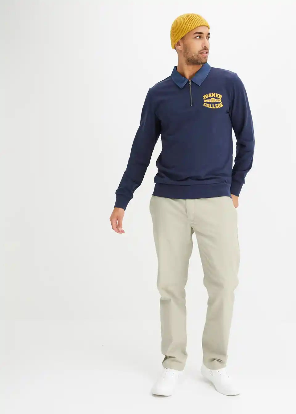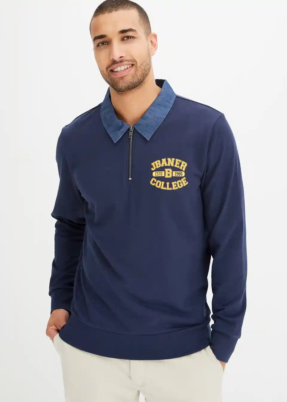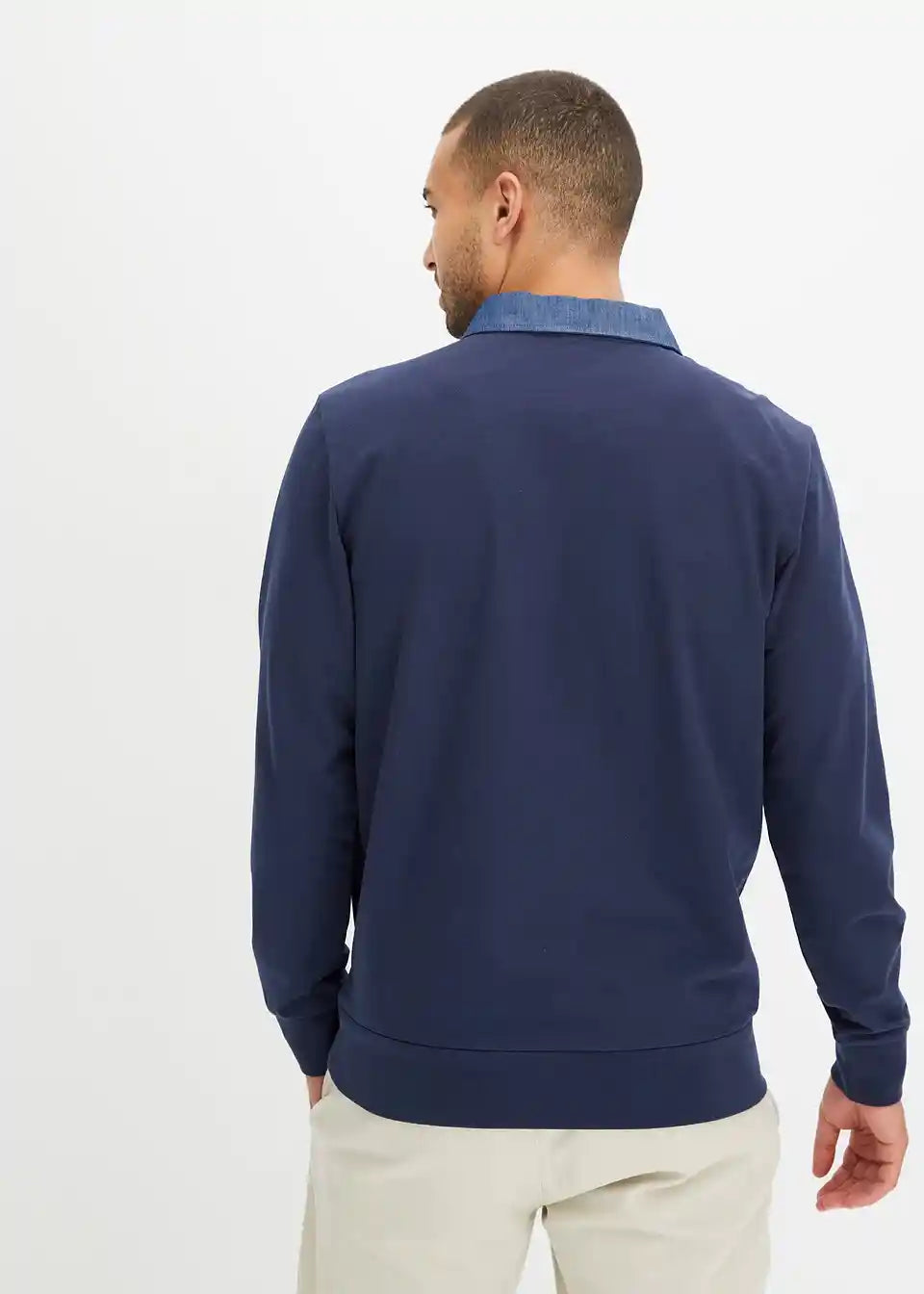 Modisches Sweatshirt mit Denimkragen, innen weich angeraut