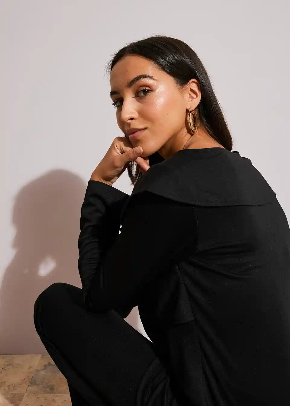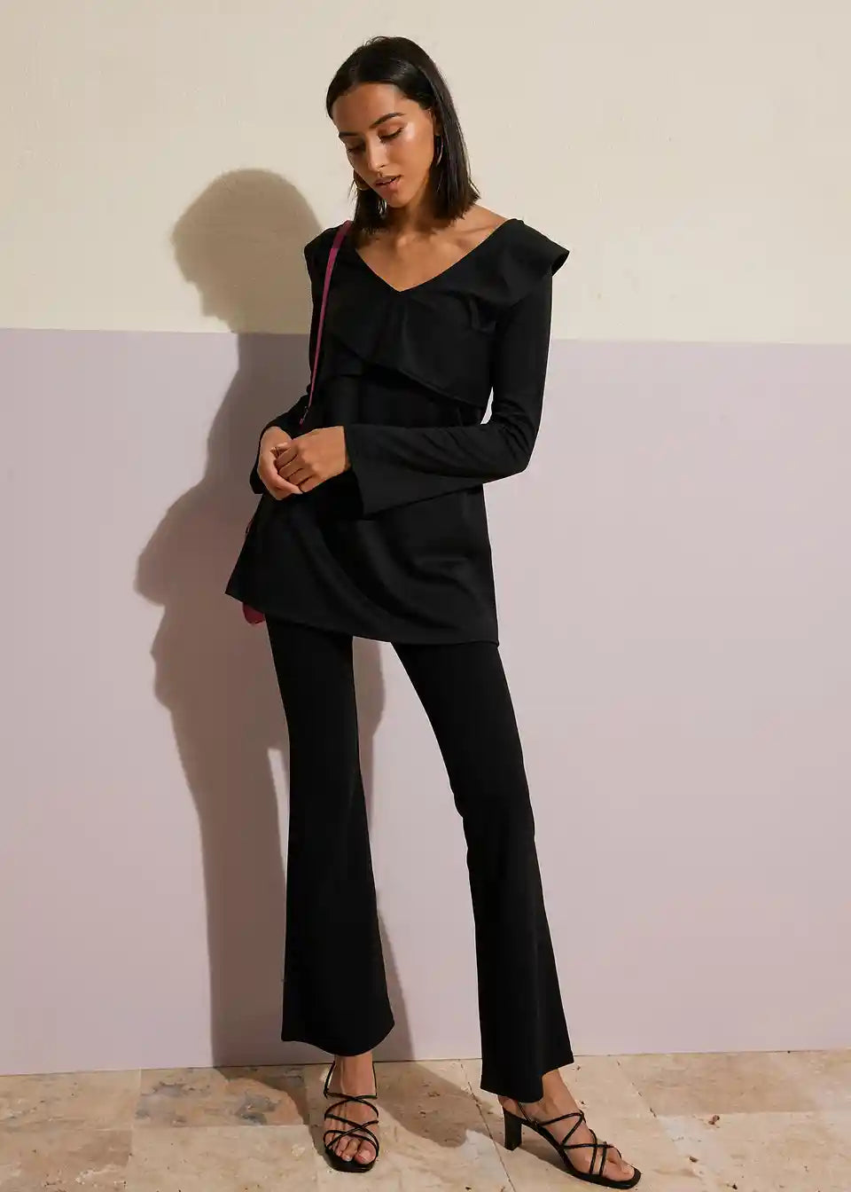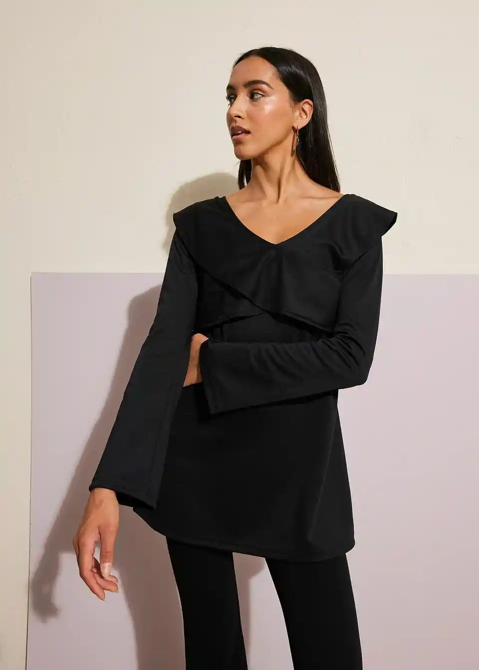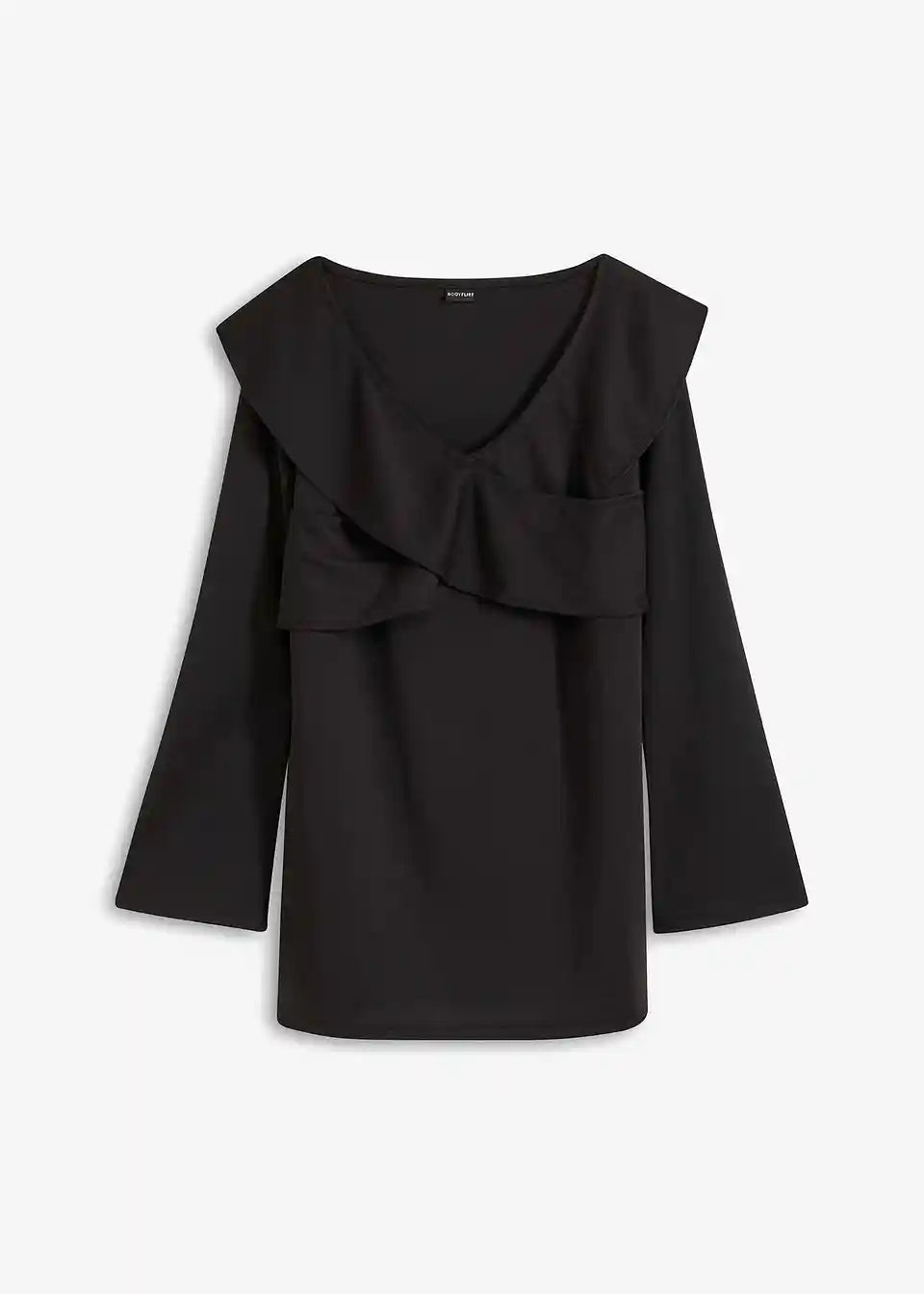 Langarmshirt mit weitem V-Ausschnitt und Trompetenärmel