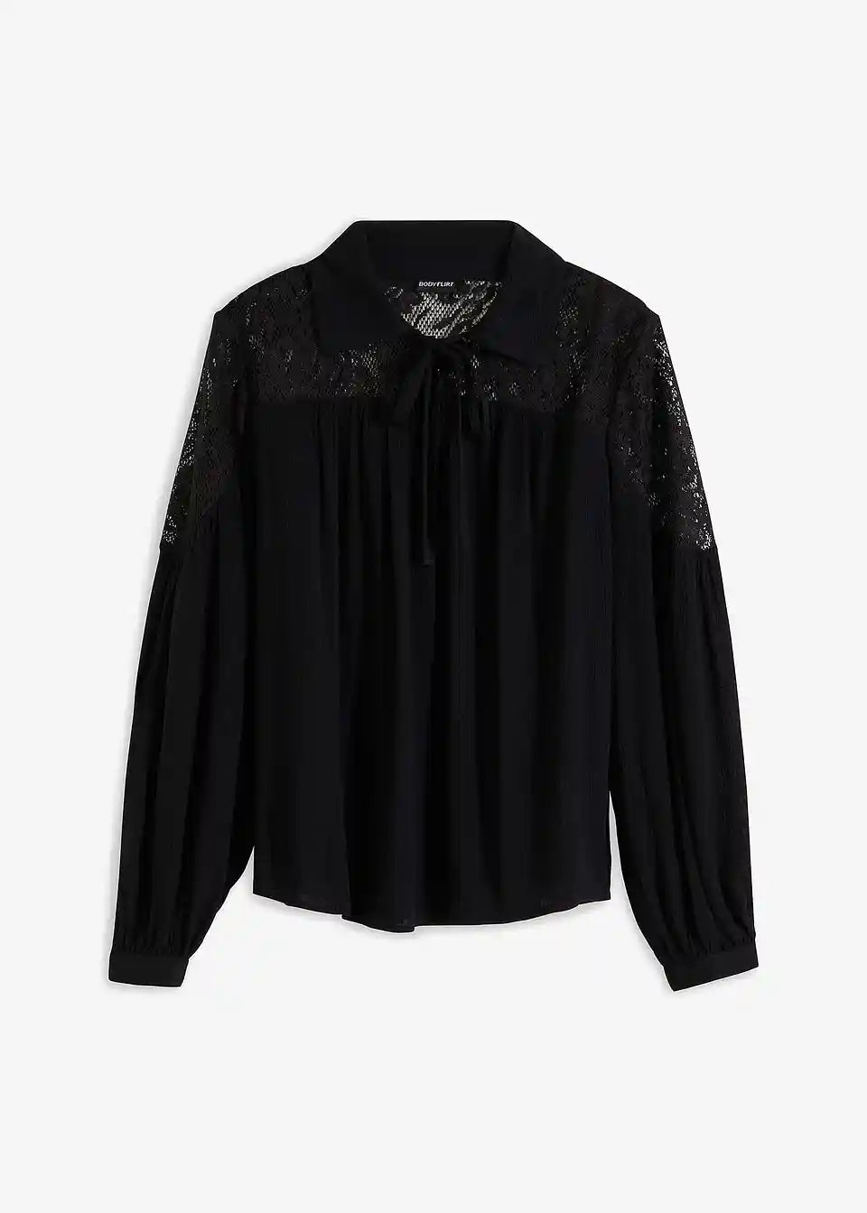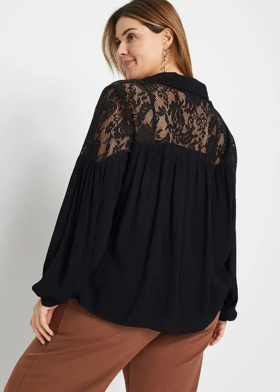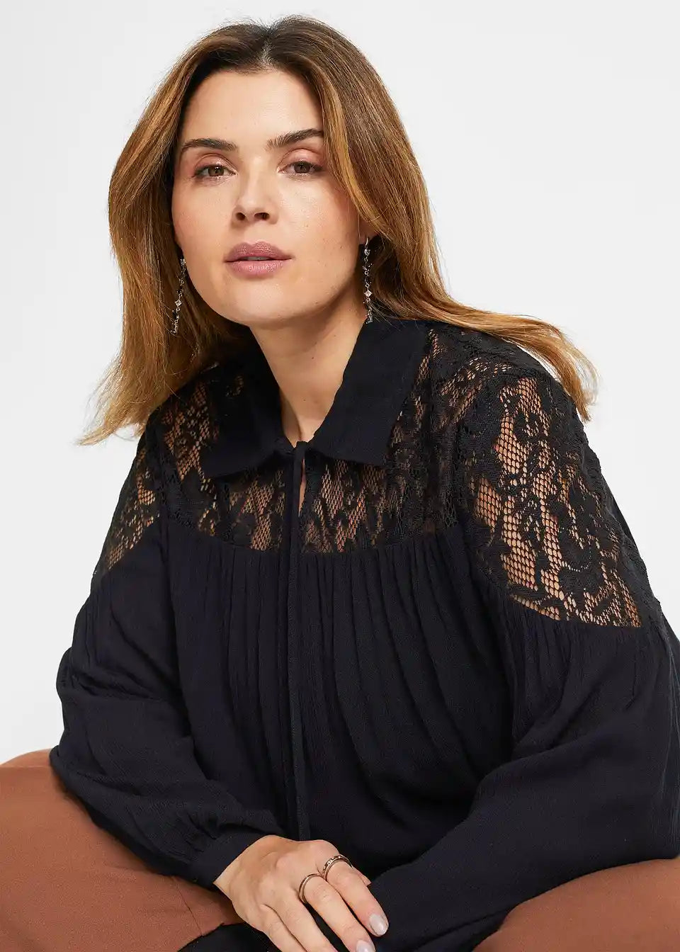 Moderne Bluse mit hochwertiger Spitze und Kragen