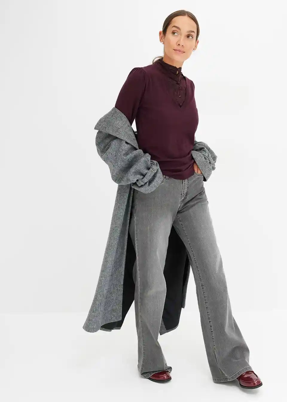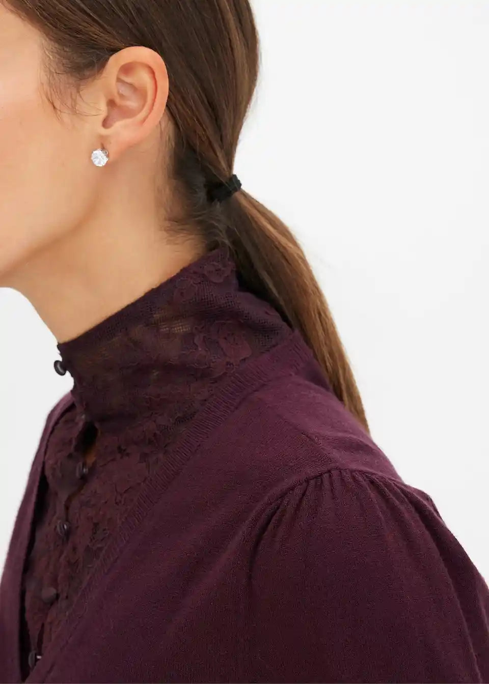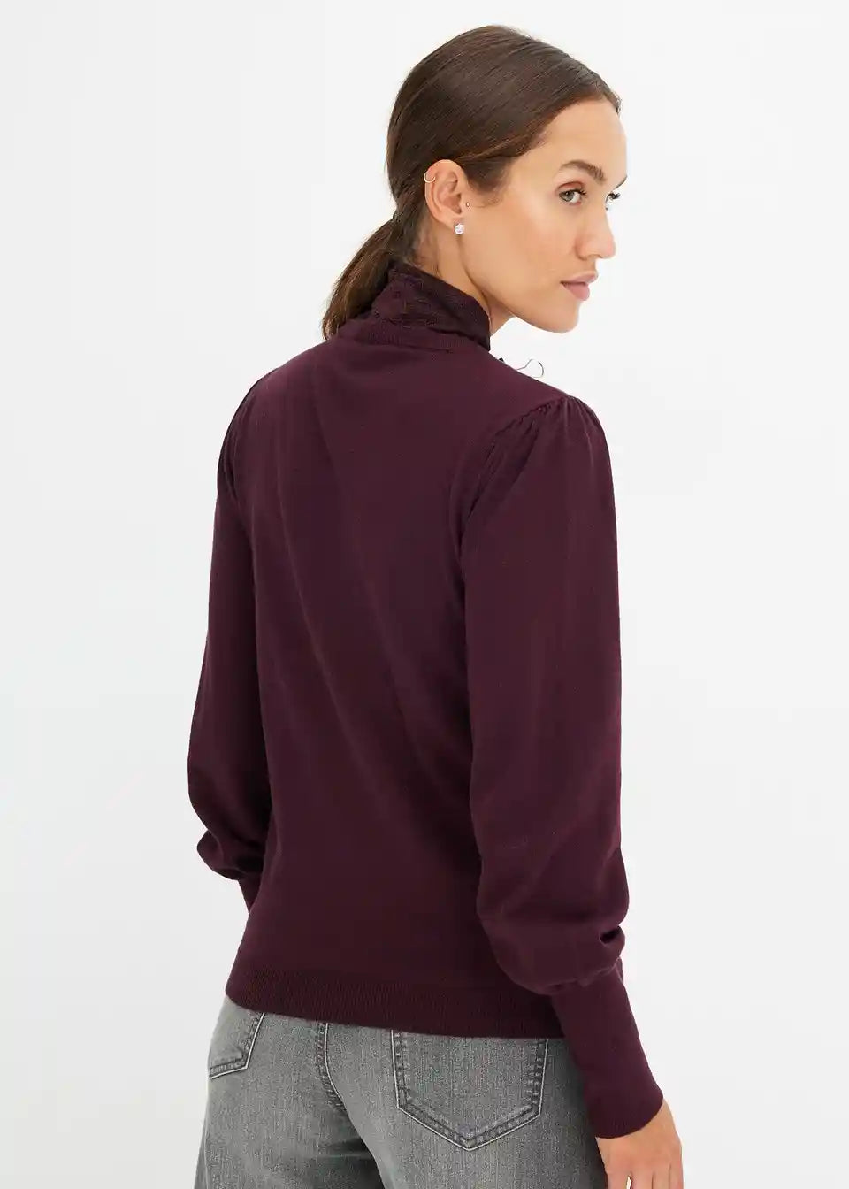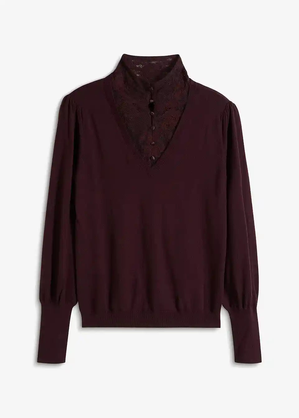 femininer Pullover mit Spitze am Kragen und Ausschnitt