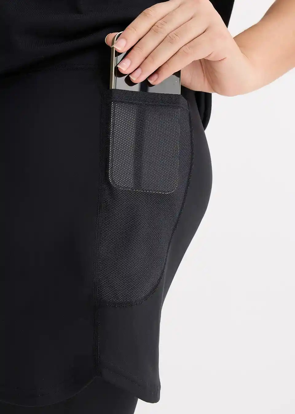 Sport-Leggings mit Shorts und Handytasche aus Mesh