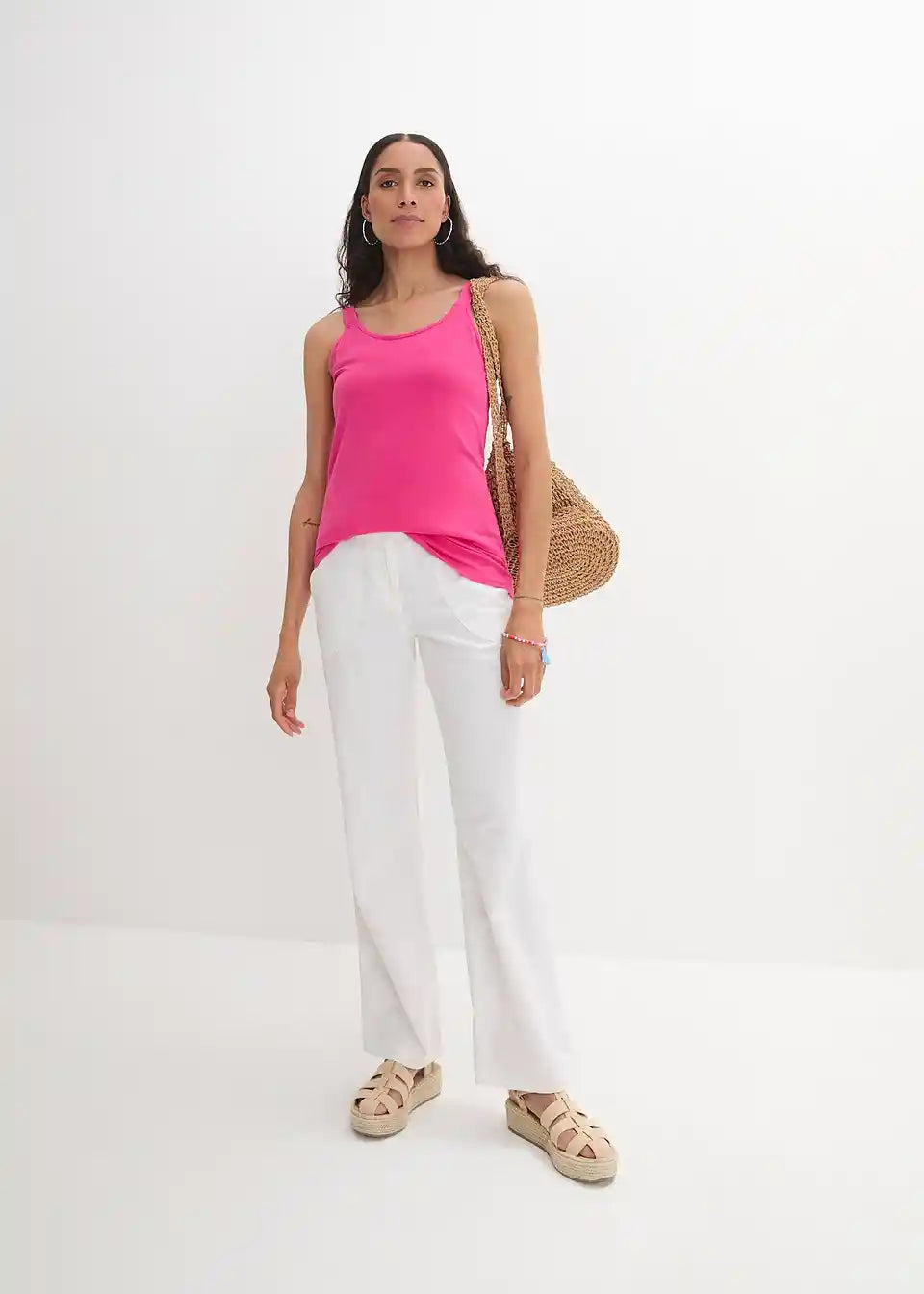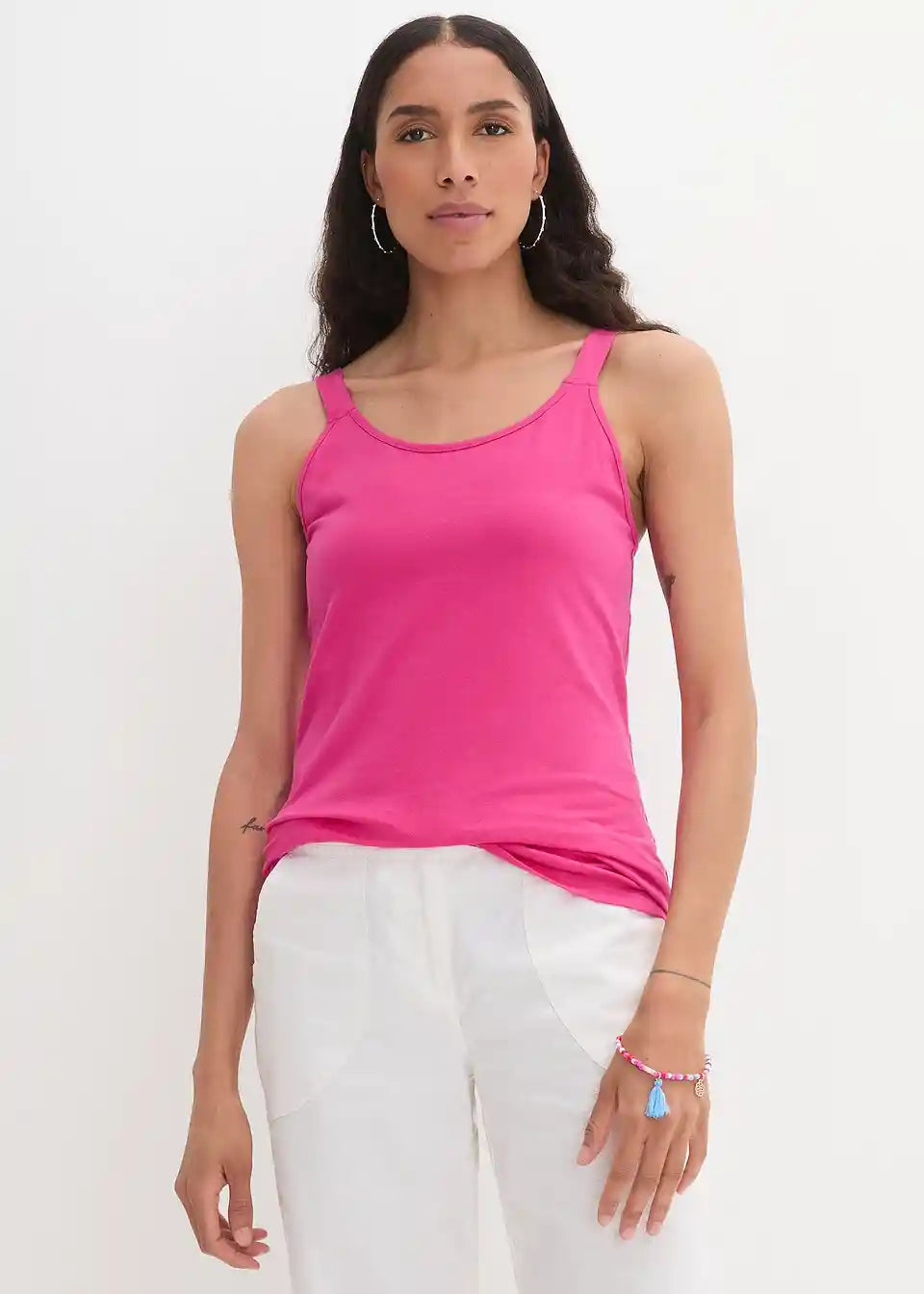 Basic-Longtop mit breiten verstellbaren Trägern aus Baumwolle im 2er Pack
