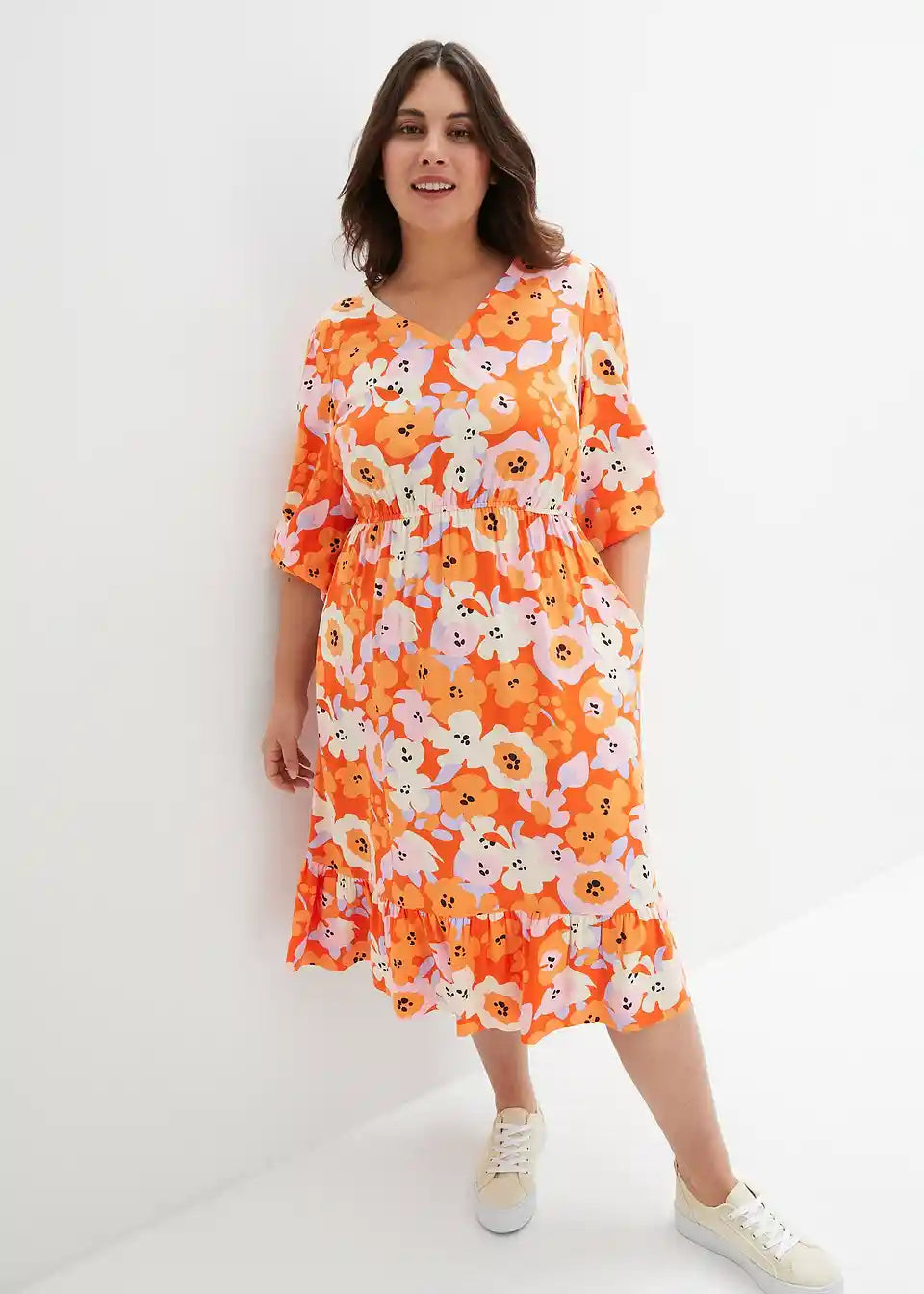 Viskose- Webkleid mit Taschen und V-Ausschnitt