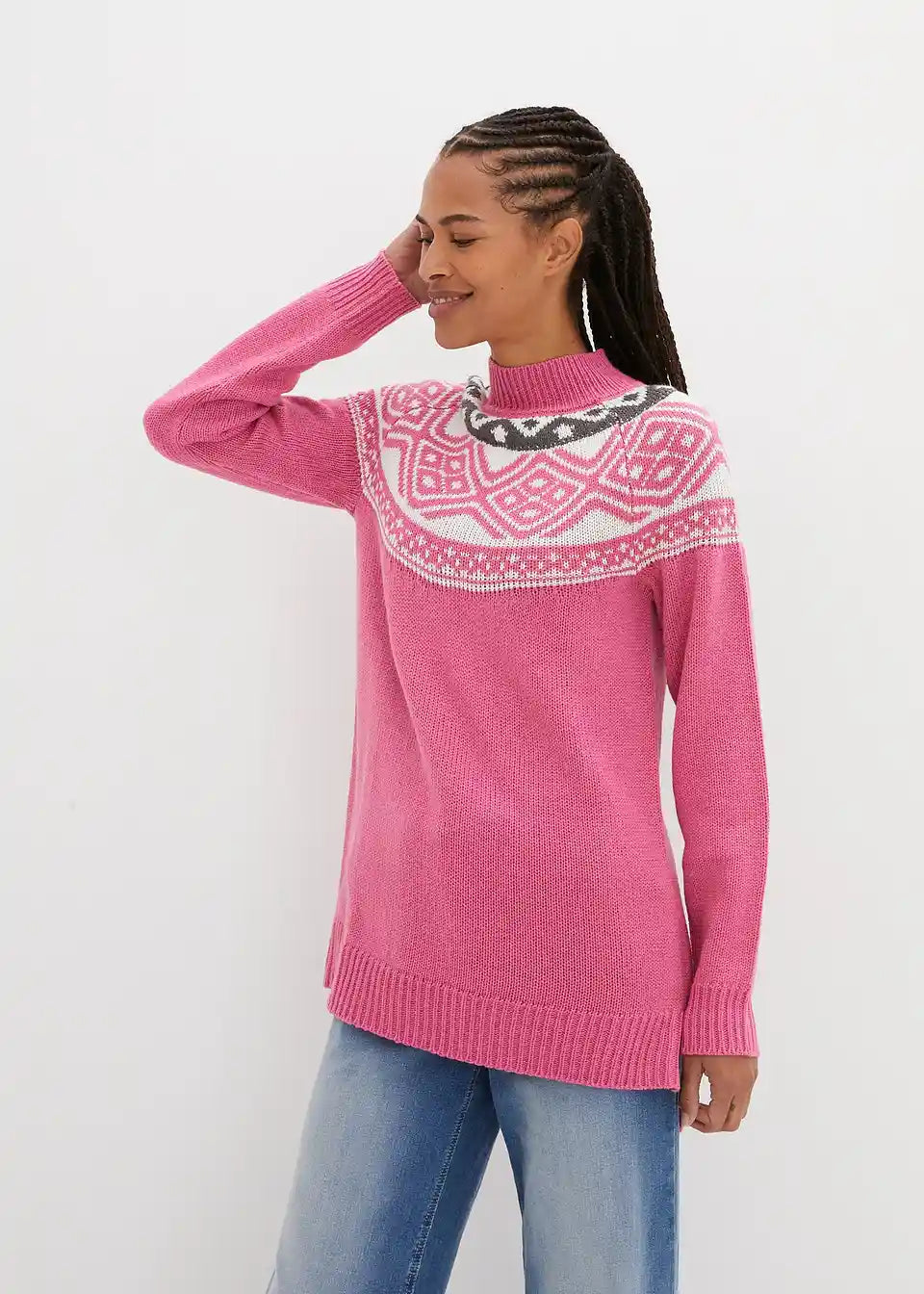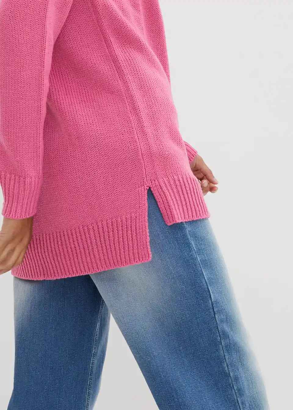 Winterlicher Stehkragen-Pullover mit Seitenschlitzen