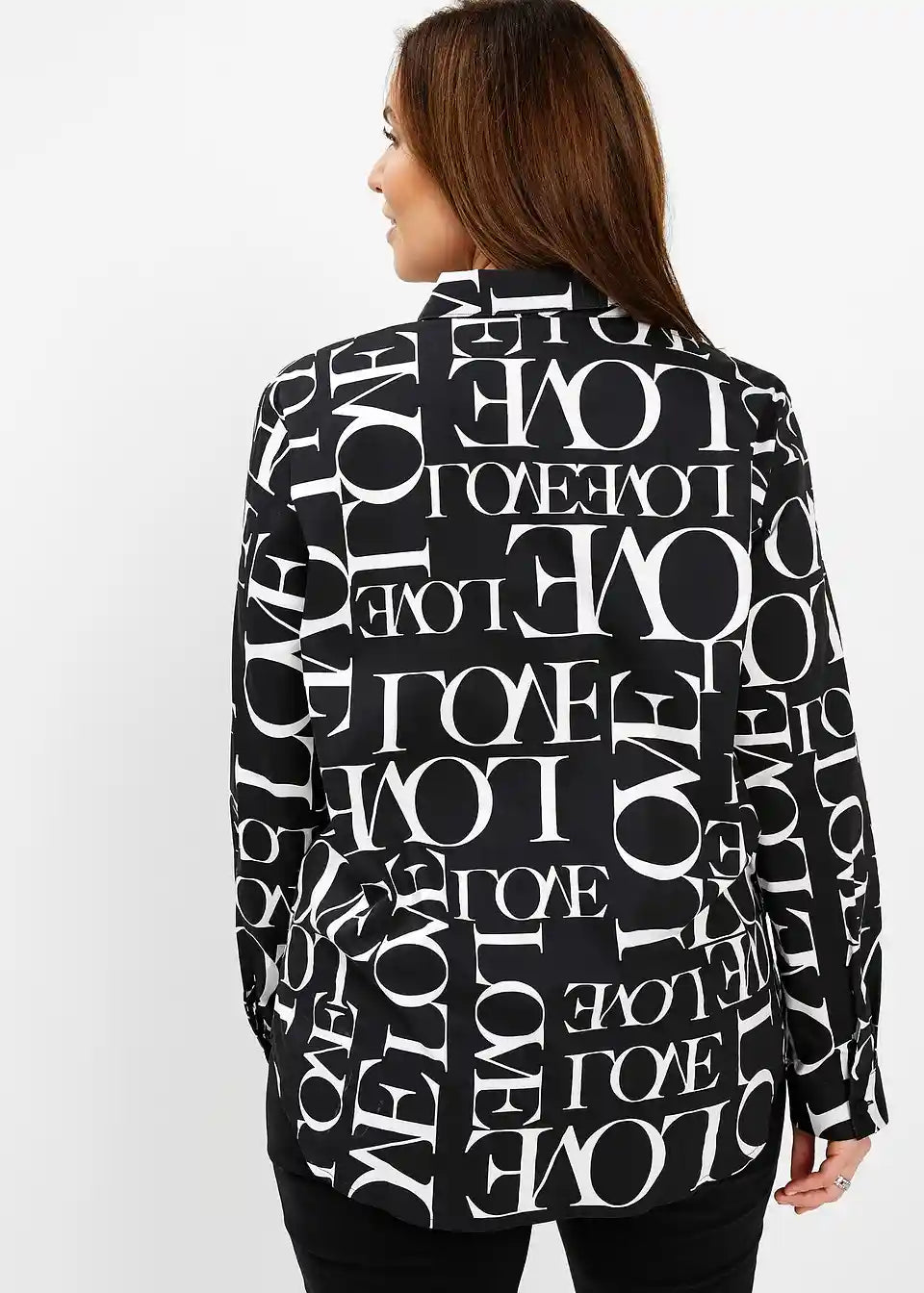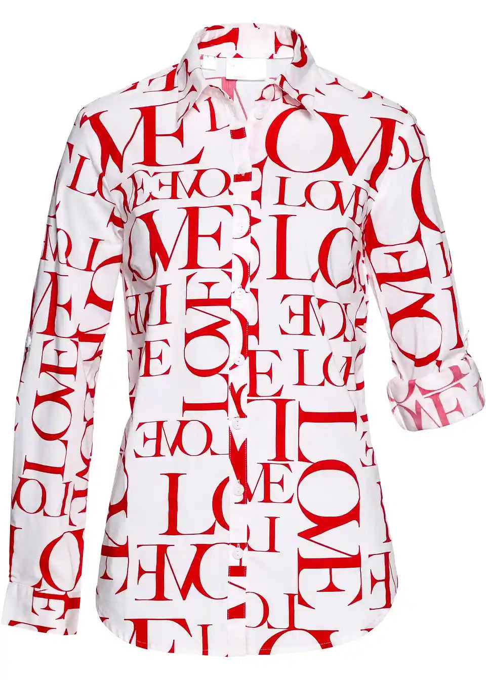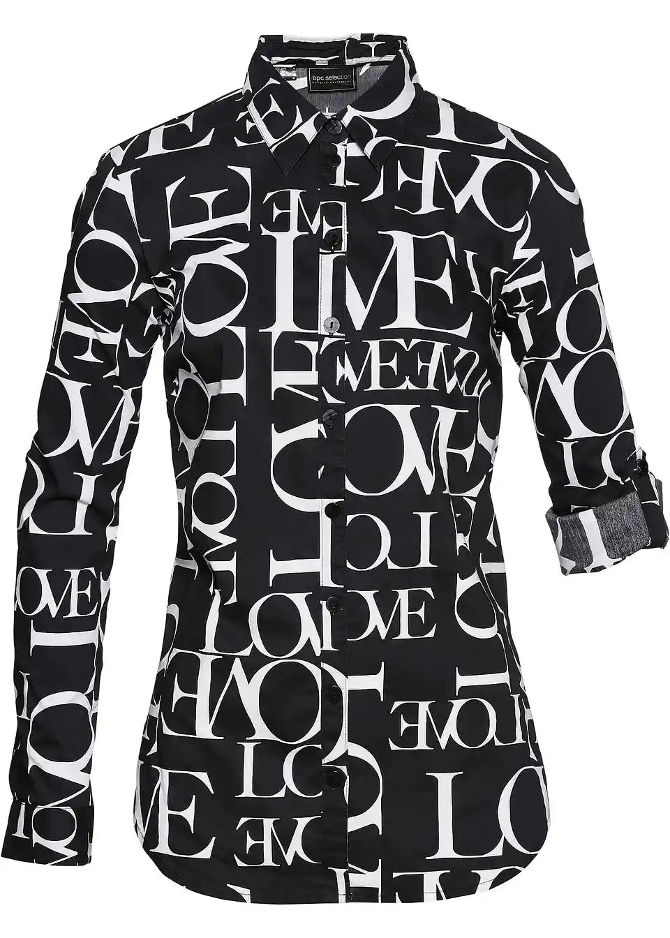 Diese charmante Bluse mit dem dekorativen Love-Druck schmeichelt aufgrund ihres Schnittes der Figur. In Kombination mit einer klassischen gepflegten Jeans von bpc Selection und modischen Pumps verleiht die Bluse ein modisches Aussehen.