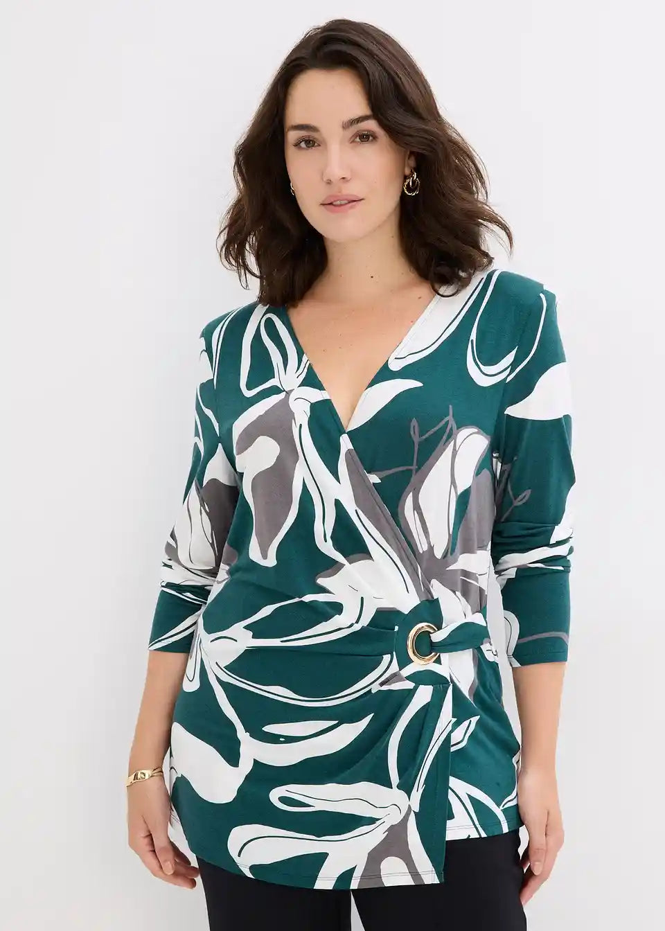 Shirt mit trendigen Schulterpolstern und dekorativem Ringelement, das Deine Silhouette betont