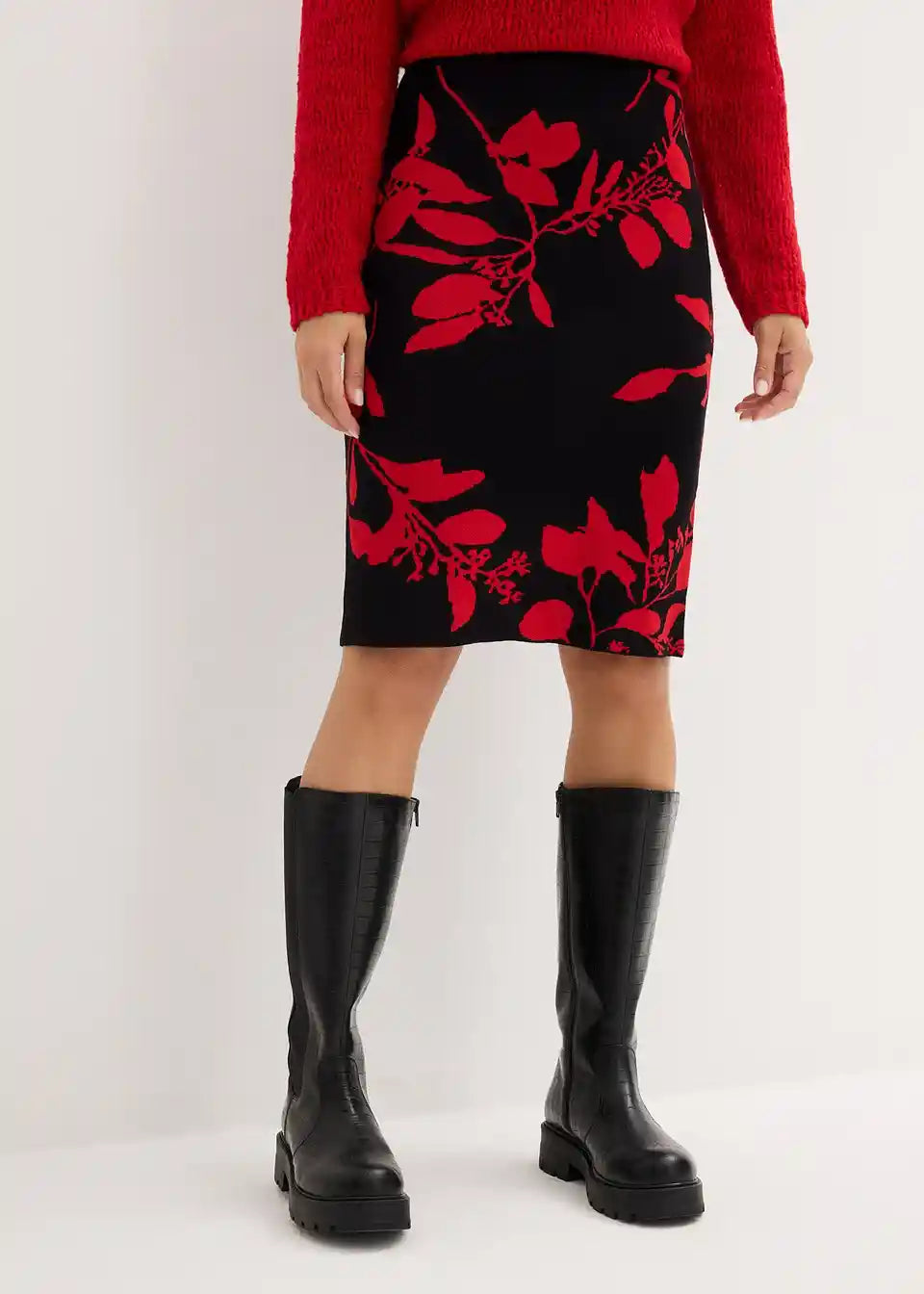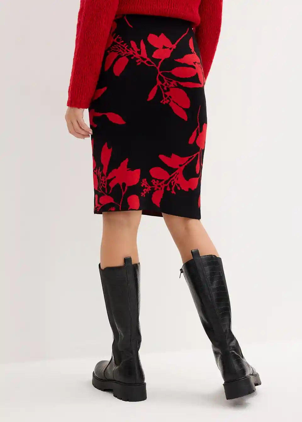 Klassischer Jacquard Strickrock mit Blütendruck