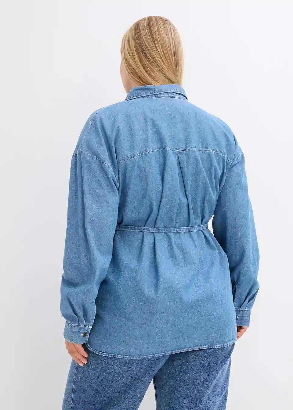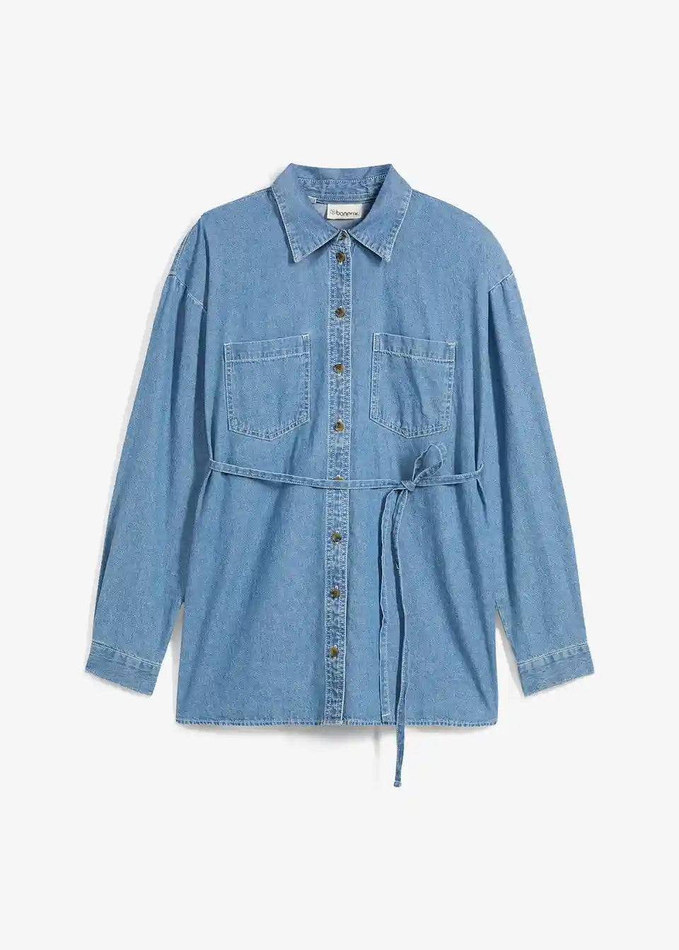 Mit lockerer Passform aus leichtem Baumwoll-Denim mit Kragen, Knopfleiste und einer Rückenpasse mit Kellerfalte. Lange Ärmel mit Manschette und Knopf am Ärmelschlitz. Aufgesetzte Brusttaschen und ein schmaler abnehmbarer Bindegürtel unter der Brust. Leicht abgerundeter Saum.