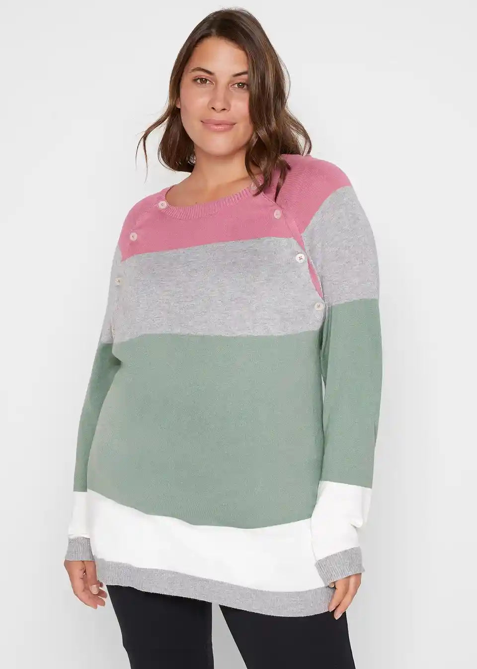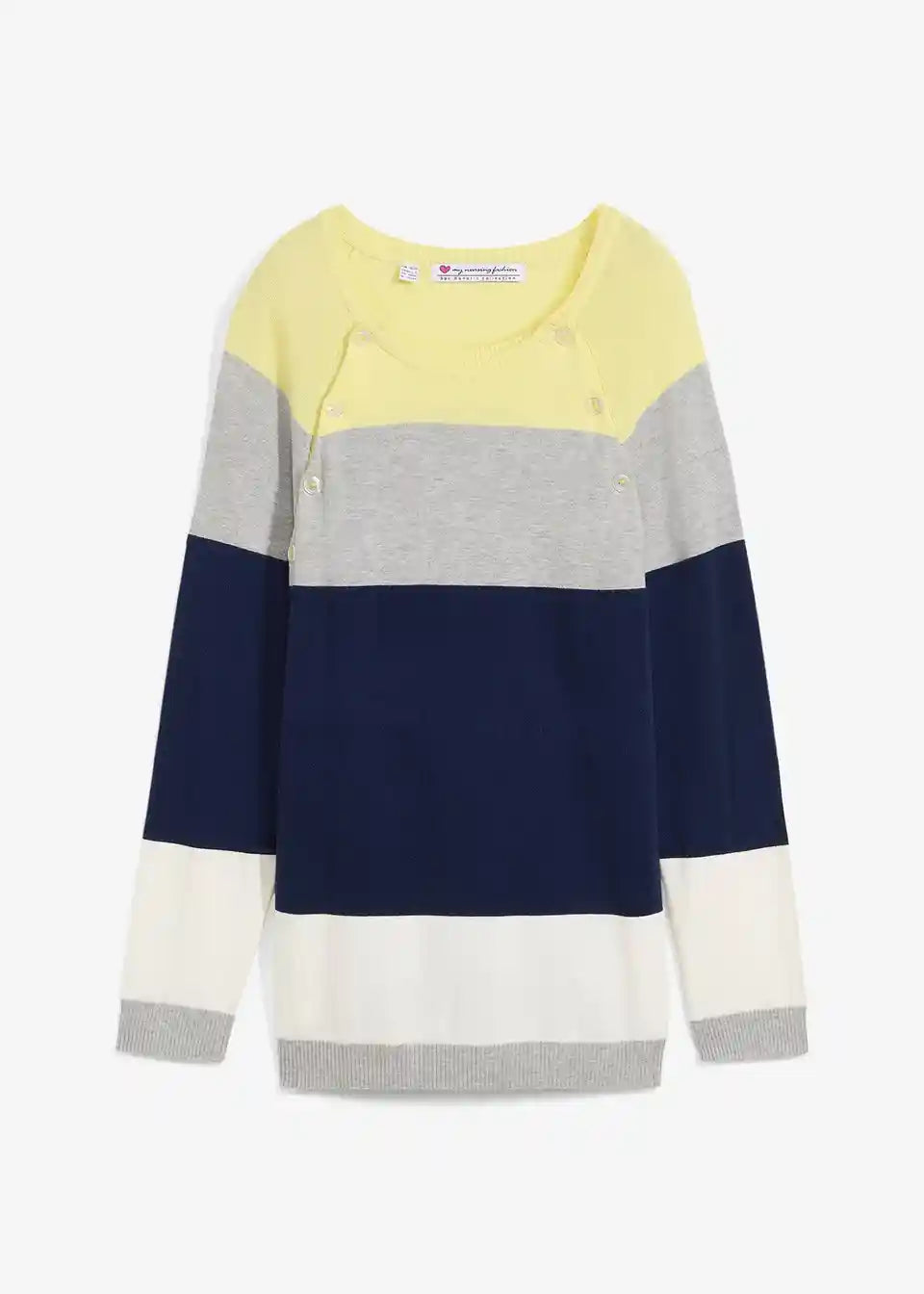 Gestreifter Umstandspullover mit Druckknöpfen und Stilleinsatz