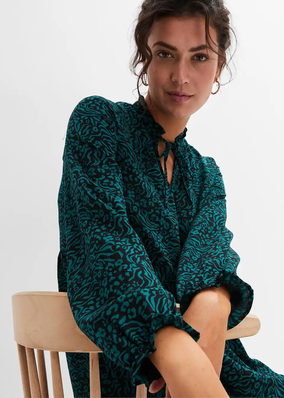 Auffallendes Crincle-Kleid mit schönem Druck.