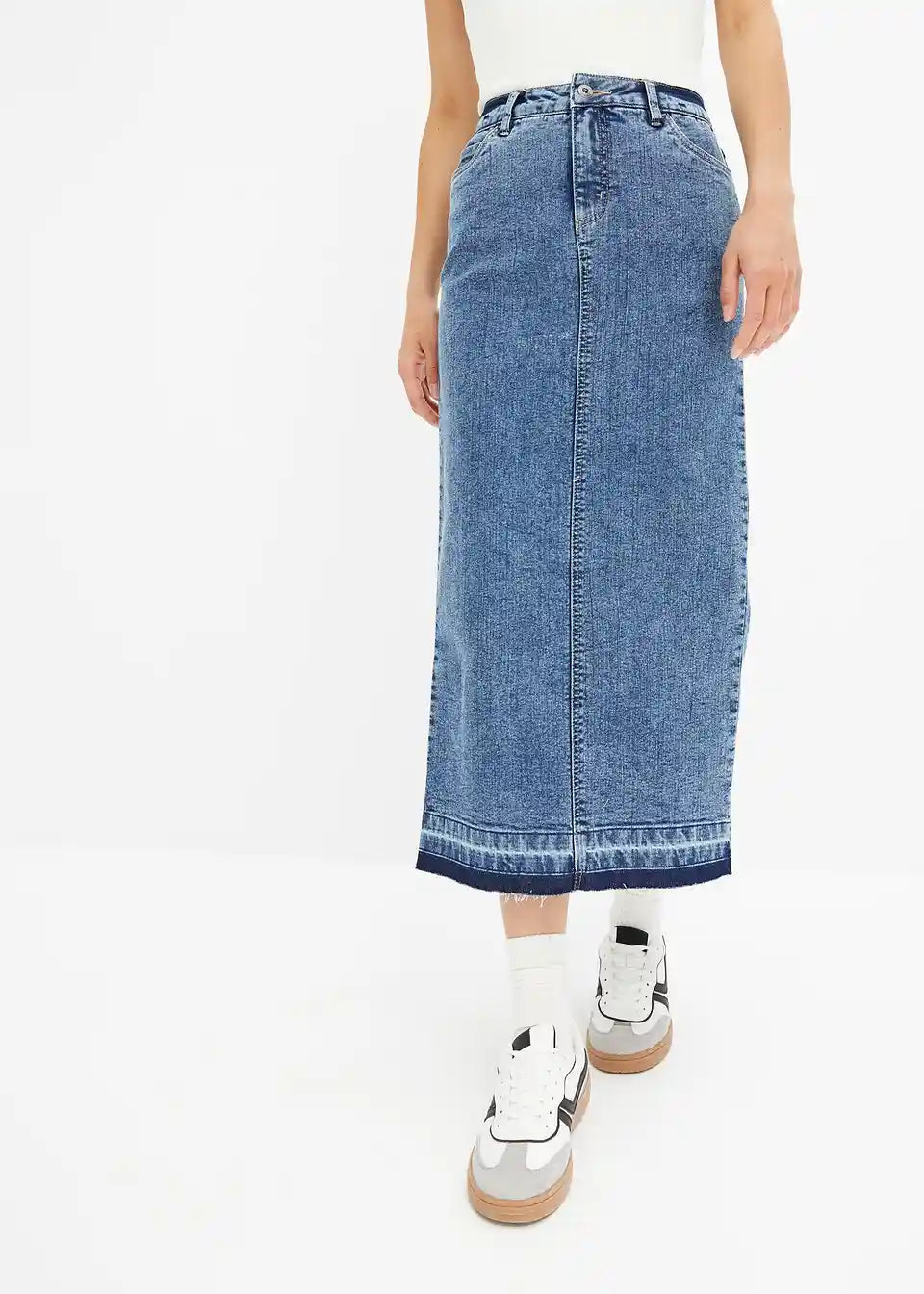 modischer Jeansrock mit ausgefranstem Saum