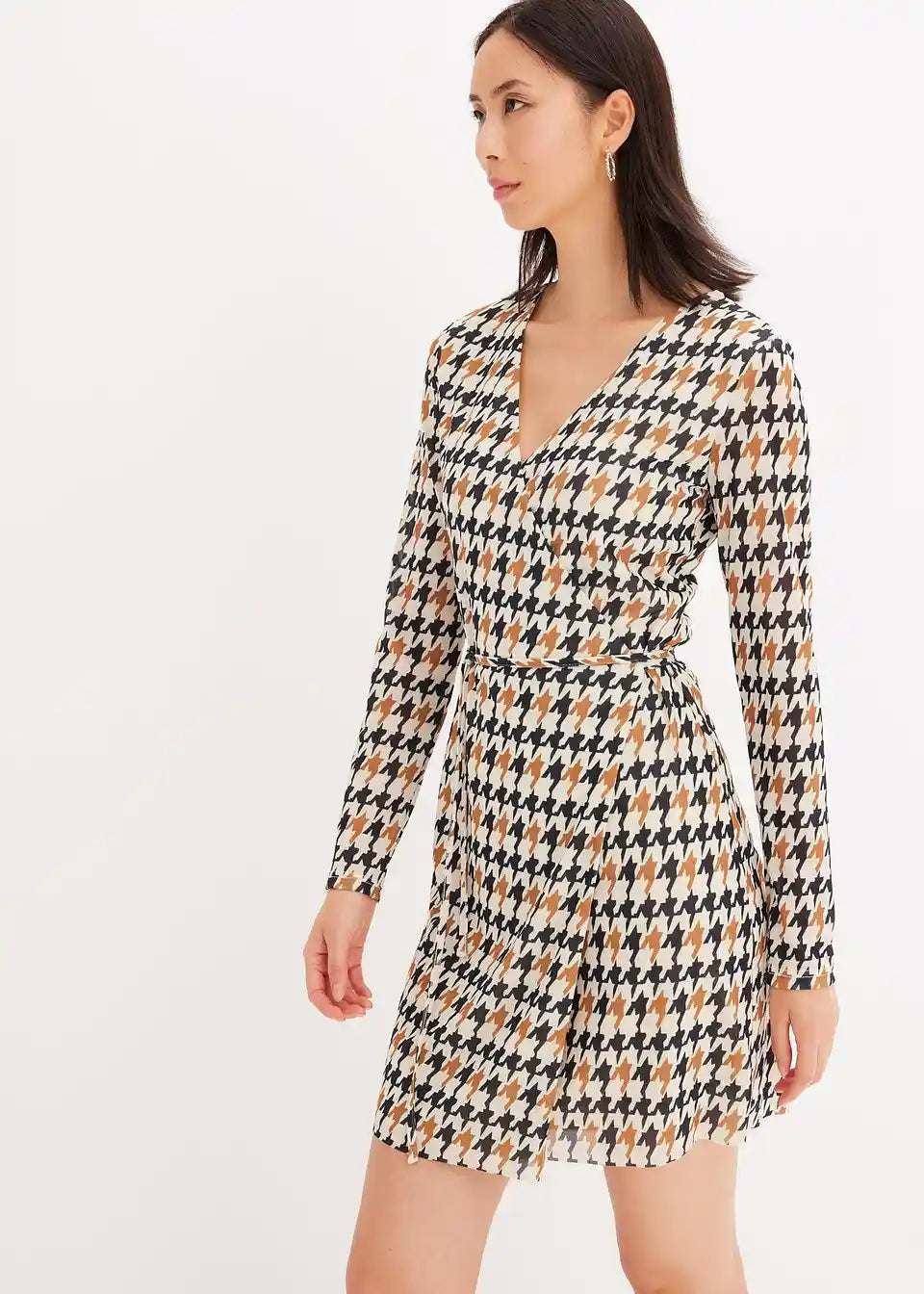 Mini Wickelkleid aus Mesh mit langen Ärmeln