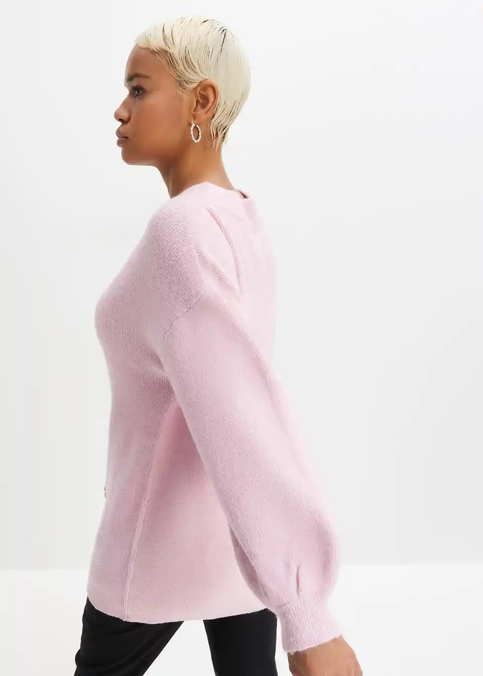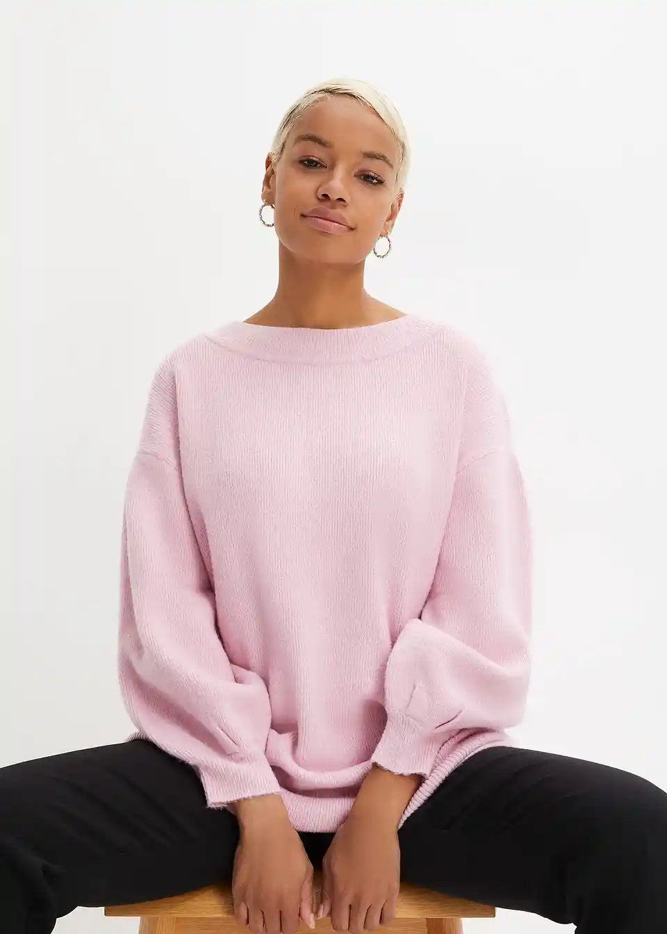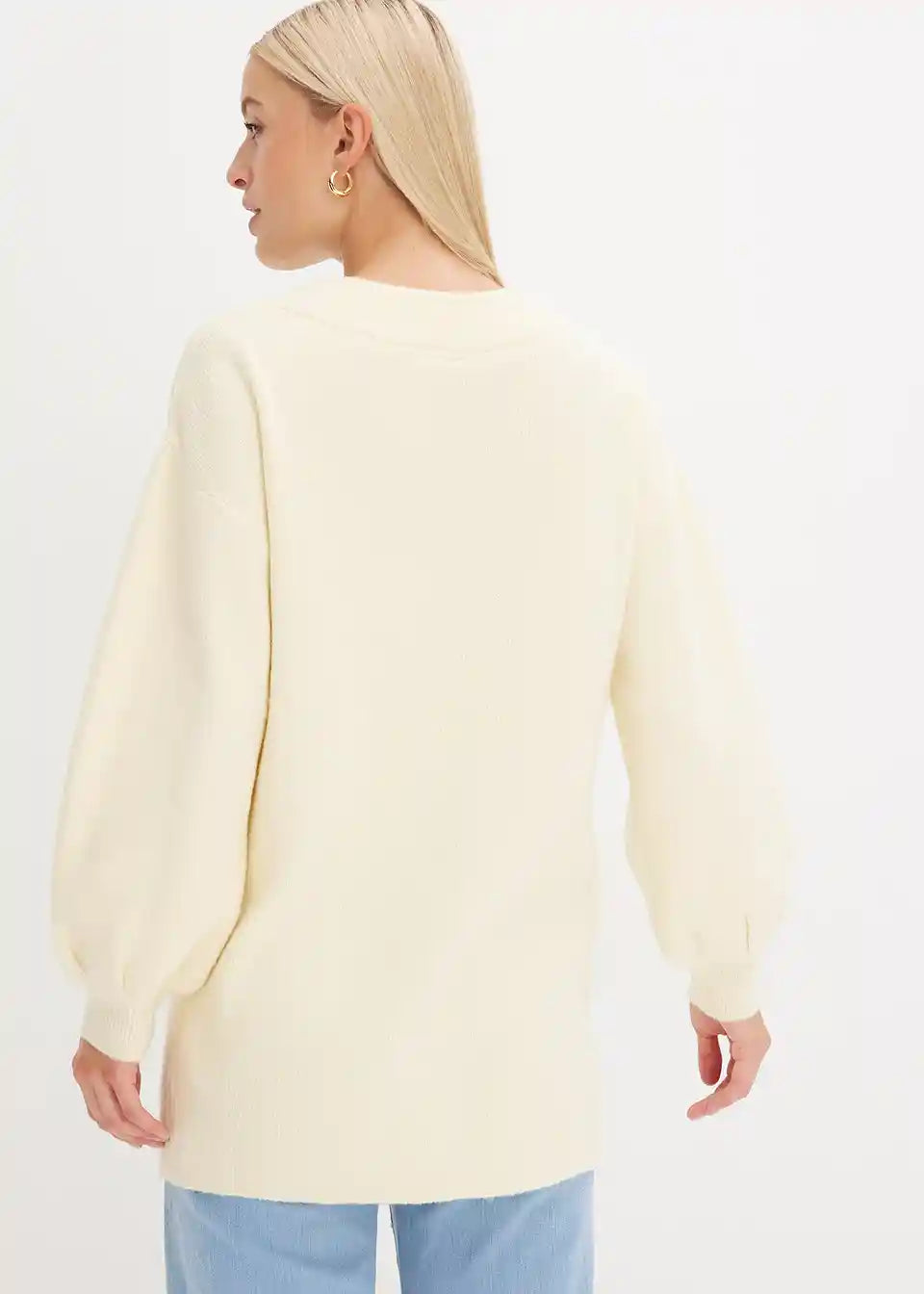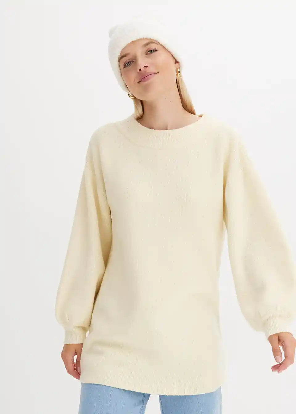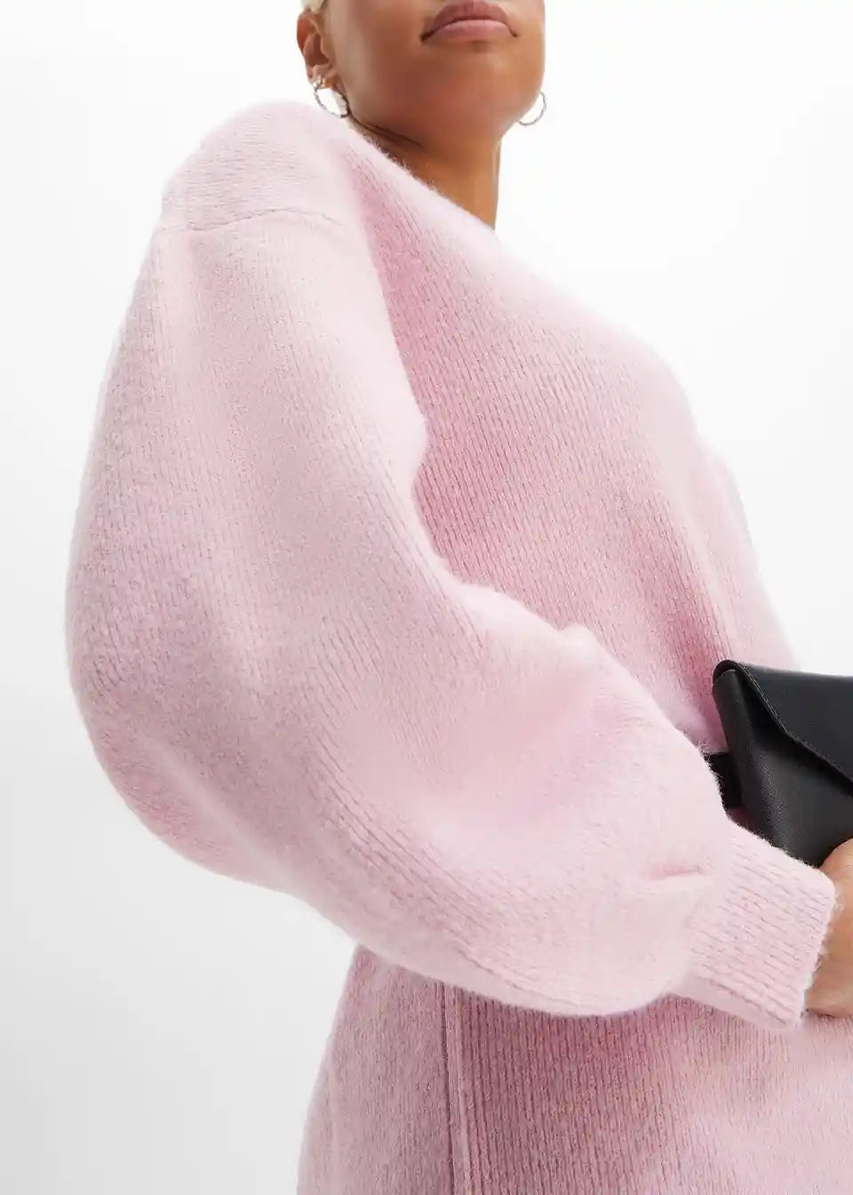 Hüftbedeckender Strickpullover mit trendigen Ballonärmeln
