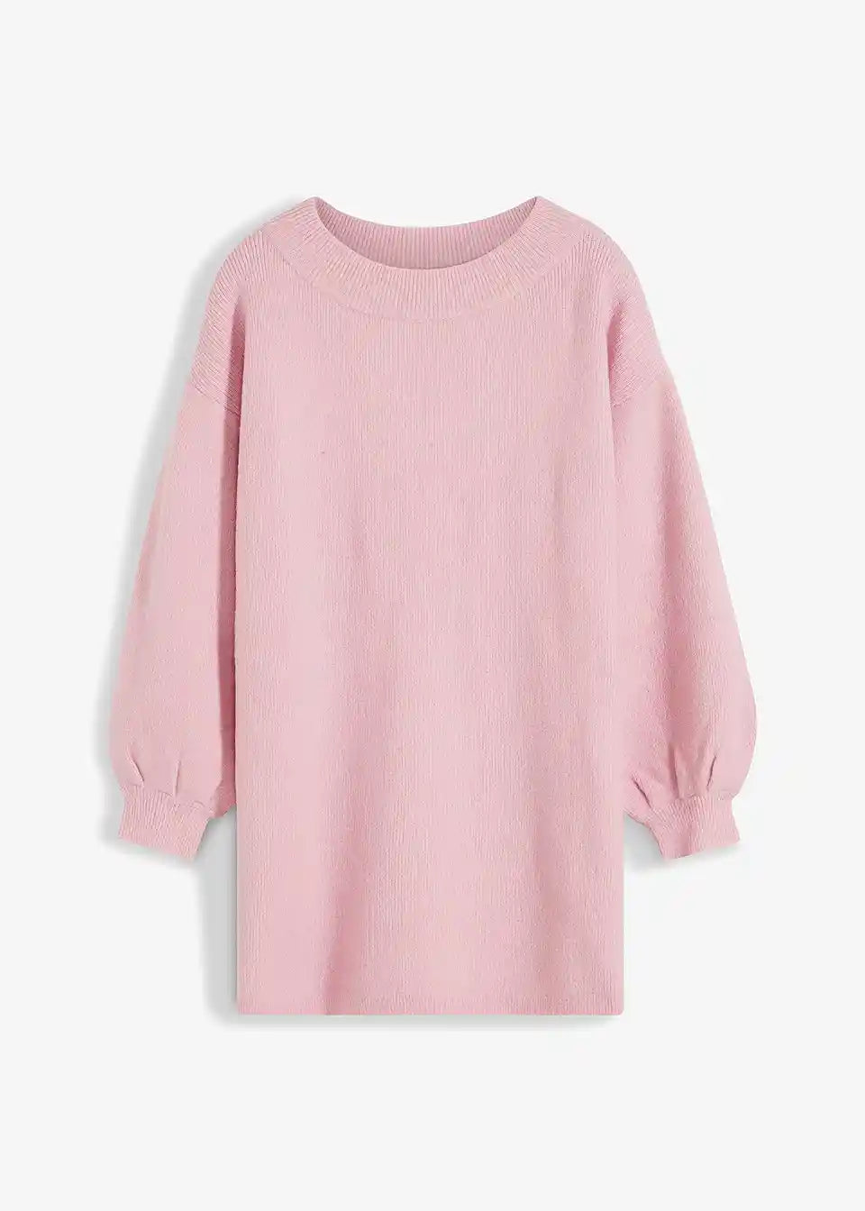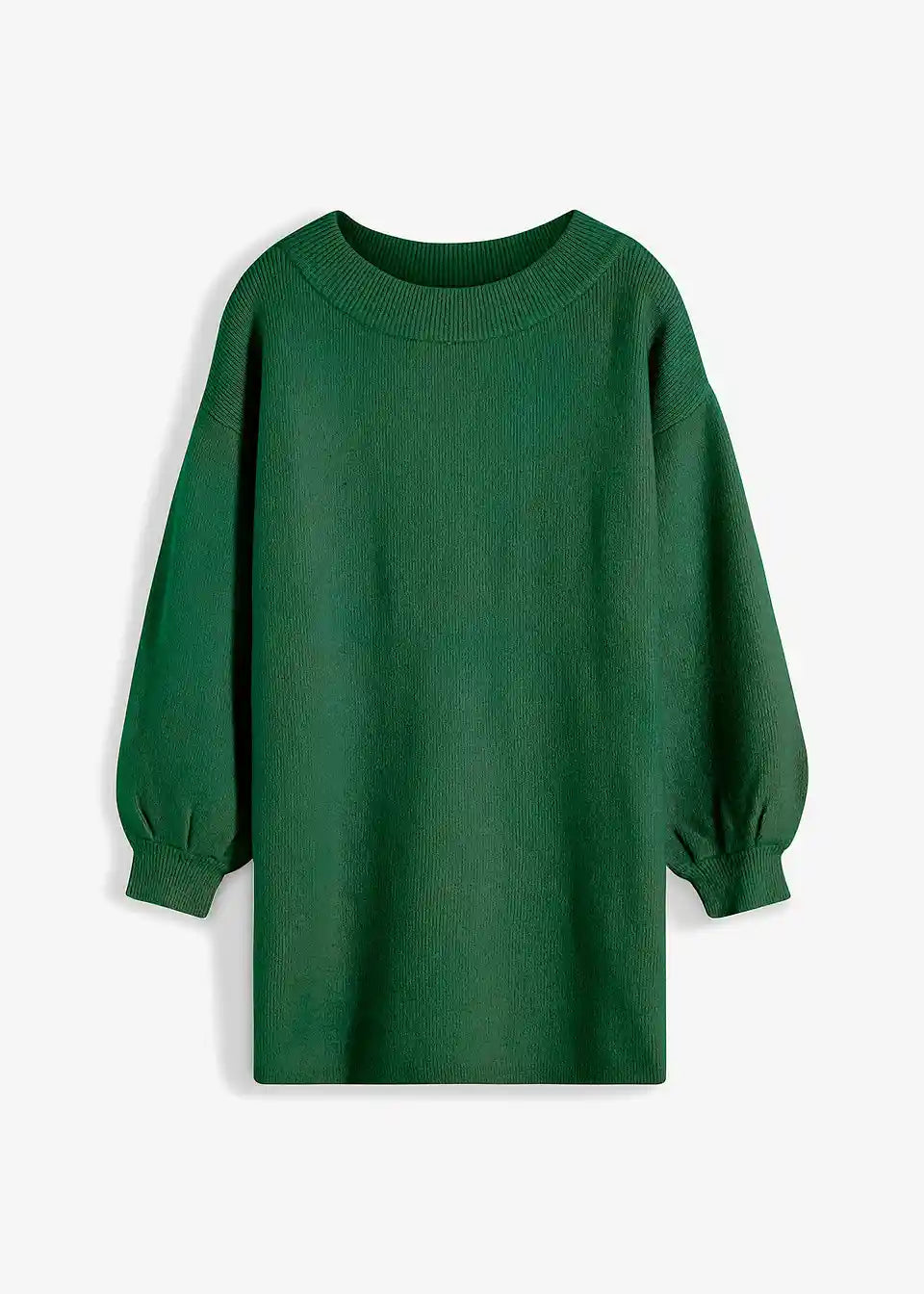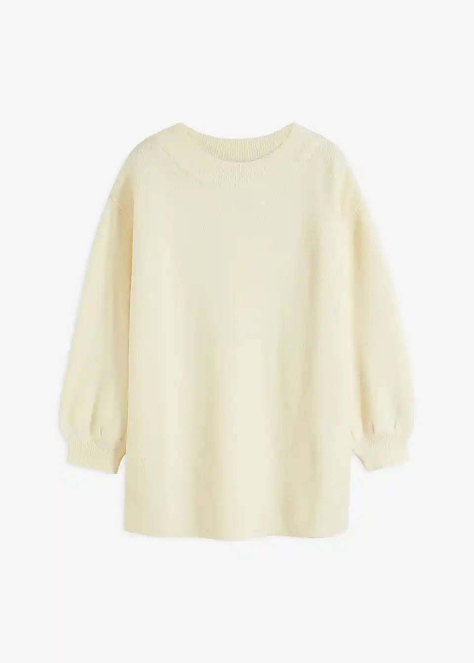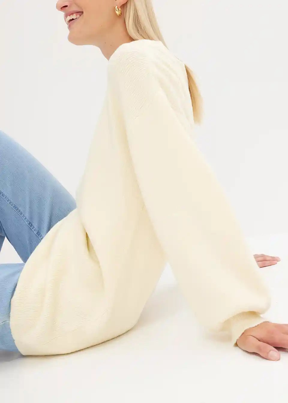 Hüftbedeckender Strickpullover mit trendigen Ballonärmeln