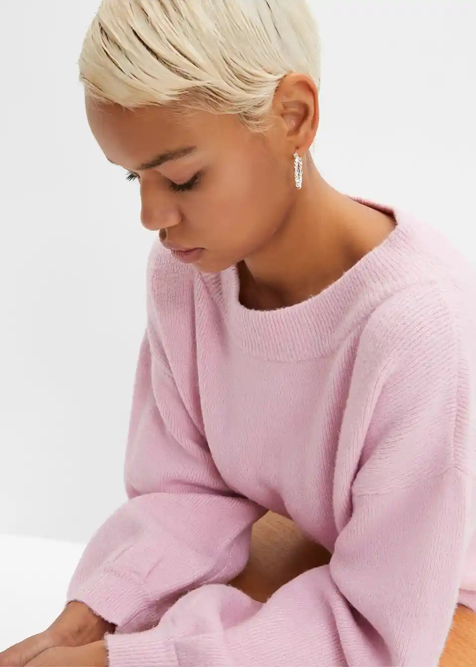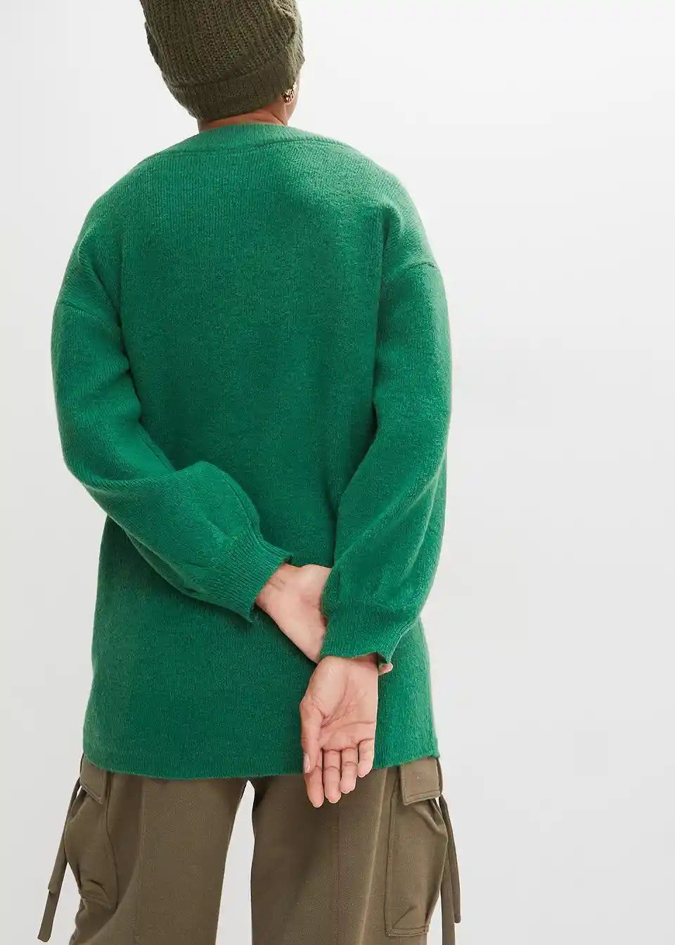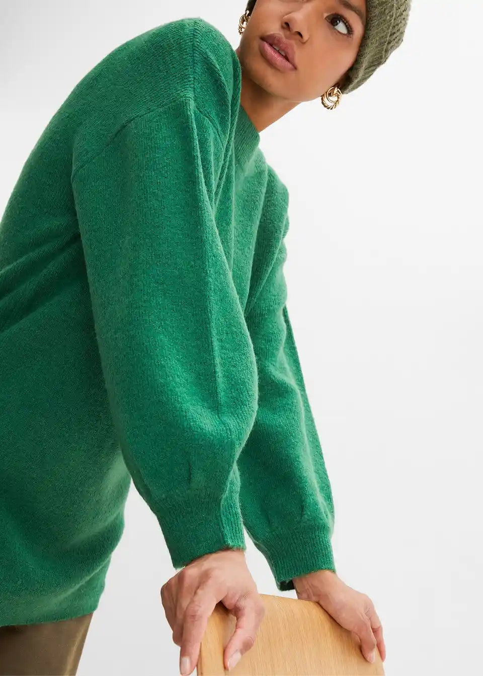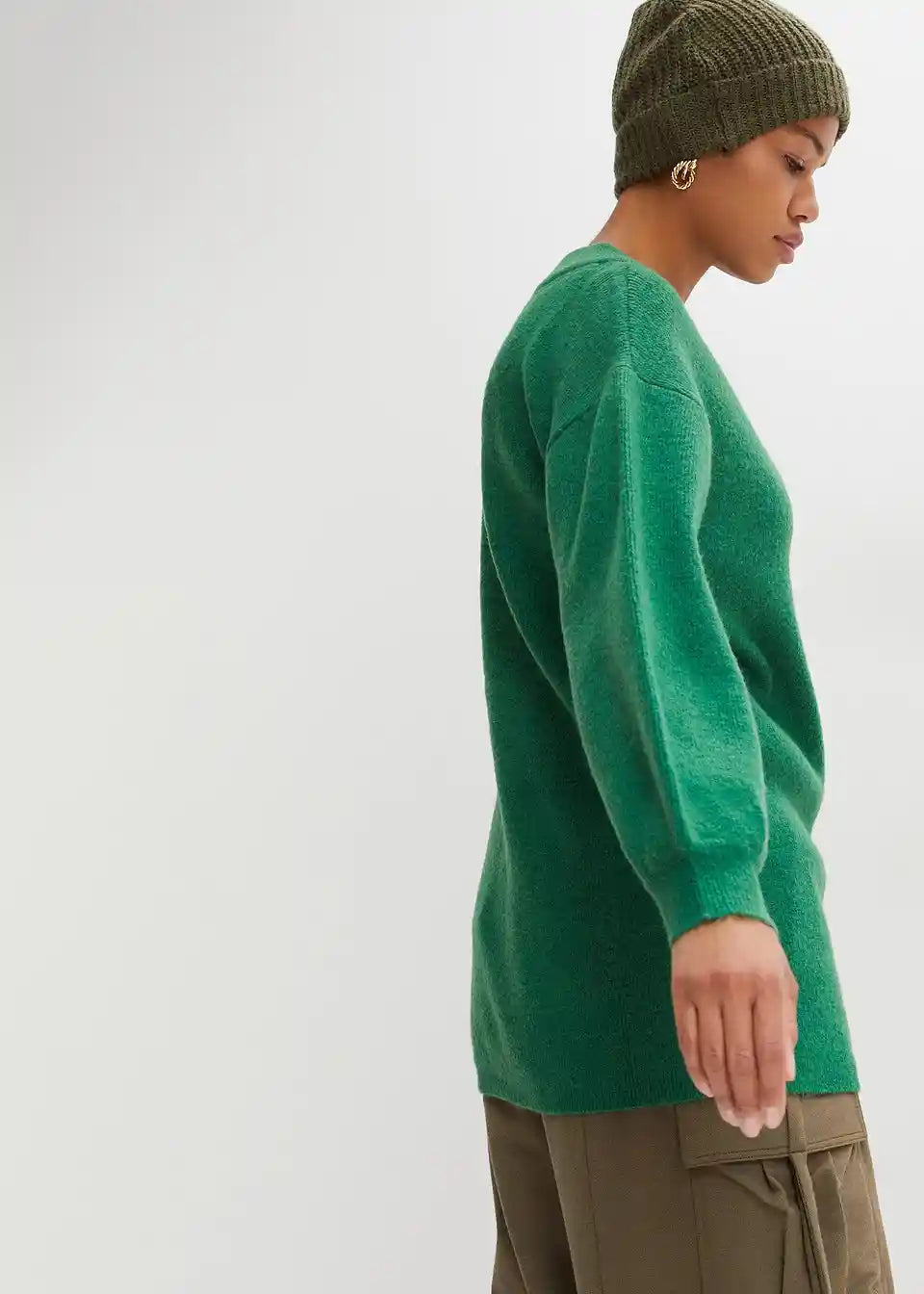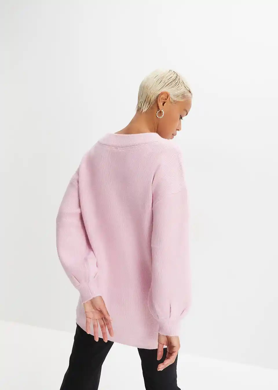Hüftbedeckender Strickpullover mit trendigen Ballonärmeln