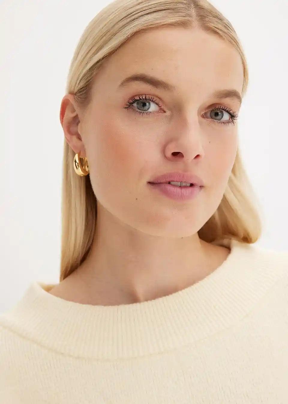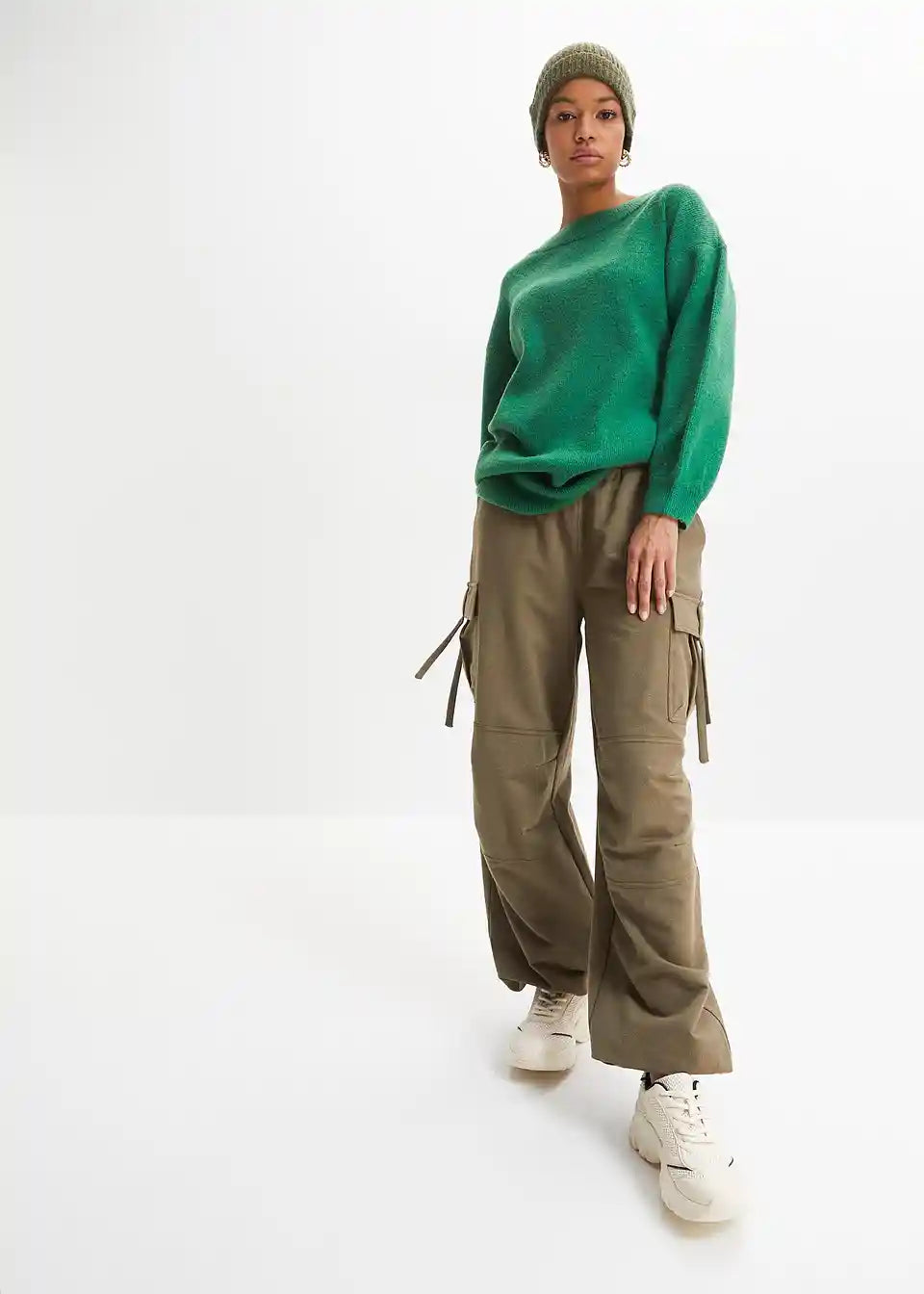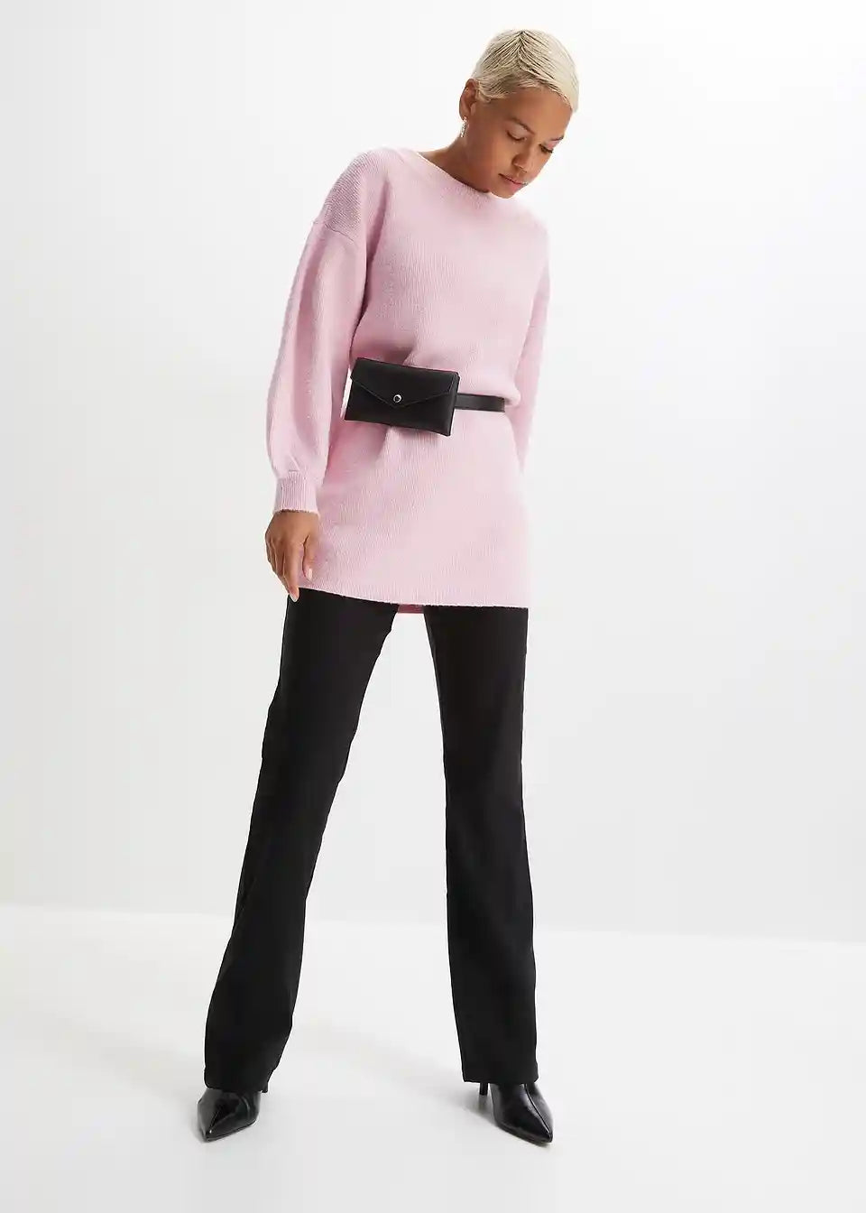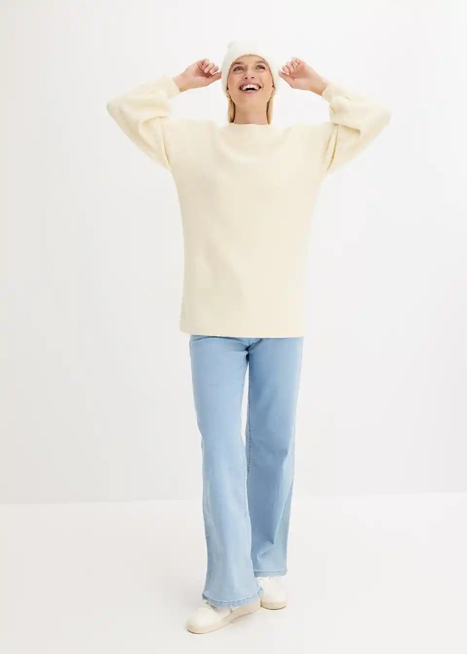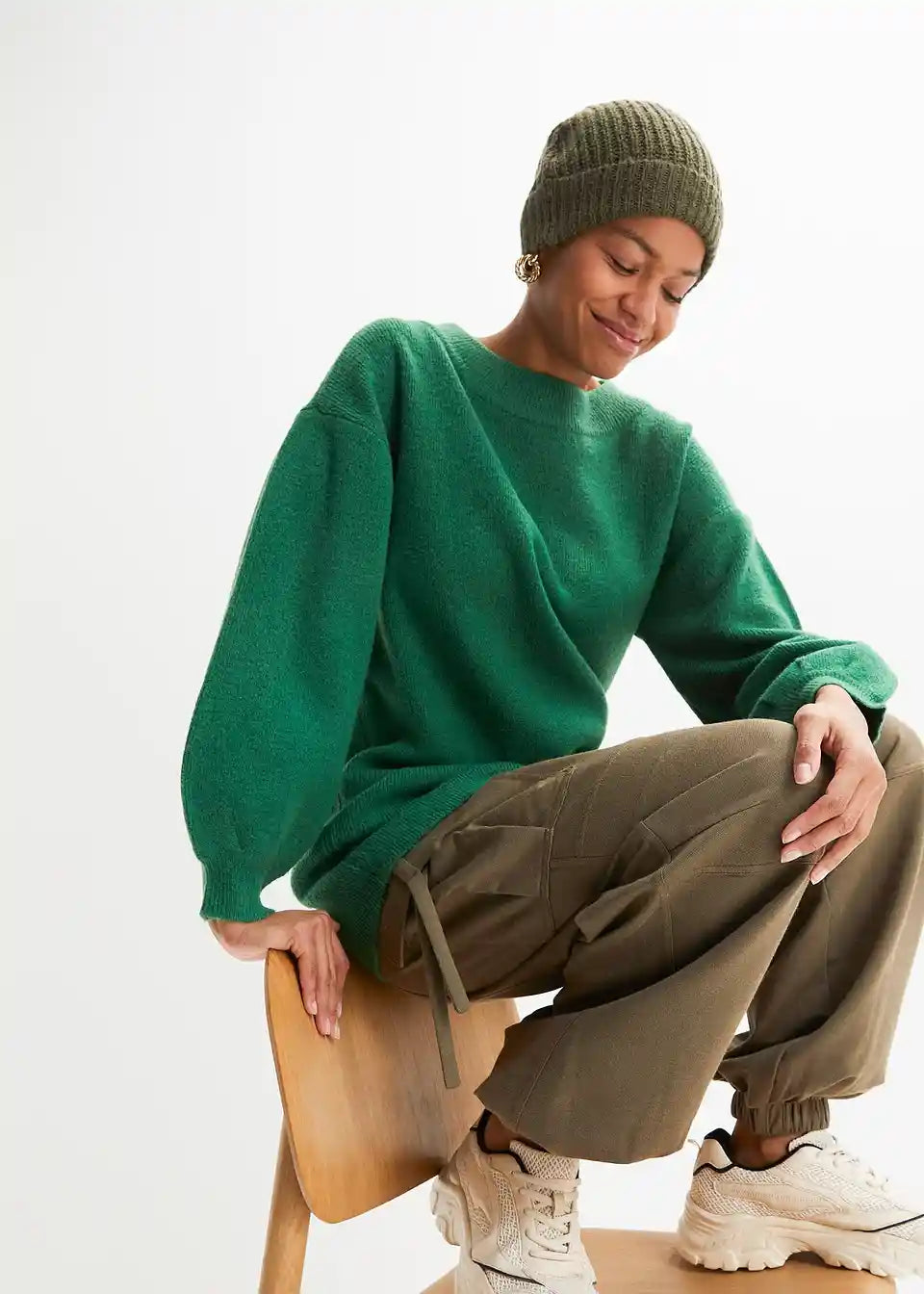 Hüftbedeckender Strickpullover mit trendigen Ballonärmeln