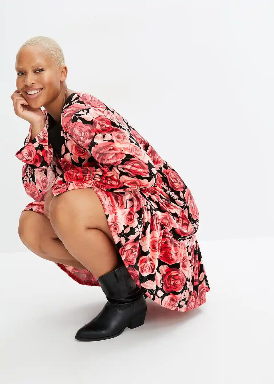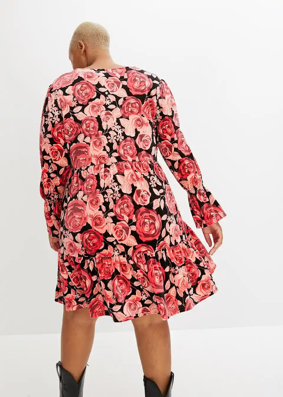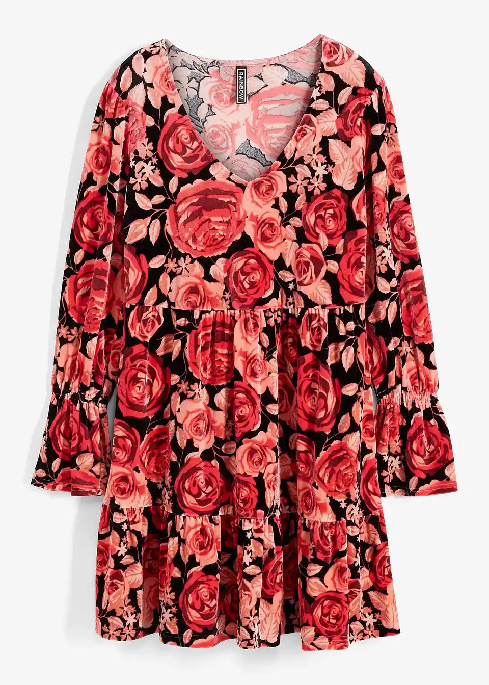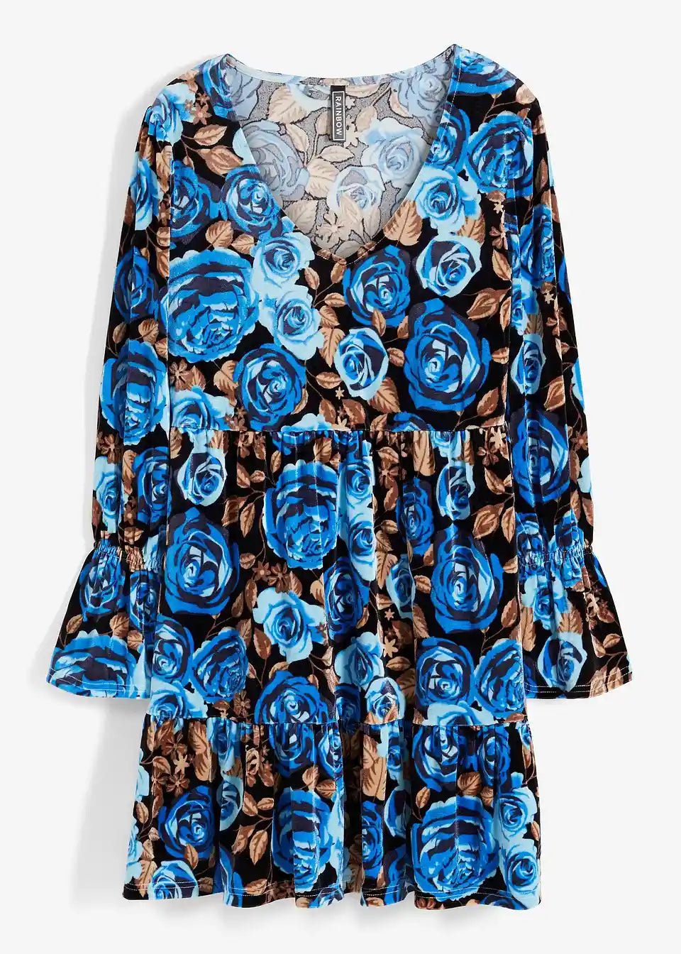 Samtkleid mit Blumen Print und langärmelig