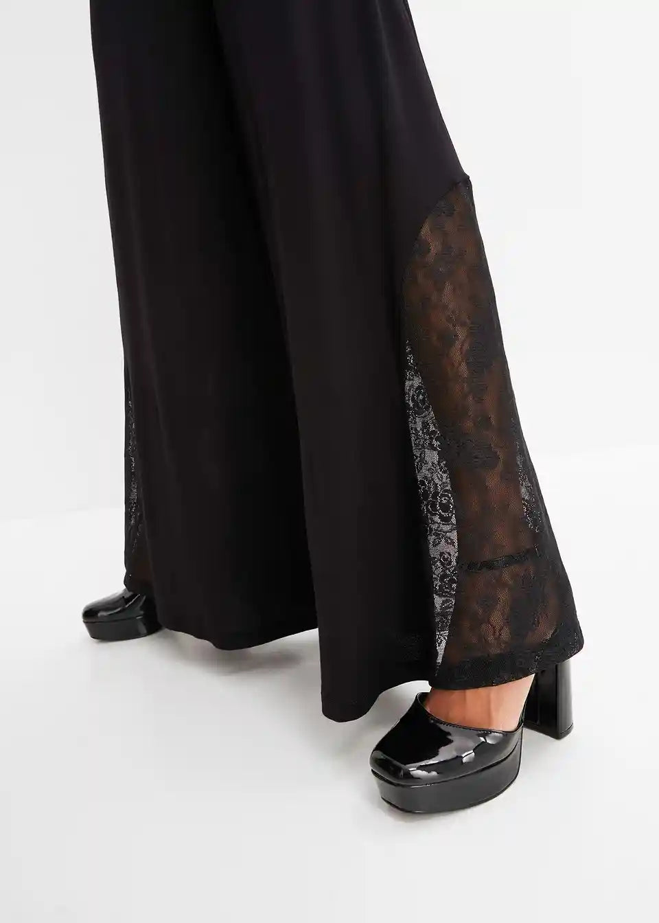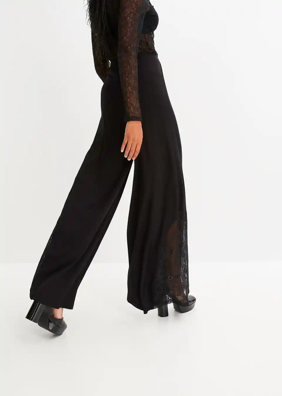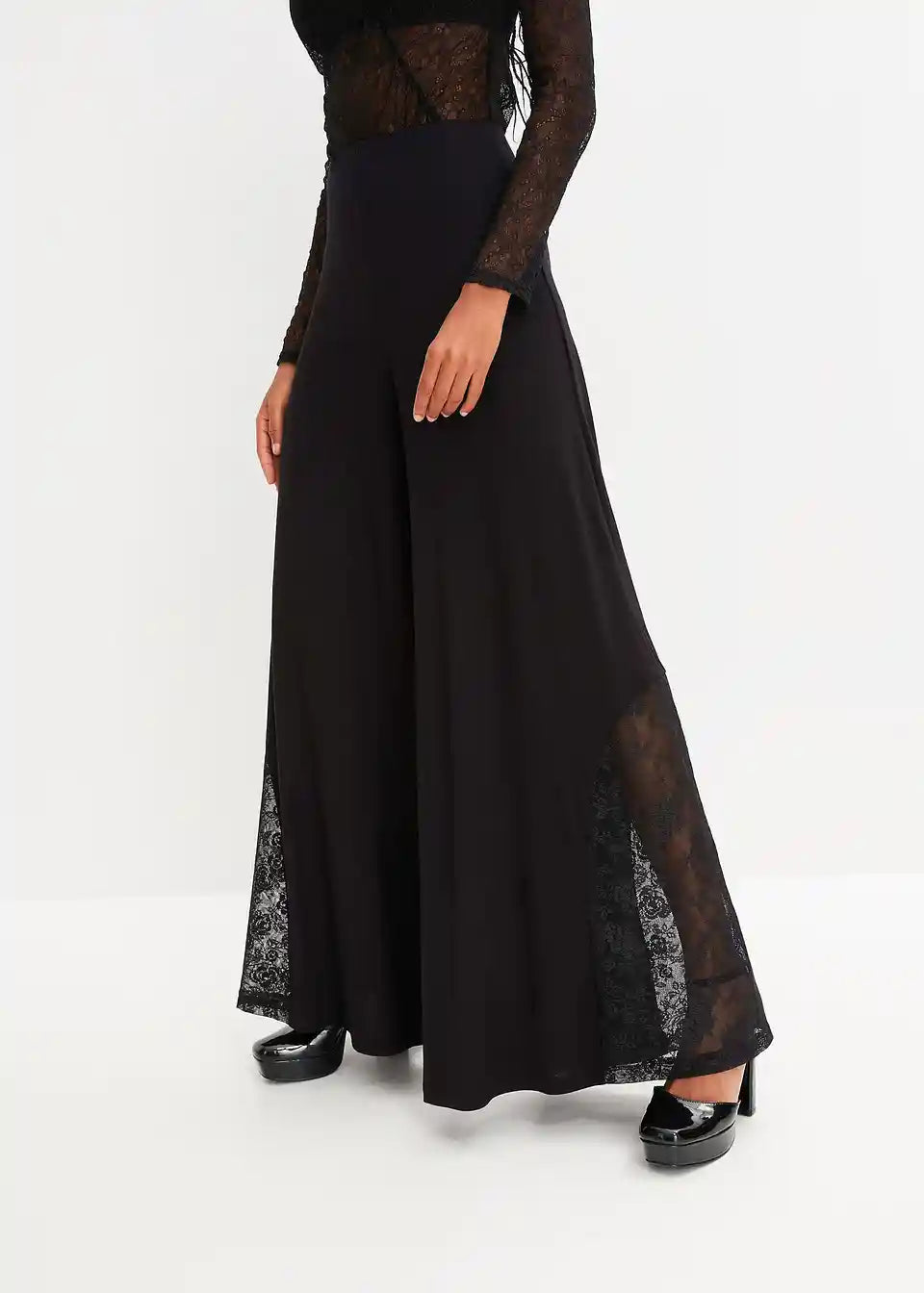 Modische Jersey-Wide-Leg Hose mit Spitzeneinsatz
